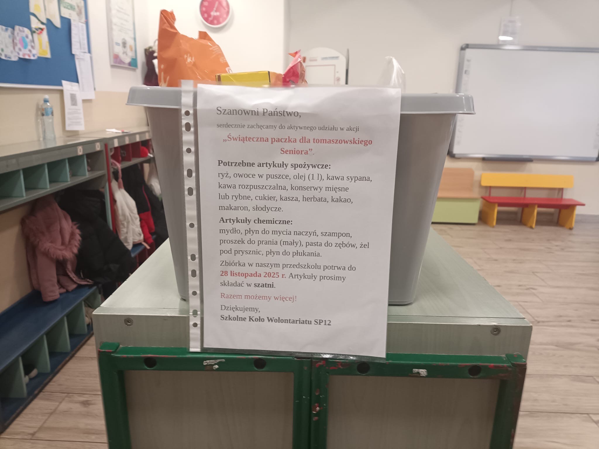 Serdecznie dziękujemy za udział w zbiórce zorganizowanej przez Samorząd Uczniowski Szkoły Podstawowej nr 12. W imieniu seniorów składamy głębokie wyrazy wdzięczności za wszystkie przekazane podarunki. Państwa życzliwość, otwarte serca i gotowość do niesienia pomocy sprawiły, że paczki dla seniorów stały się nie tylko materialnym wsparciem, ale także pięknym