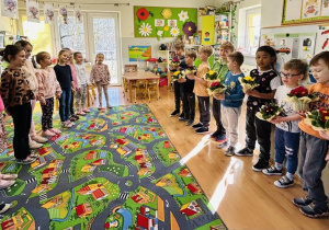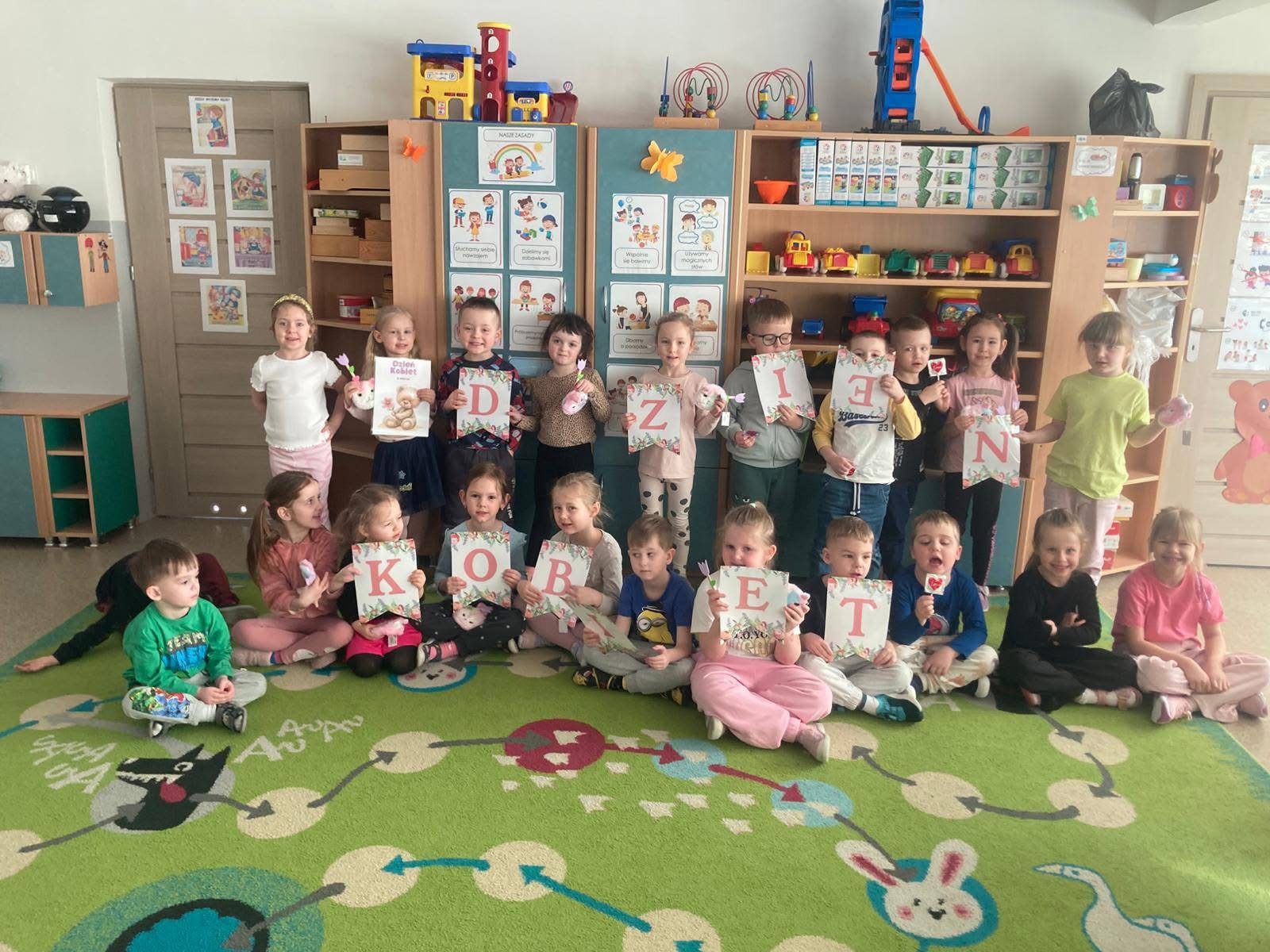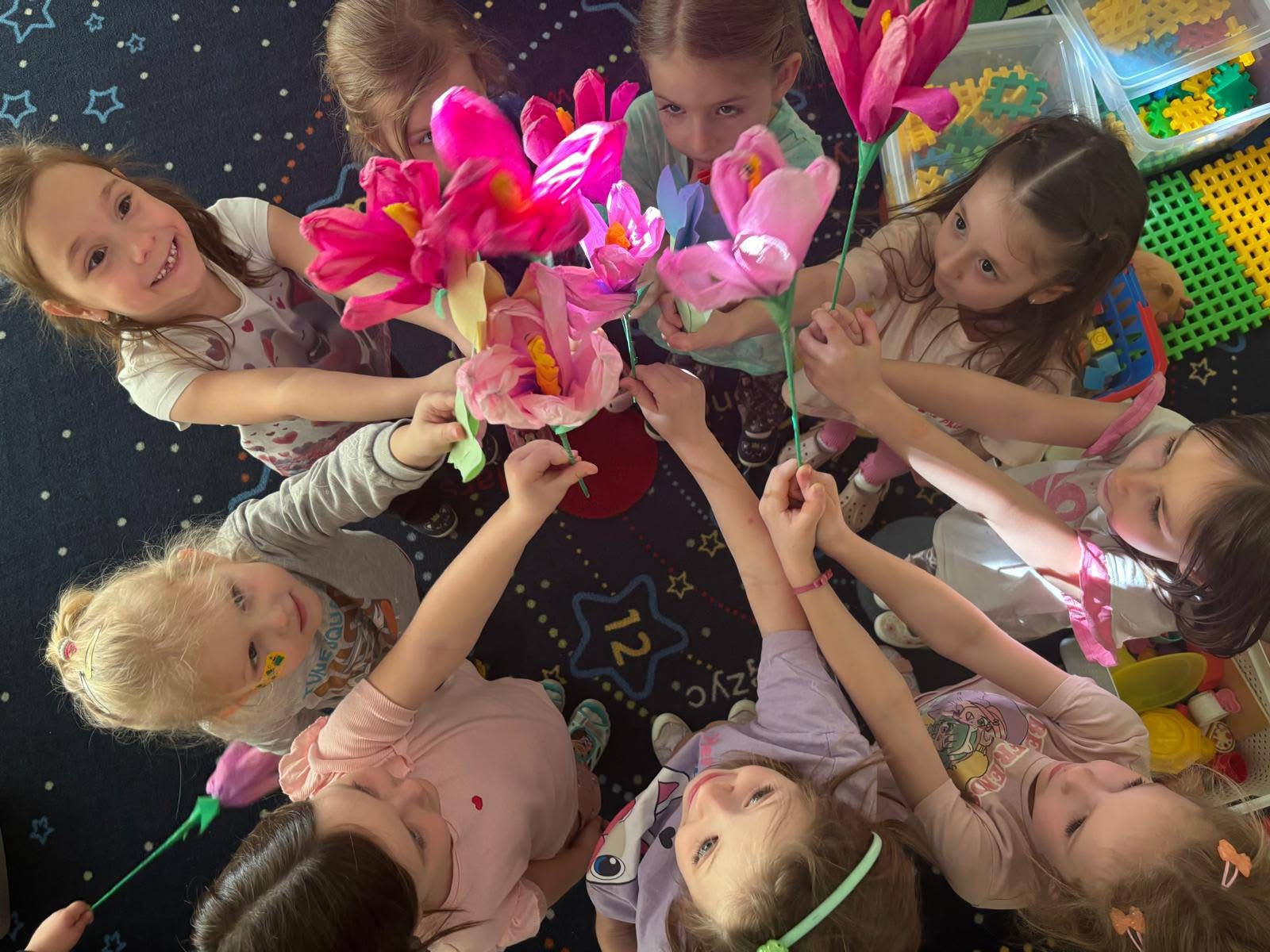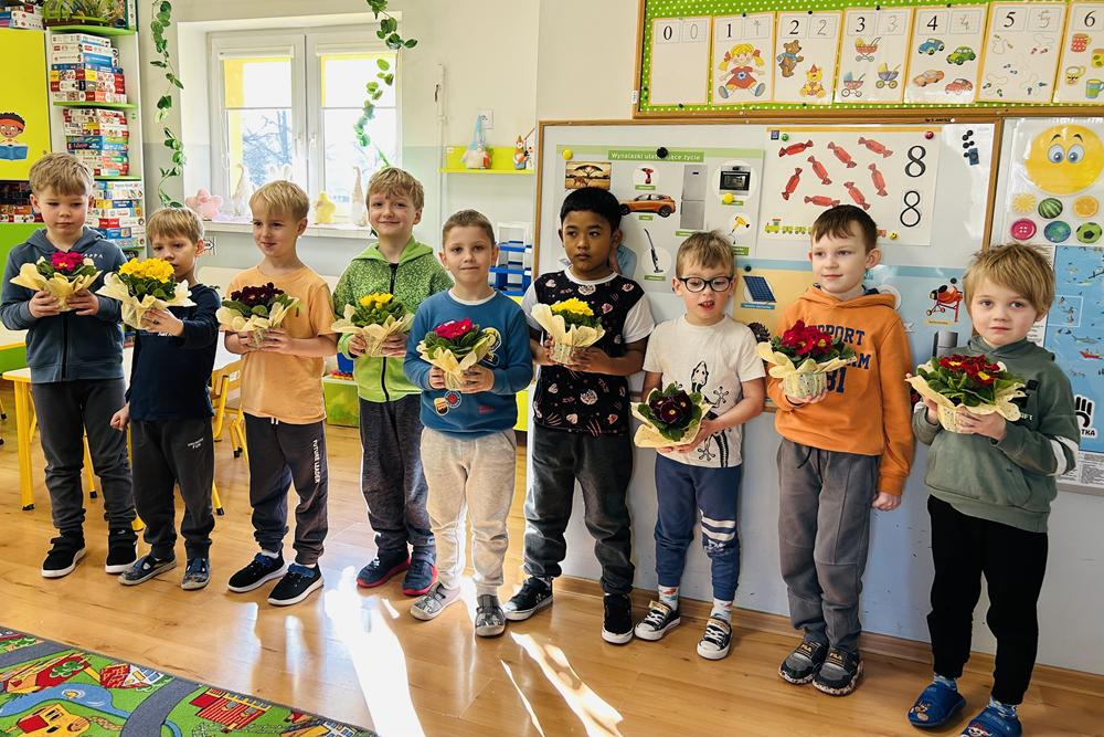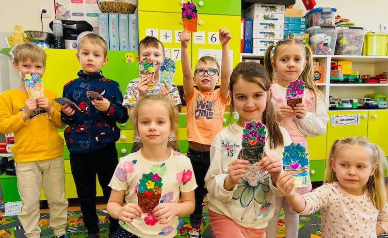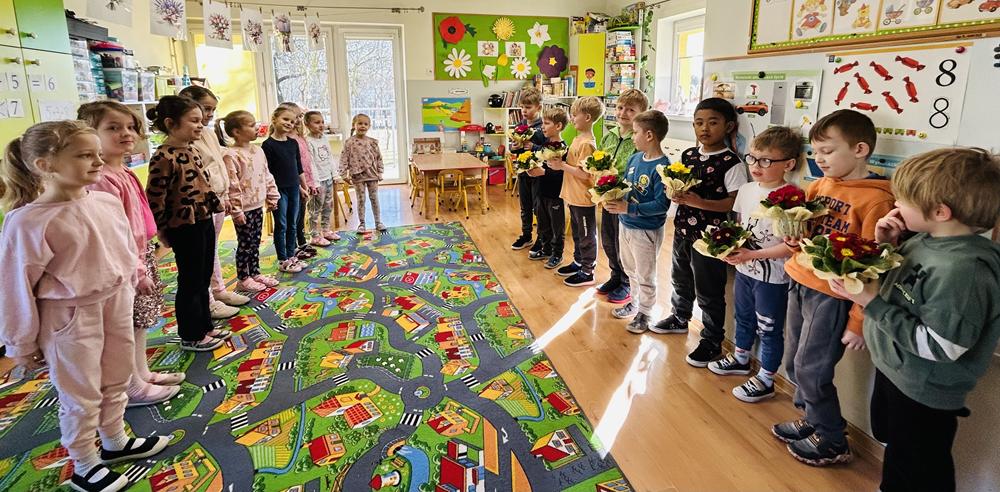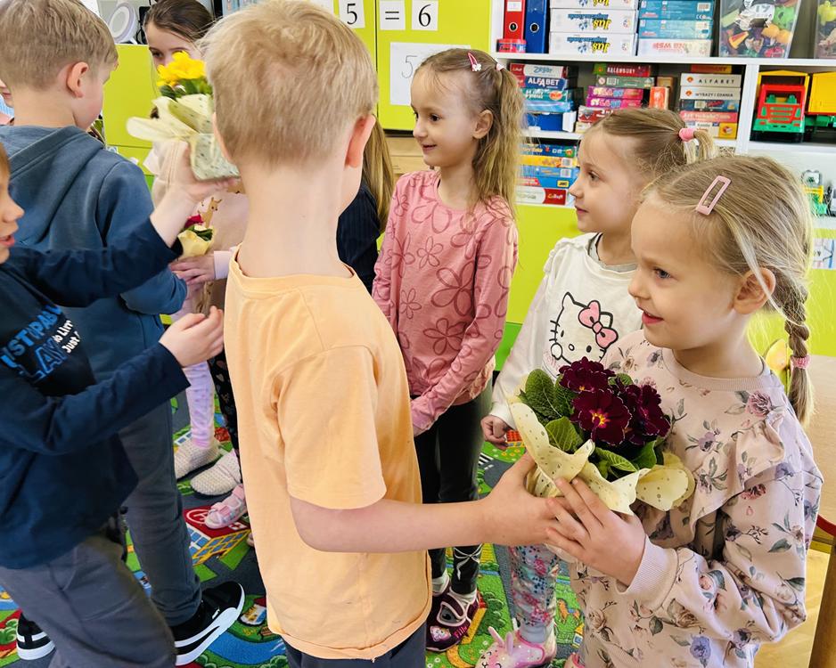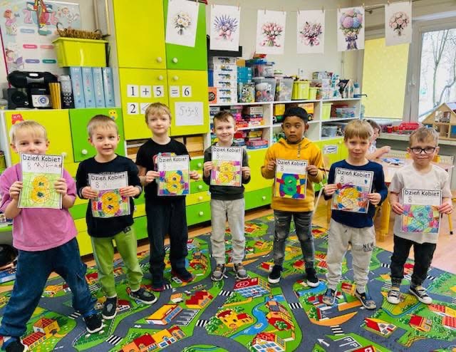 Dziś w przedszkolu nr 7 obchodziliśmy Dzień Kobiet. To radosne święto celebrowaliśmy poprzez składanie życzeń, wręczanie drobnych upominków przez chłopców, wspólne zabawy taneczne oraz kreatywne zajęcia plastyczne.
