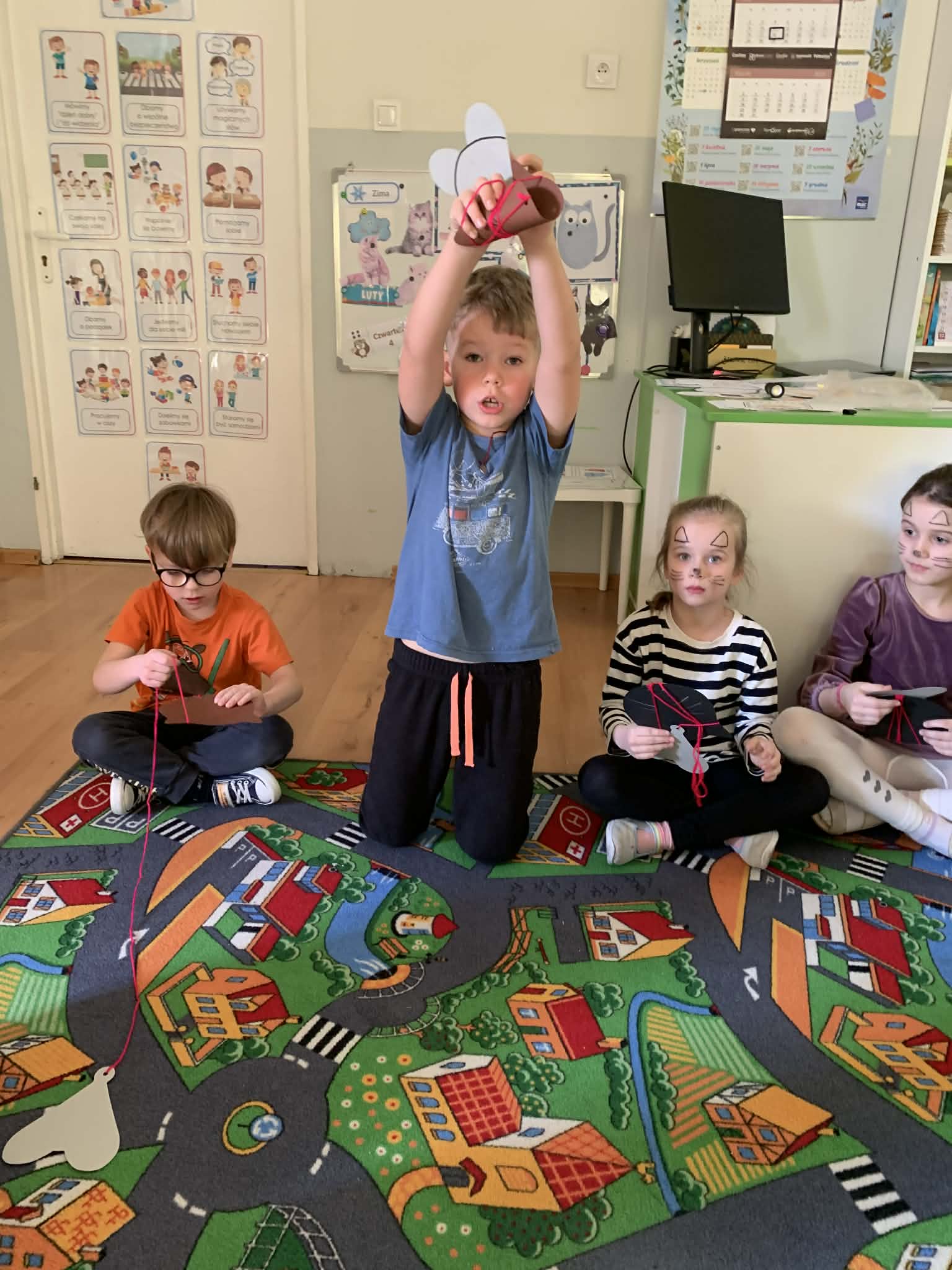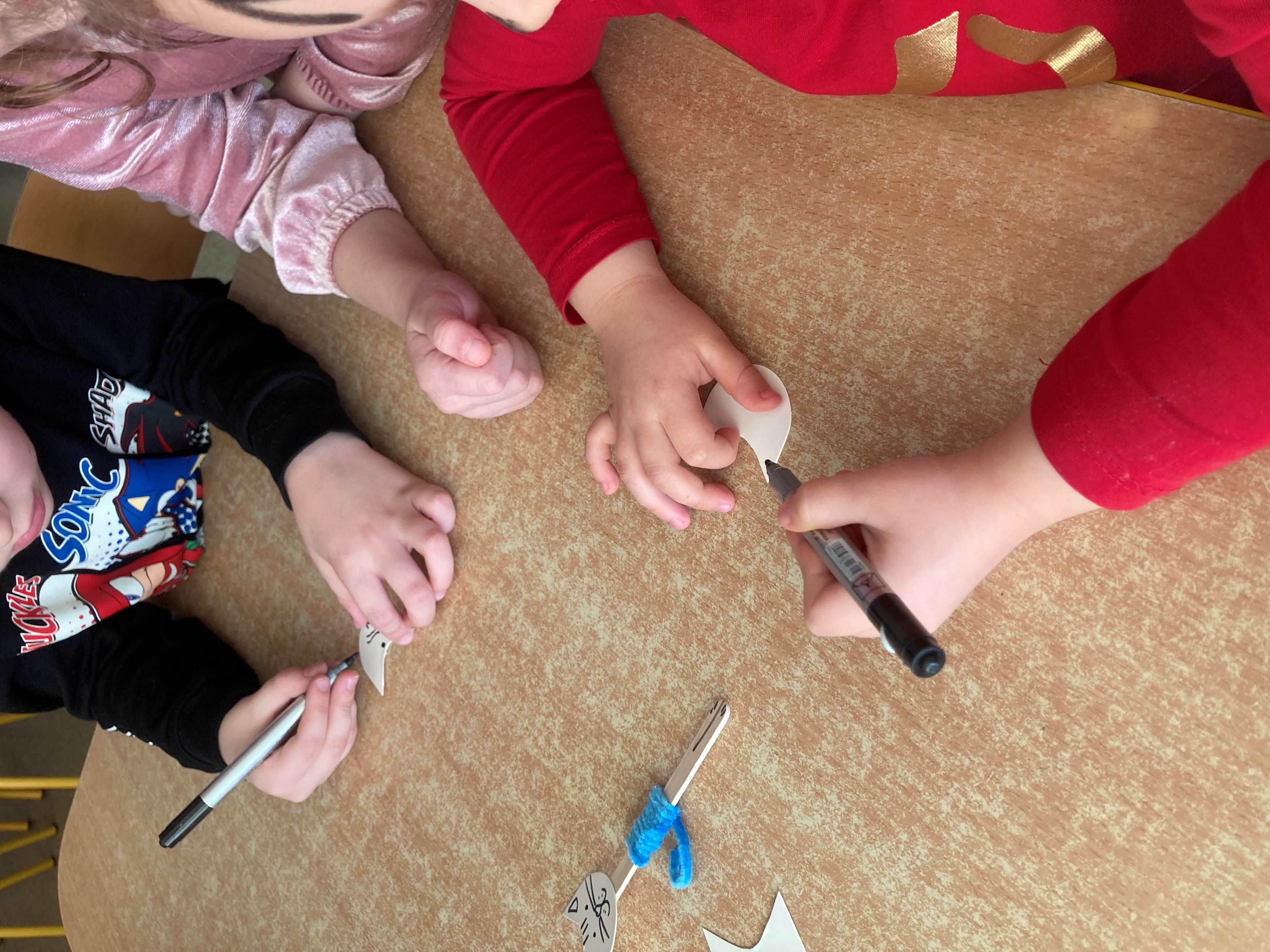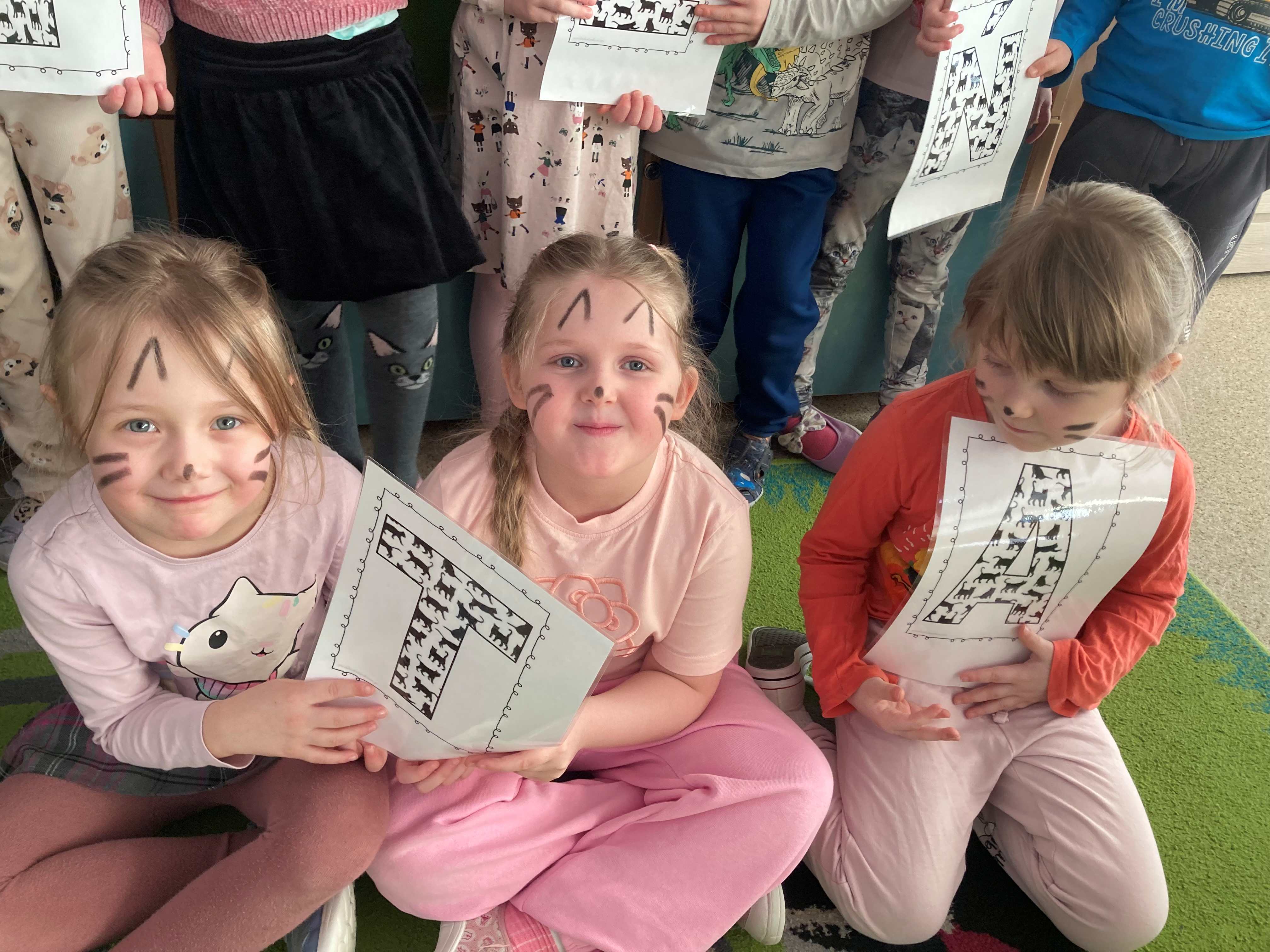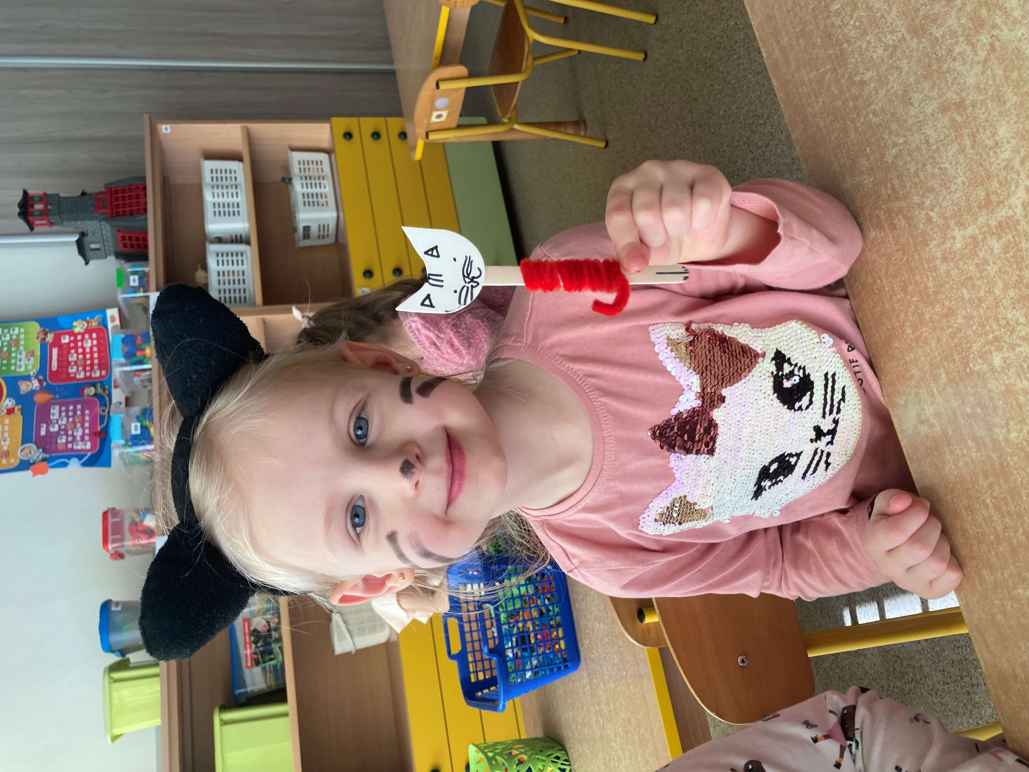 Nie zabrakło również prac plastycznych, zabaw ruchowych oraz wspólnego czytania bajek o kotkach. Dzieci z radością naśladowały kocie ruchy i wcielały się w role małych mruczków.