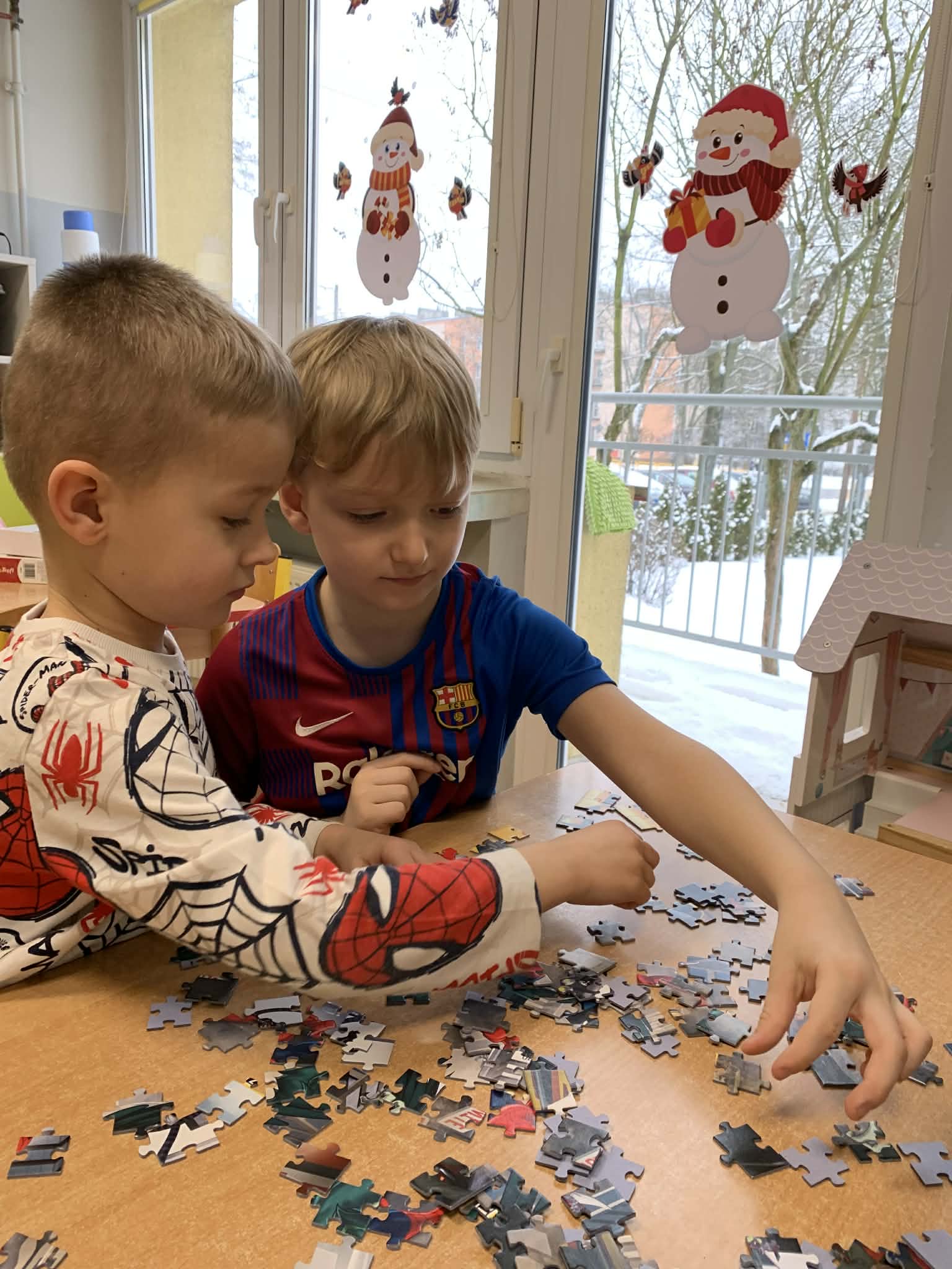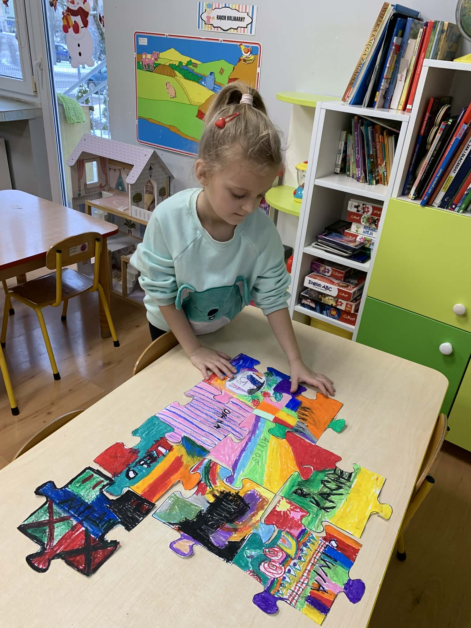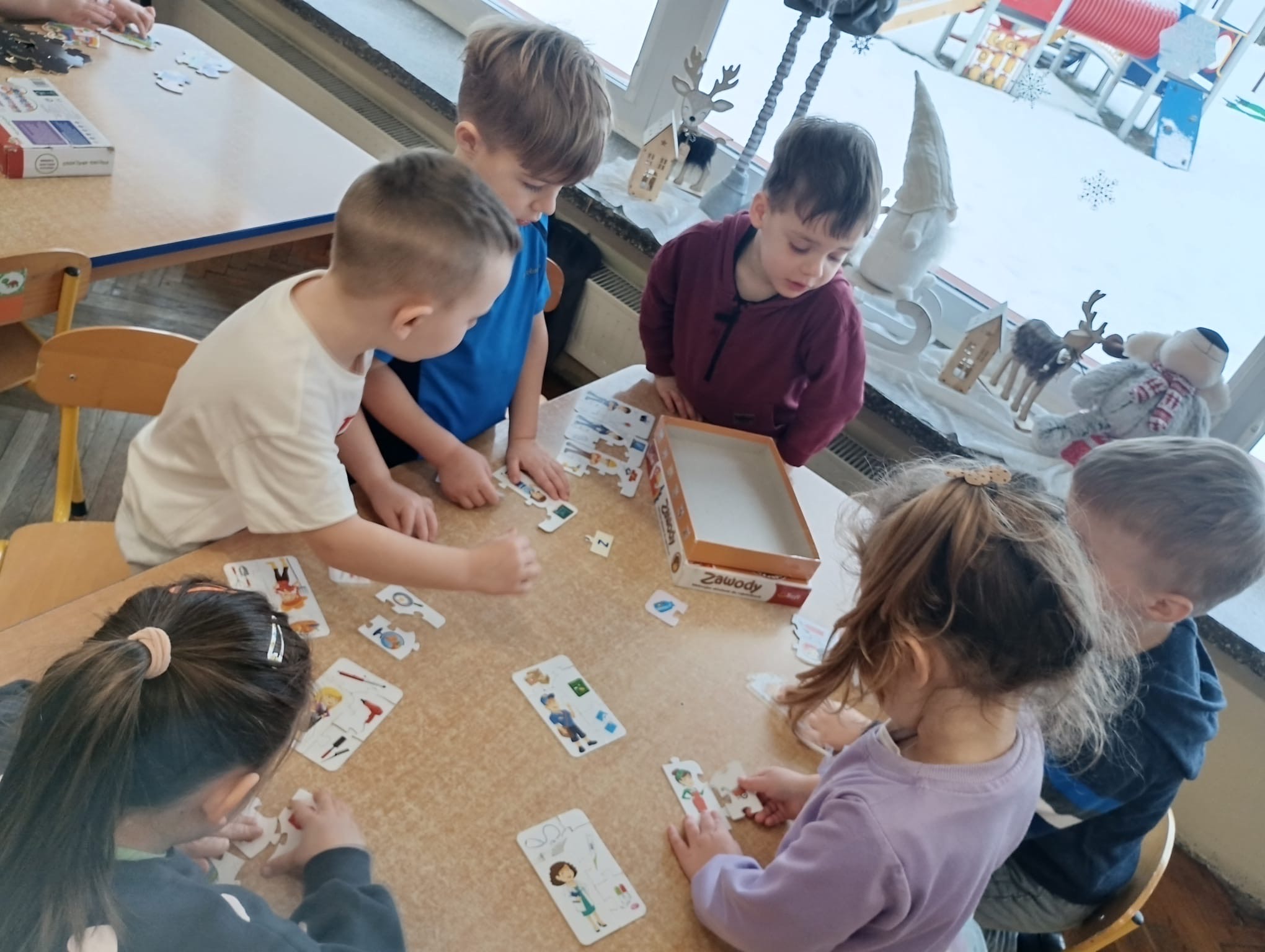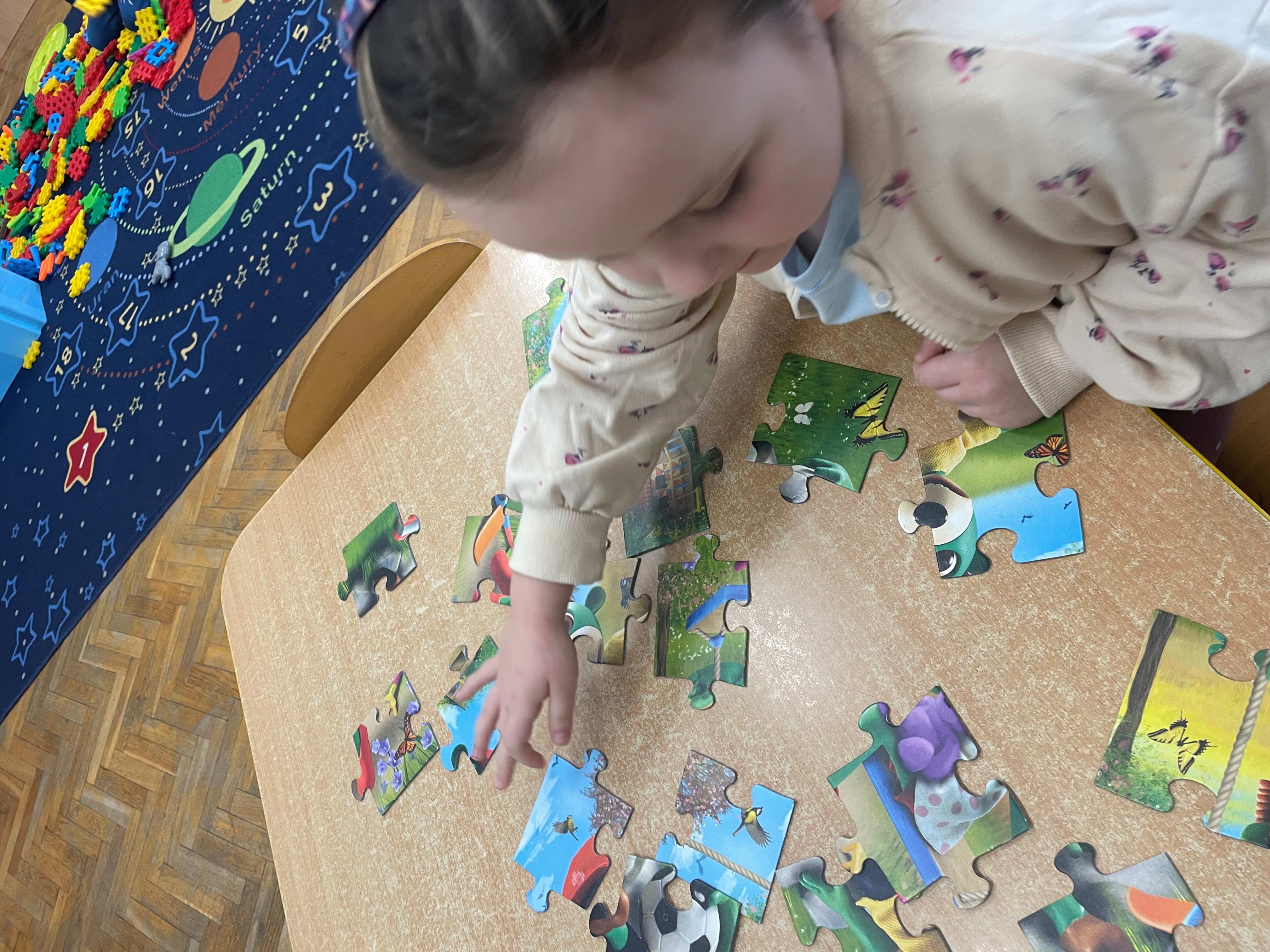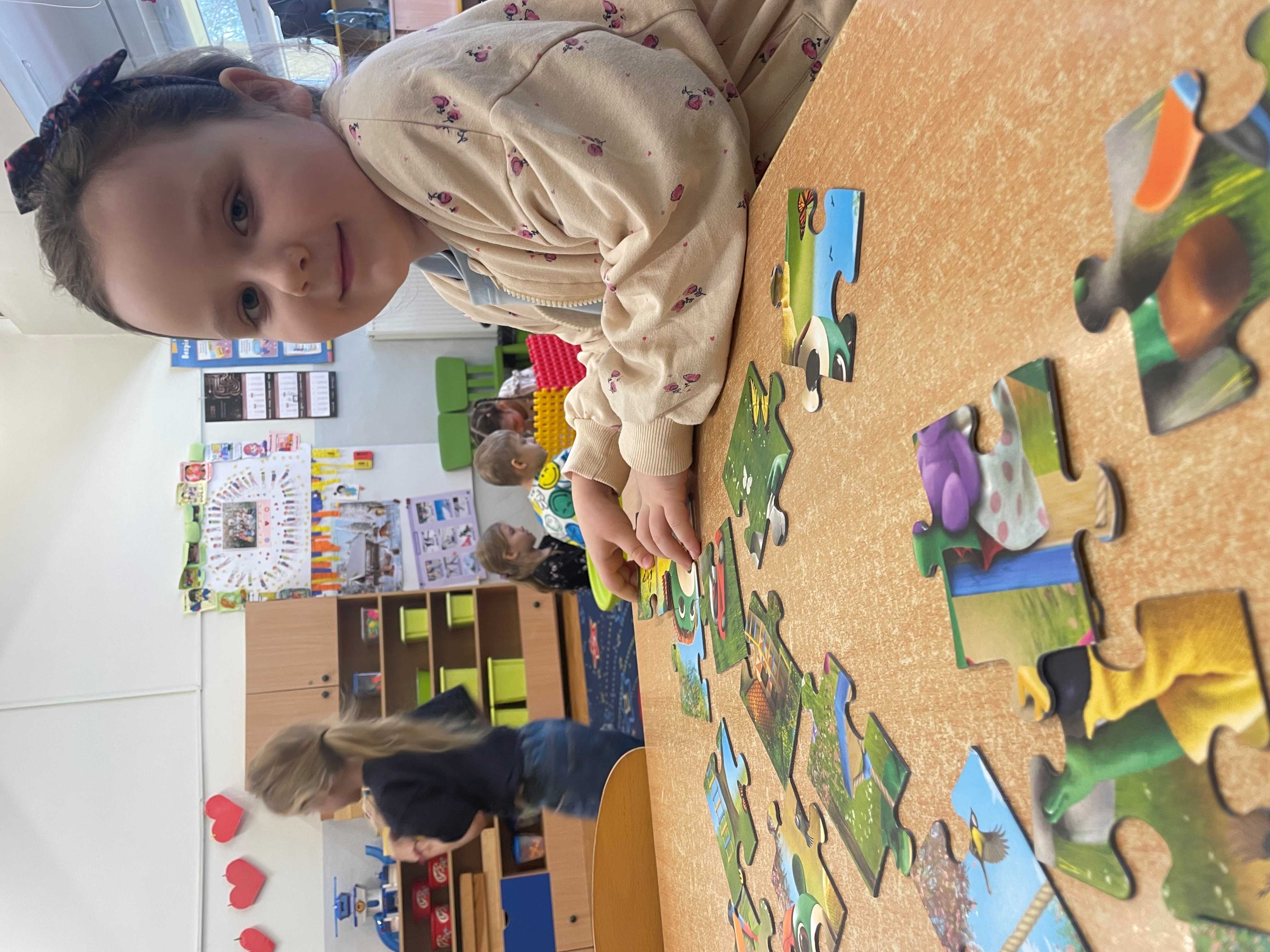Dziś w przedszkolu królowały puzzle i łamigłówki! Dzieci z ogromnym zaangażowaniem układały kolorowe obrazki, rozwiązywały zagadki i mierzyły się z różnorodnymi wyzwaniami logicznymi. Takie zabawy nie tylko sprawiają radość, ale również rozwijają koncentrację, spostrzegawczość oraz umiejętność logicznego myślenia.