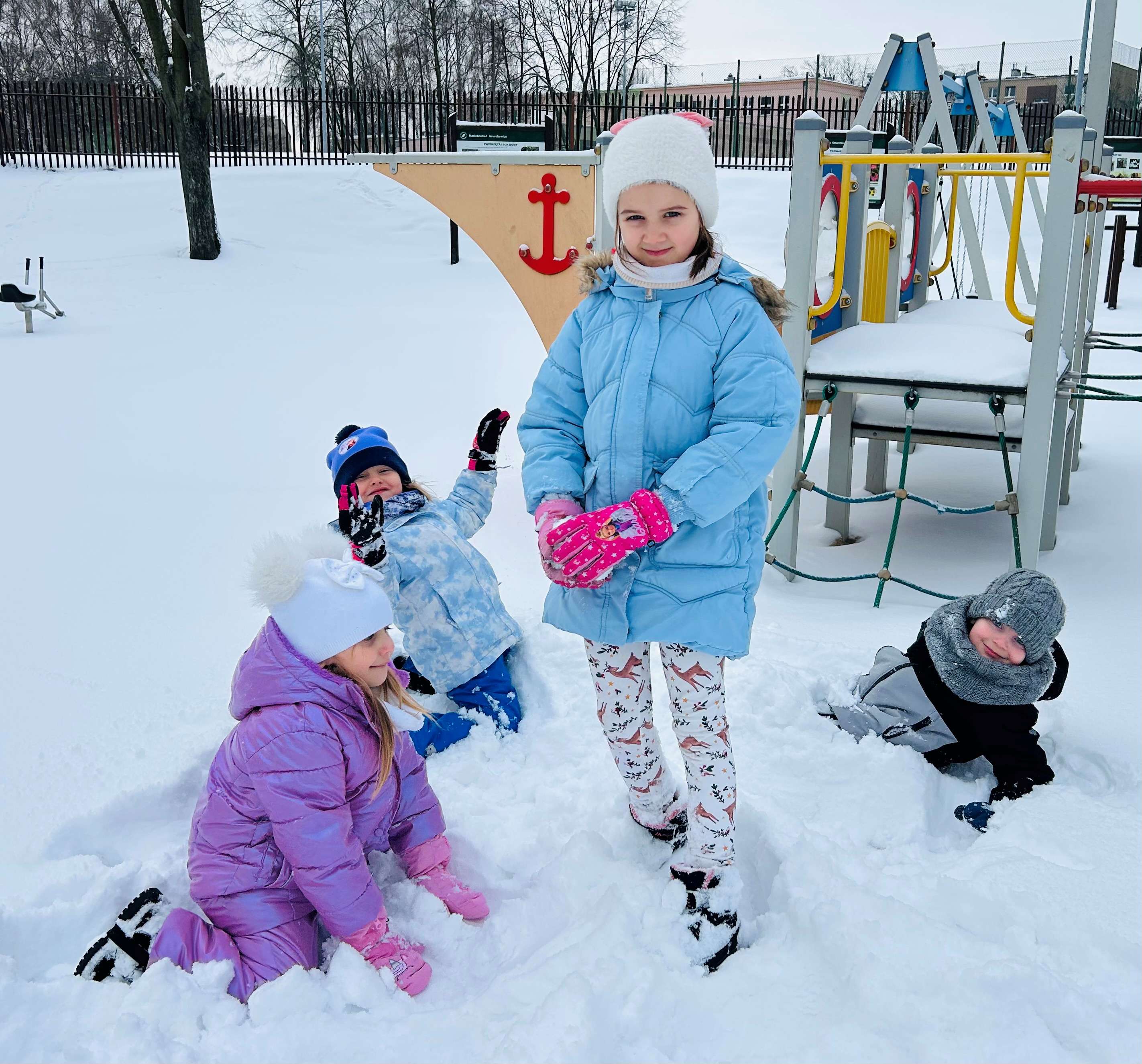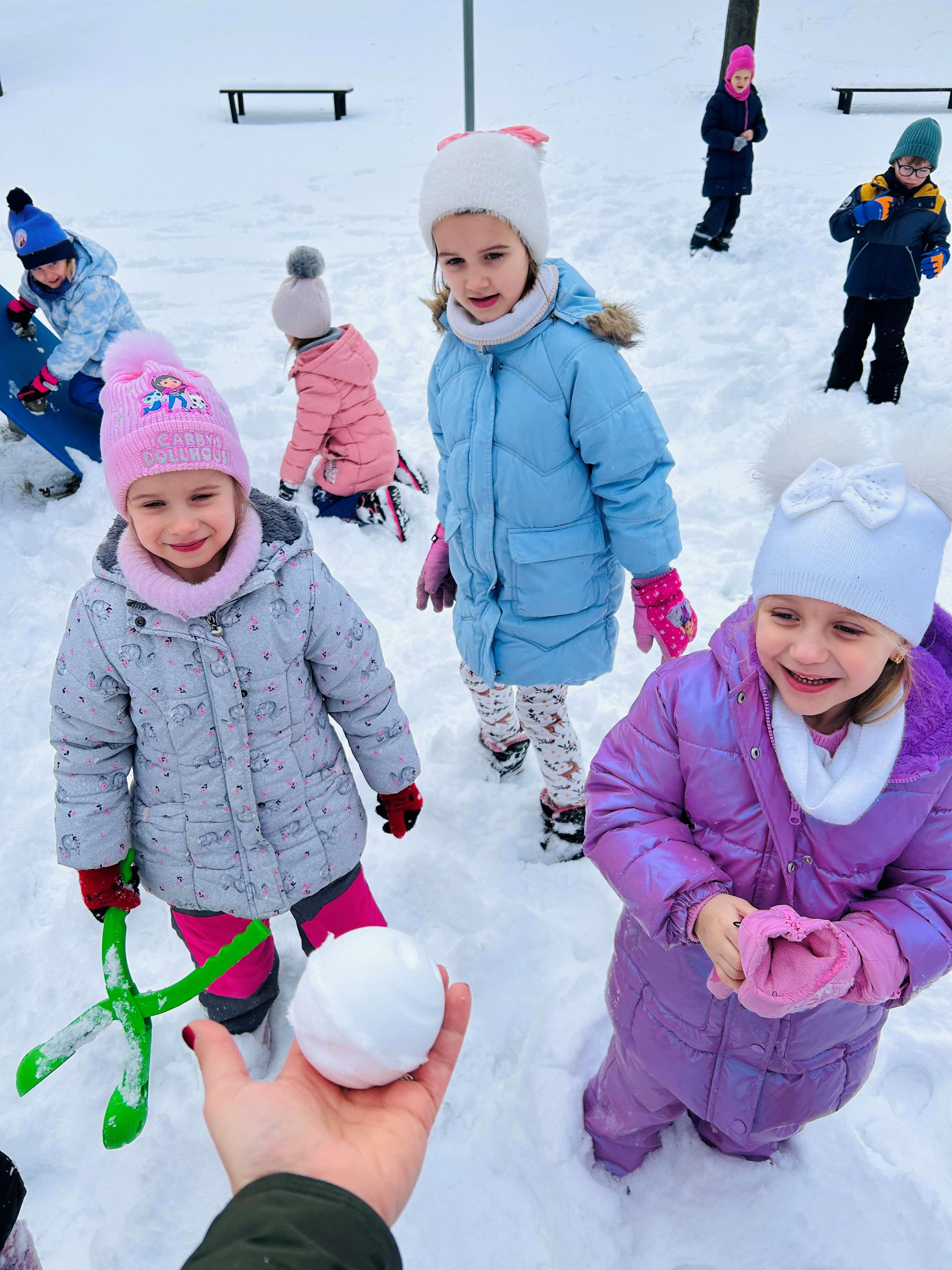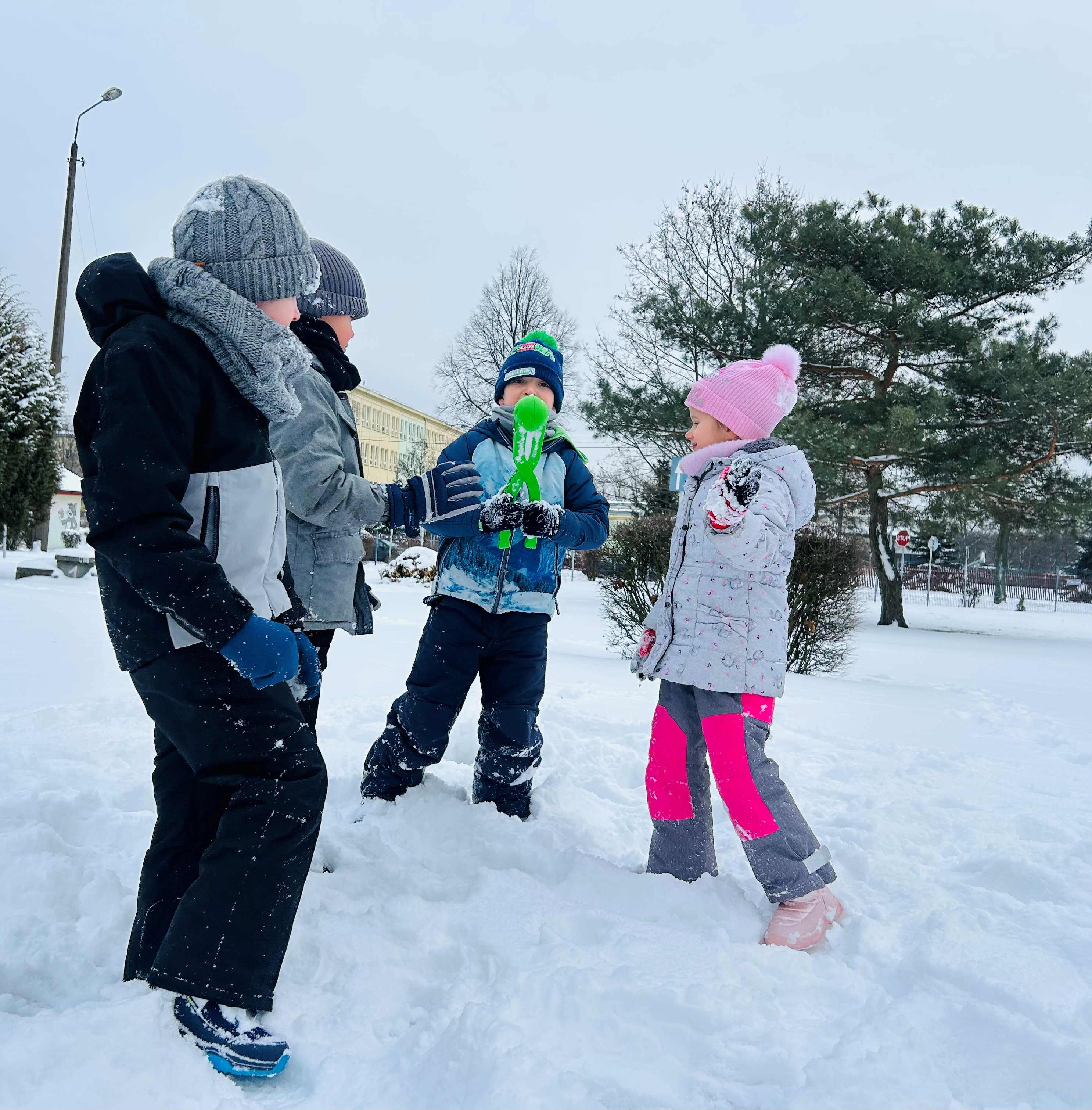 Z okazji Dnia Śniegu Wynalazcy z radością uczestniczyły w zimowych zabawach w ogrodzie przedszkolnym. Korzystając z pięknej, zimowej pogody, przedszkolaki lepiły bałwana, rzucały śnieżkami do celu oraz brały udział w wesołych zabawach ruchowych. Wspólna aktywność na świeżym powietrzu dostarczyła dzieciom wielu uśmiechów, a także sprzyjała rozwijaniu sprawności fizycznej i integracji grupy.