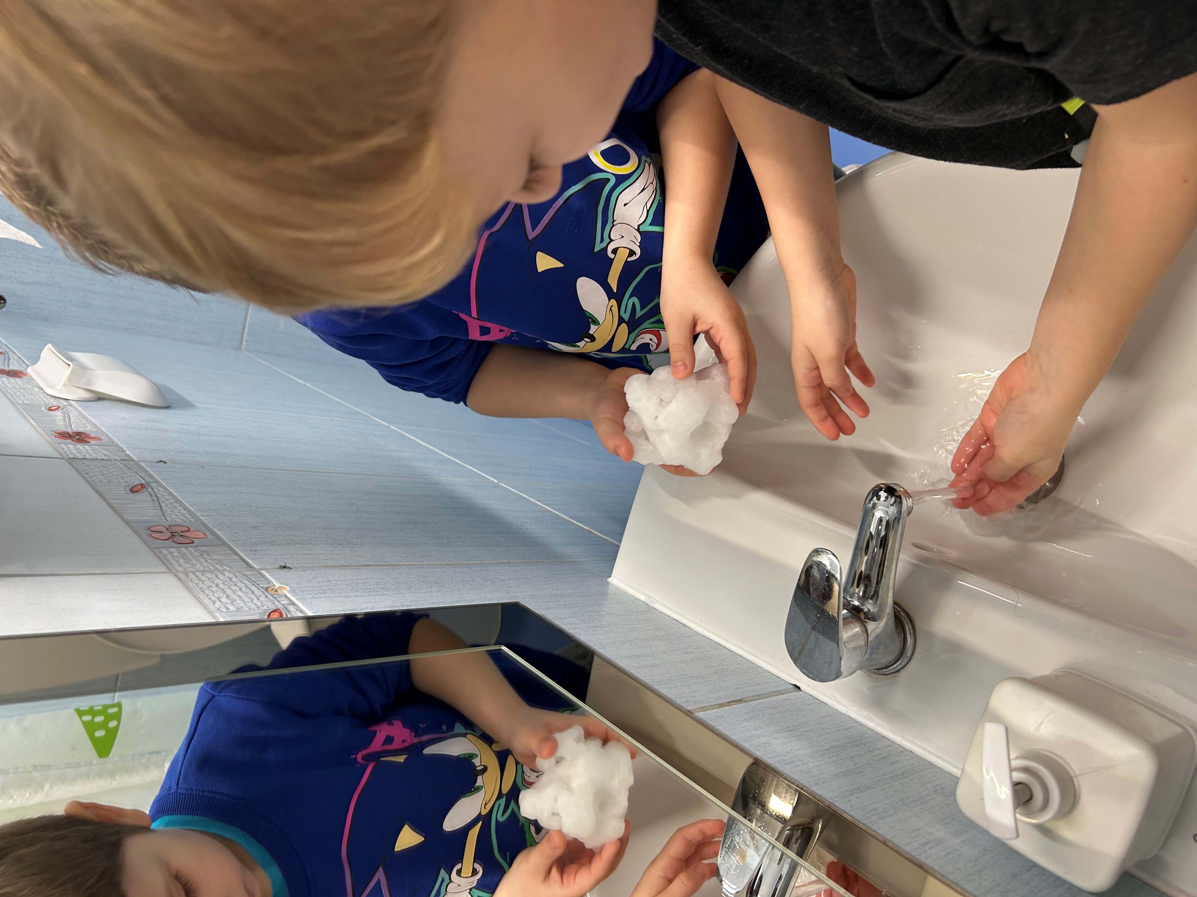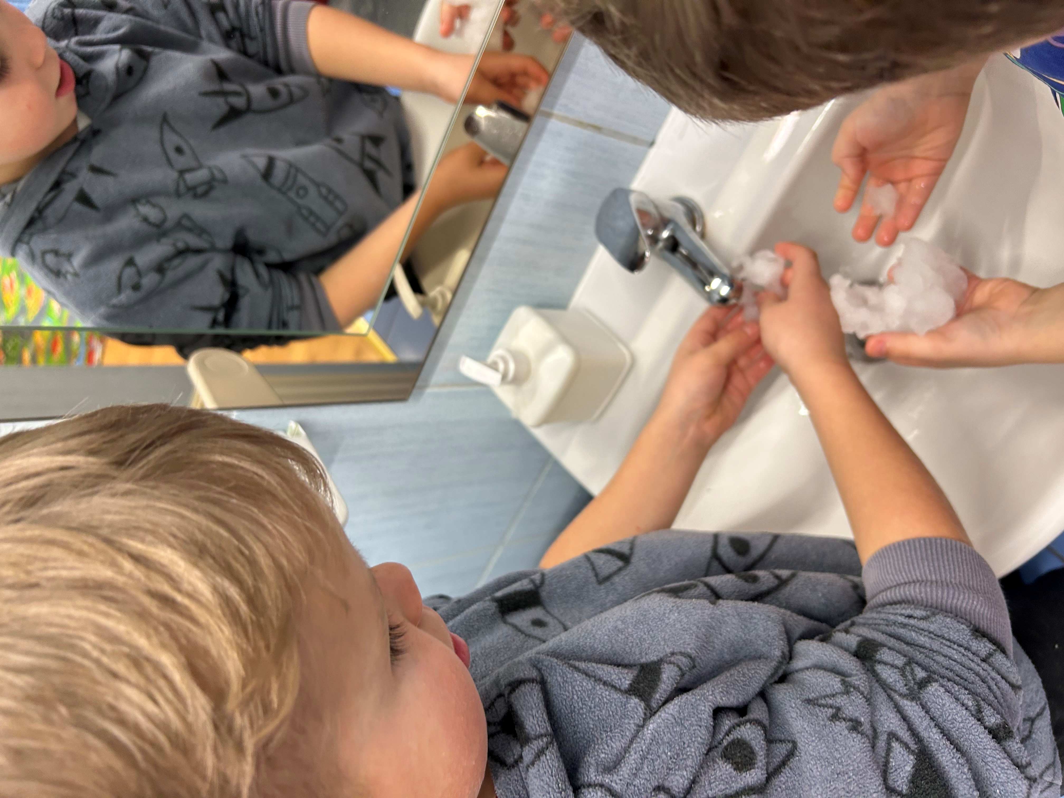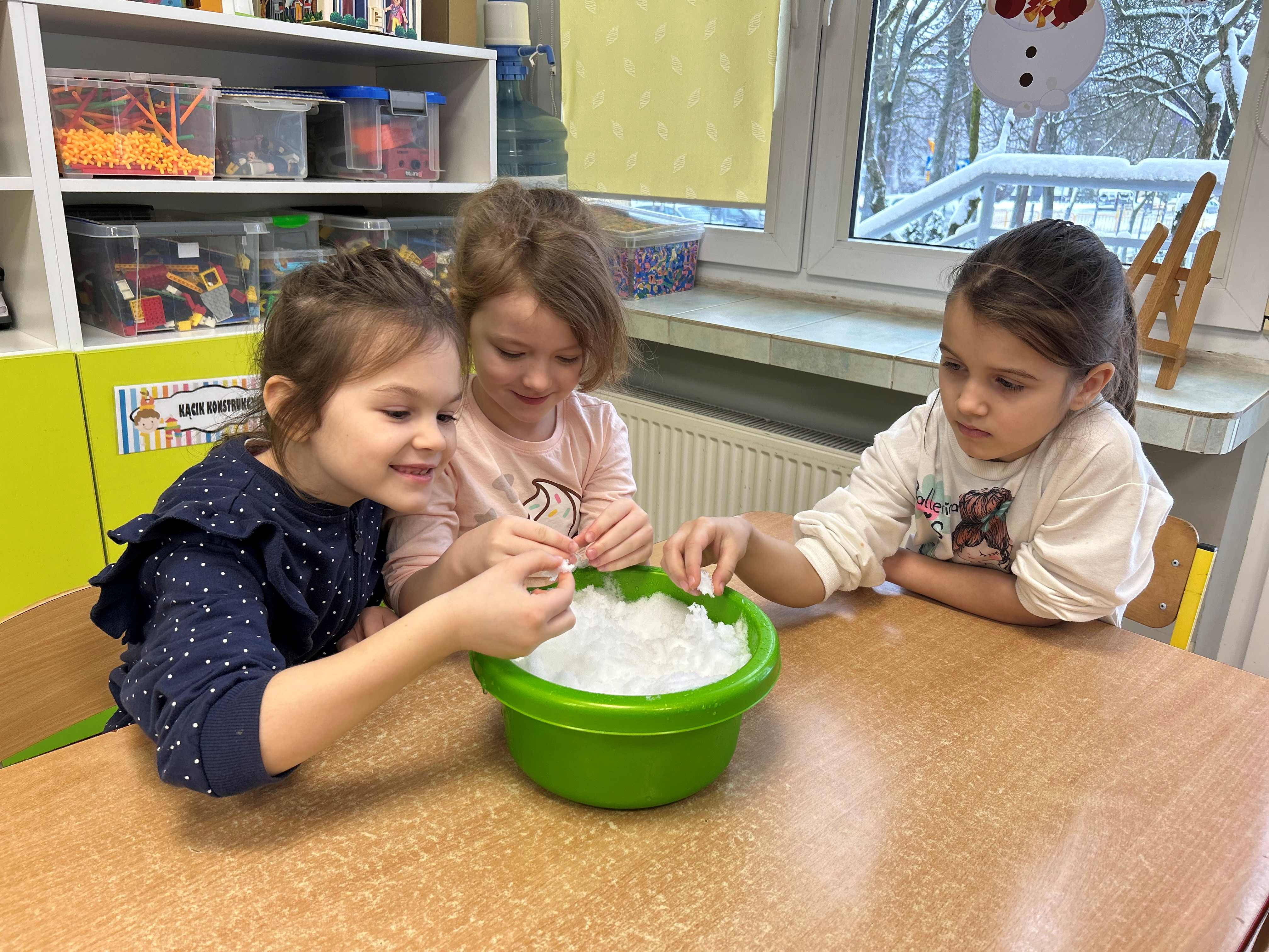 Wynalazcy miały ostatnio okazję uczestniczyć w ciekawych eksperymentach ze śniegiem. Podczas zajęć obserwowały, jak śnieg topnieje, zmienia swój stan oraz co się dzieje, gdy trafi do ciepłego pomieszczenia. Przedszkolaki badały również kolor, temperaturę i konsystencję śniegu, ucząc się poprzez zabawę i doświadczenie. Zajęcia rozwijały ciekawość świata, umiejętność obserwacji oraz zachęcały do zadawania pytań i wspólnego odkrywania zimowych tajemnic.