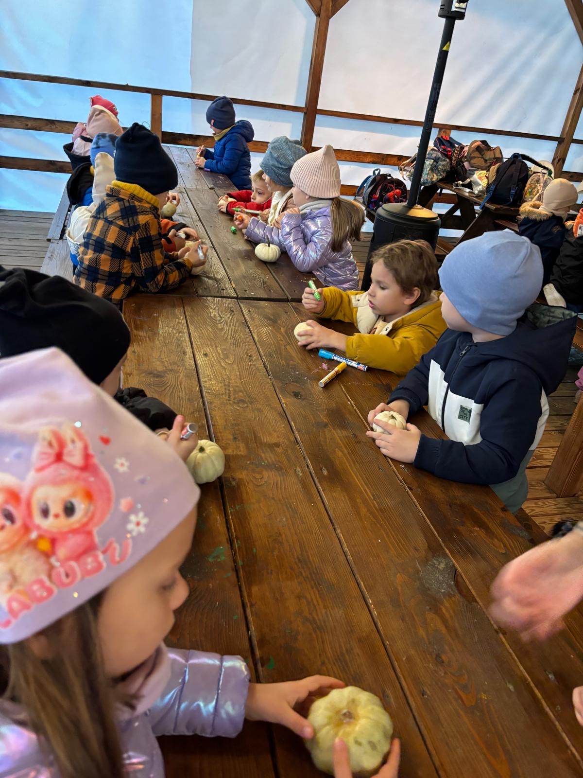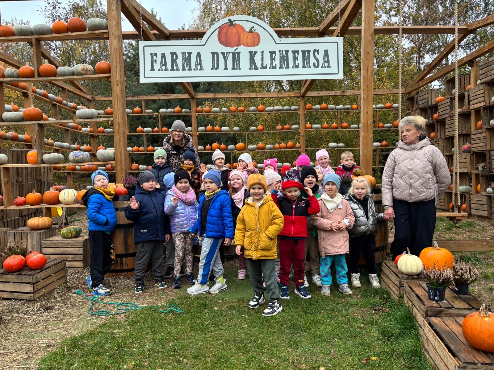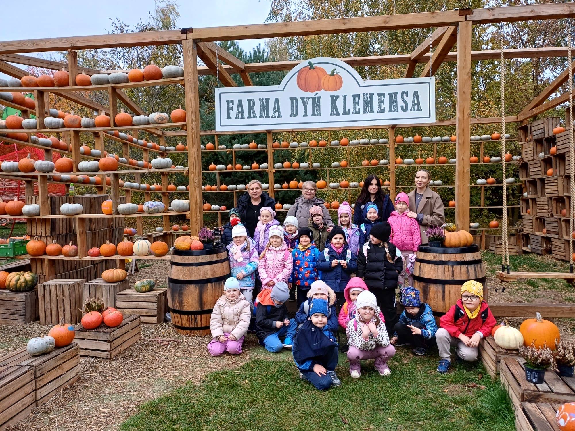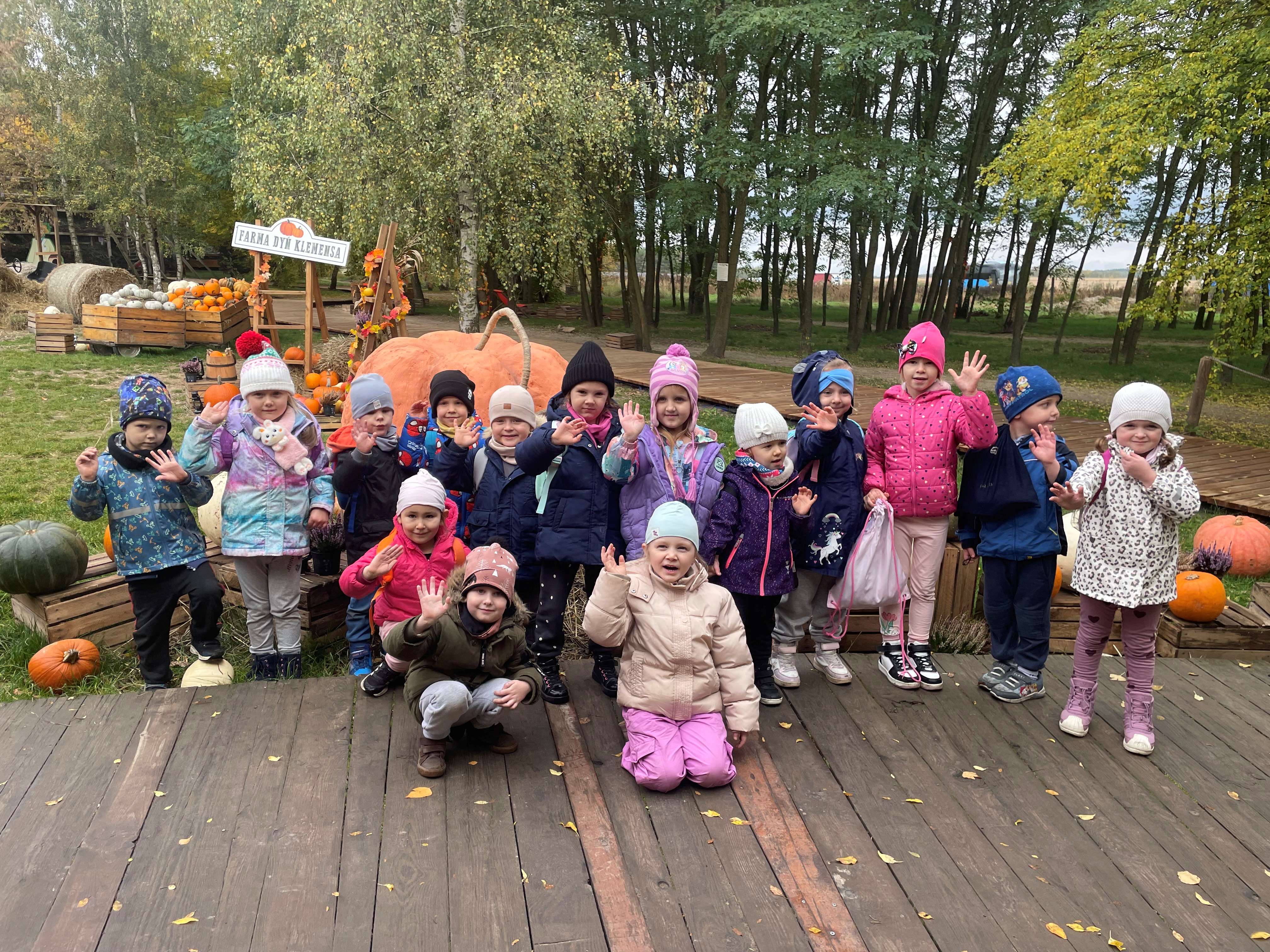 W piątek dzieci z grup „Myśliciele” i „Tropiciele” wybrały się na pełną przygód wycieczkę do Sadów Klemensa. Panowała tam prawdziwie jesienna, dyniowa aura – wszędzie otaczały nas kolorowe liście i piękne, pomarańczowe dynie.
