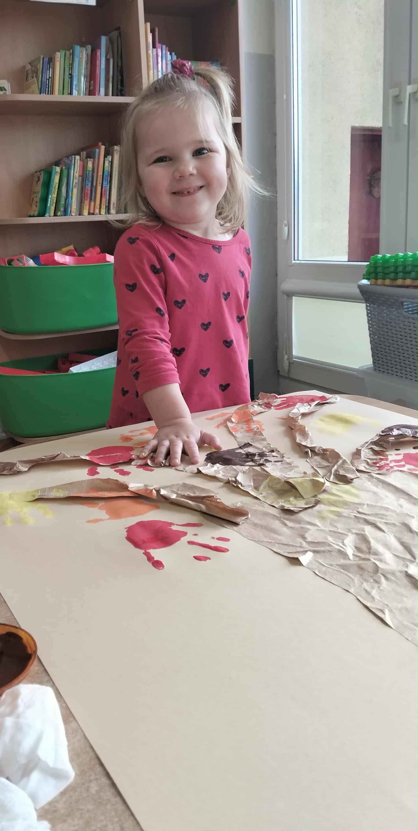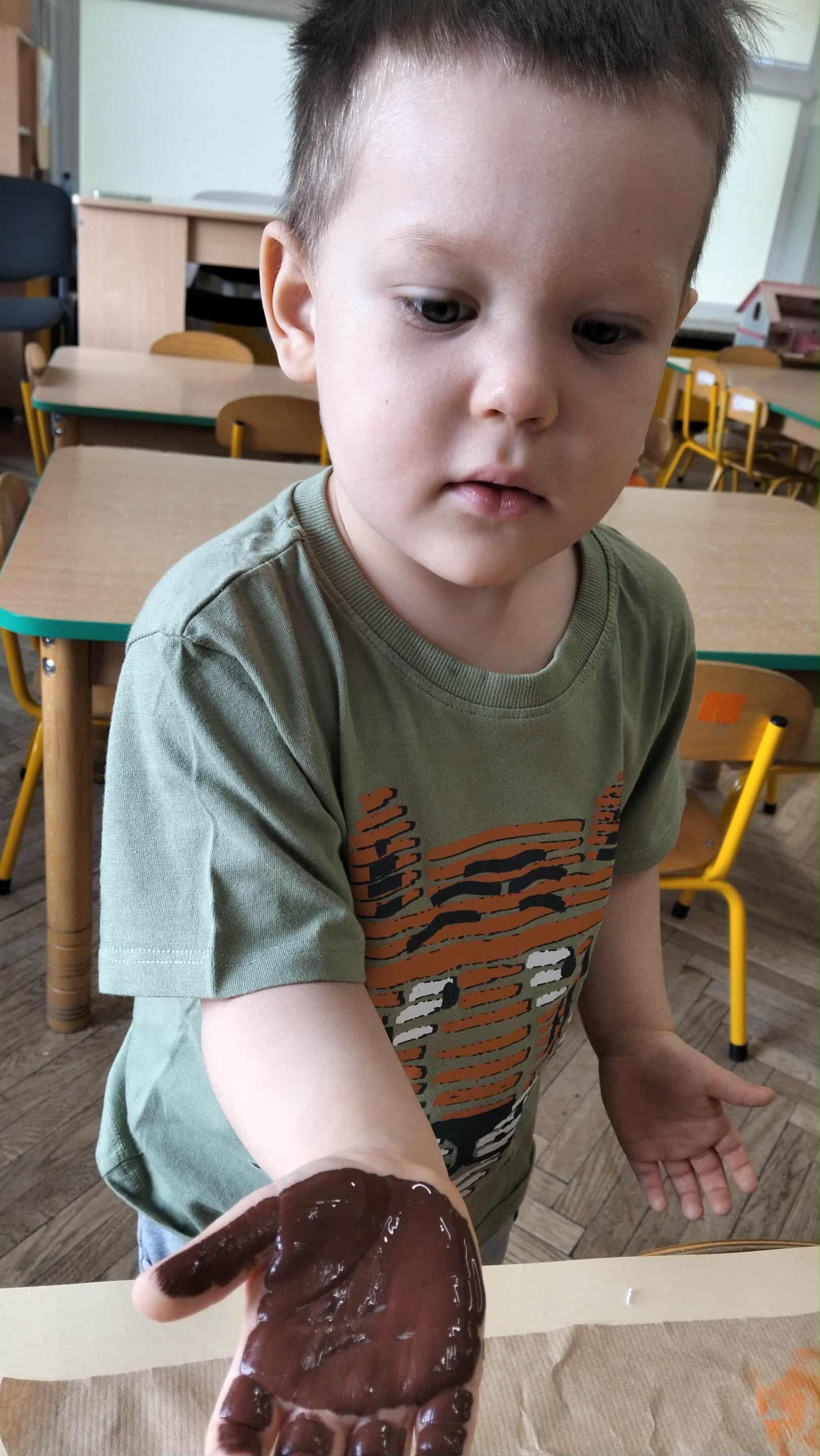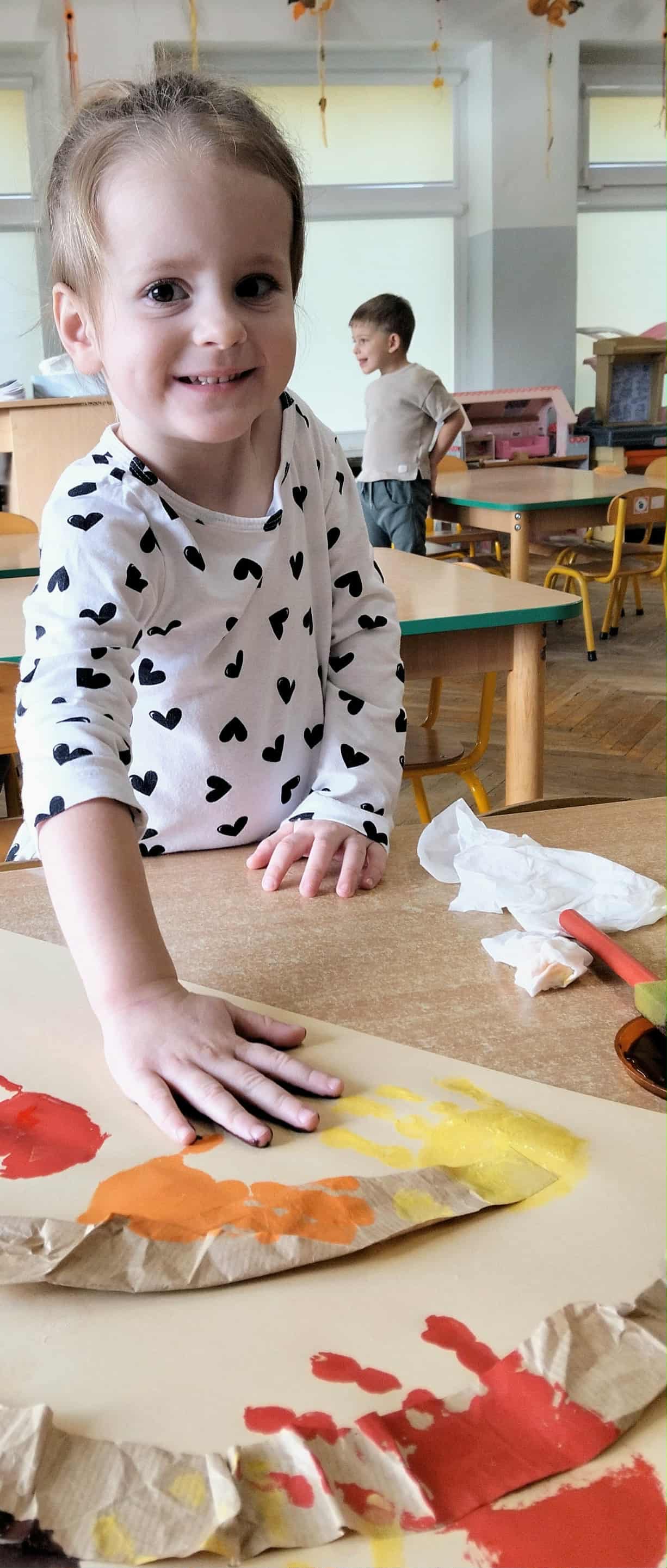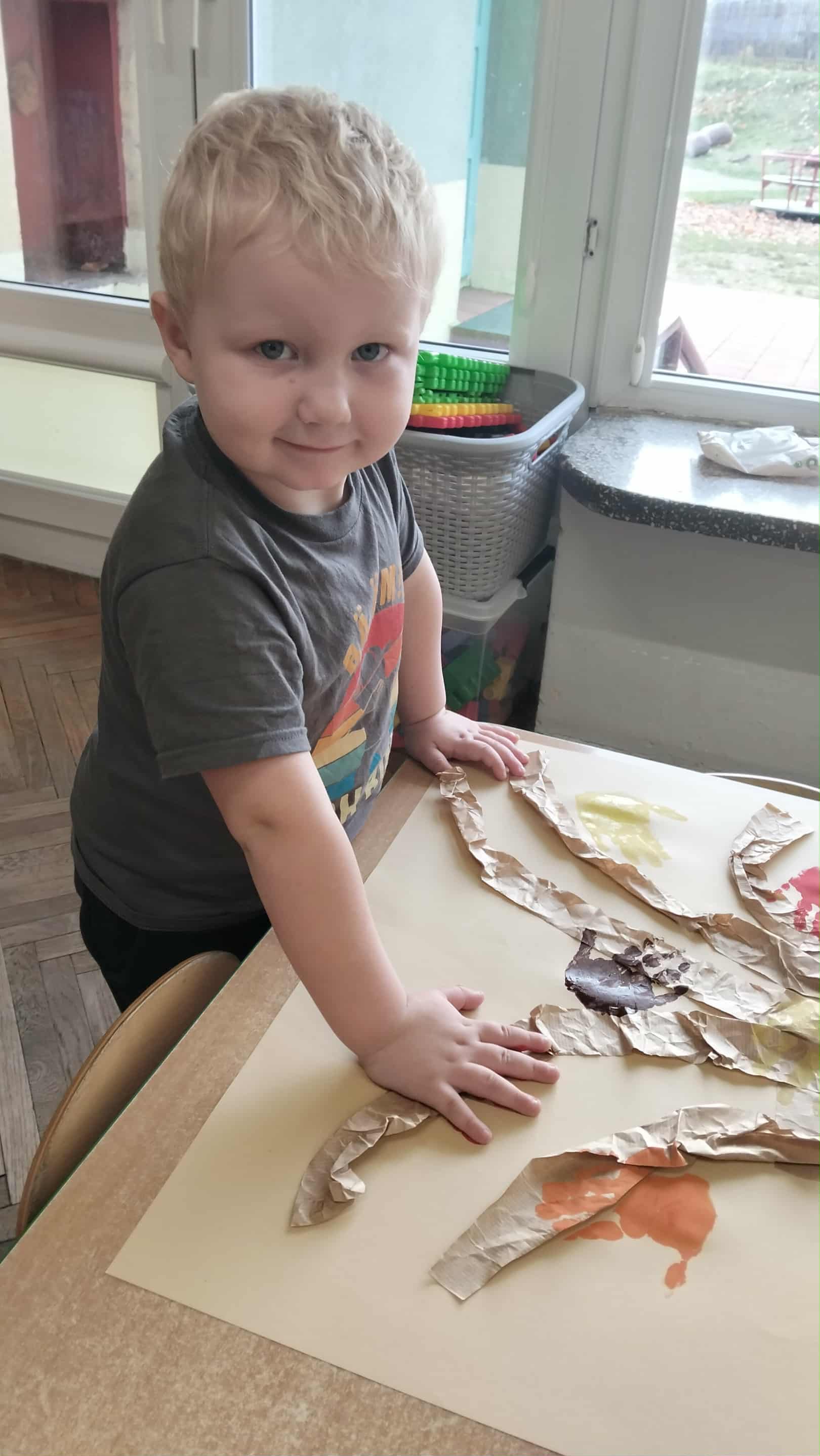 Dzisiaj przedszkolaki z grupy Poszukiwacze wykonały pracę plastyczną – „Jesienne drzewo”. Maluszki moczyły rączki w kolorowych farbach i odbijały je na makiecie drzewa. Wszystkie dzieci bardzo się starały. Powstało piękne, kolorowe jesienne drzewo. Jesień niesie wiele inspiracji, dlatego jeszcze nie raz zobaczymy jesienne prace dzieci.