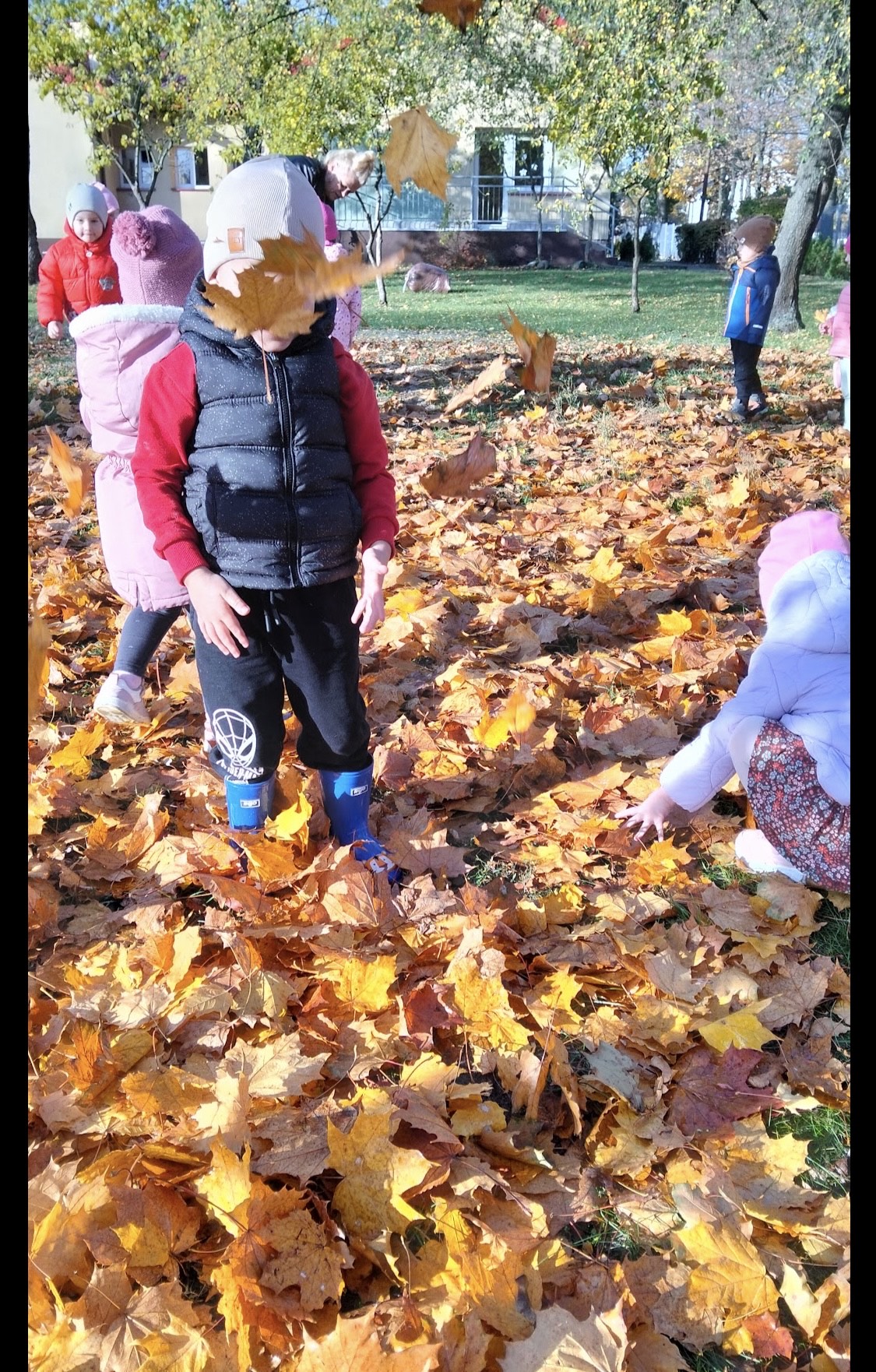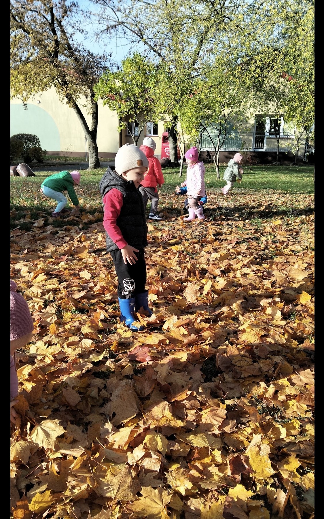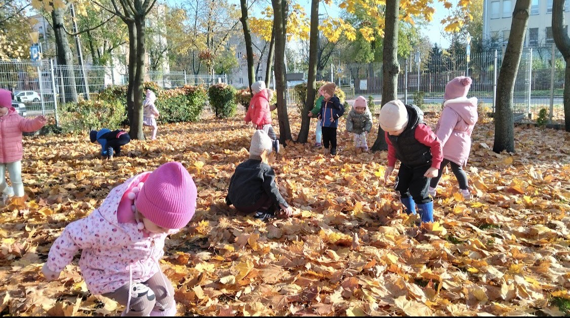 O tym, że jesień jest jedną z najpiękniejszych pór roku ze względu na swoje bogactwo barw, wiedzą i mali i duzi. Sprzyjająca pogoda, ciepłe promienie jesiennego słońca sprawiają, że przedszkolaki częściej wychodzą na świeże powietrze. Tak było i tym razem, korzystając z pięknej, słonecznej pogody grupa Poszukiwaczy udała się dzisiaj na jesienny spacer. Dzieci podziwiały okolice przedszkola w jesiennej szacie, otaczającą przyrodę oraz zbierały liście. Poza tym, był też czas na wspaniałą zabawę wśród pięknych i kolorowych, jesiennych liści.