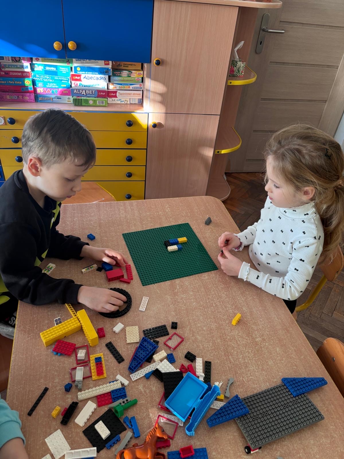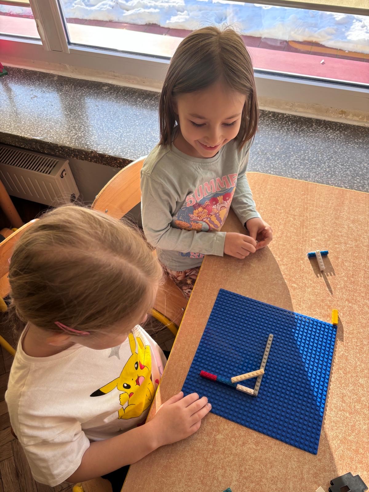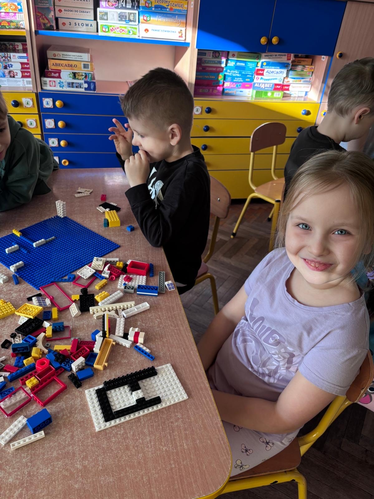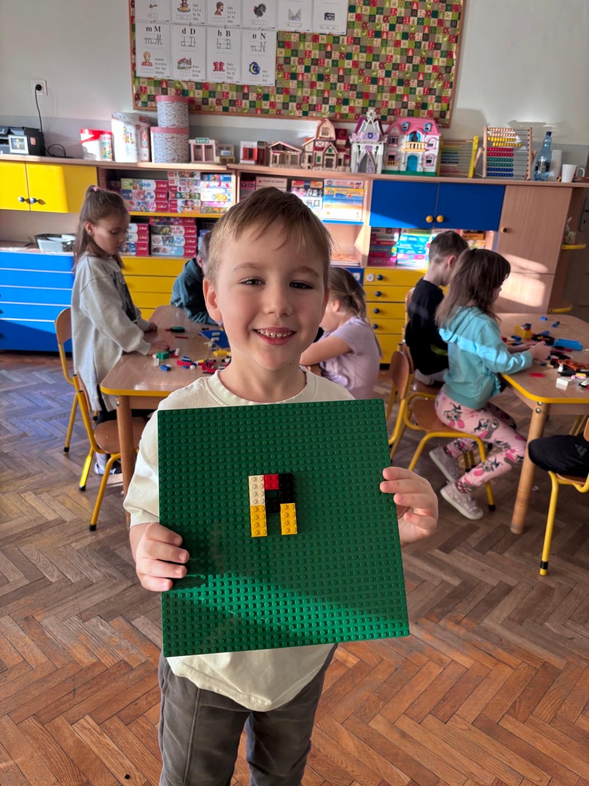 W grupie „Myśliciele” odbyły się niezwykłe zajęcia, podczas których dzieci poznawały litery, budując je z klocków LEGO. Praca w grupach sprzyjała współpracy, rozwijała kreatywność i umiejętności społeczne. Budowanie z LEGO nie tylko wspiera naukę literek, ale także rozwija zdolności motoryczne, logiczne myślenie i umiejętność rozwiązywania problemów. To doskonały sposób, by nauka stała się zabawą!