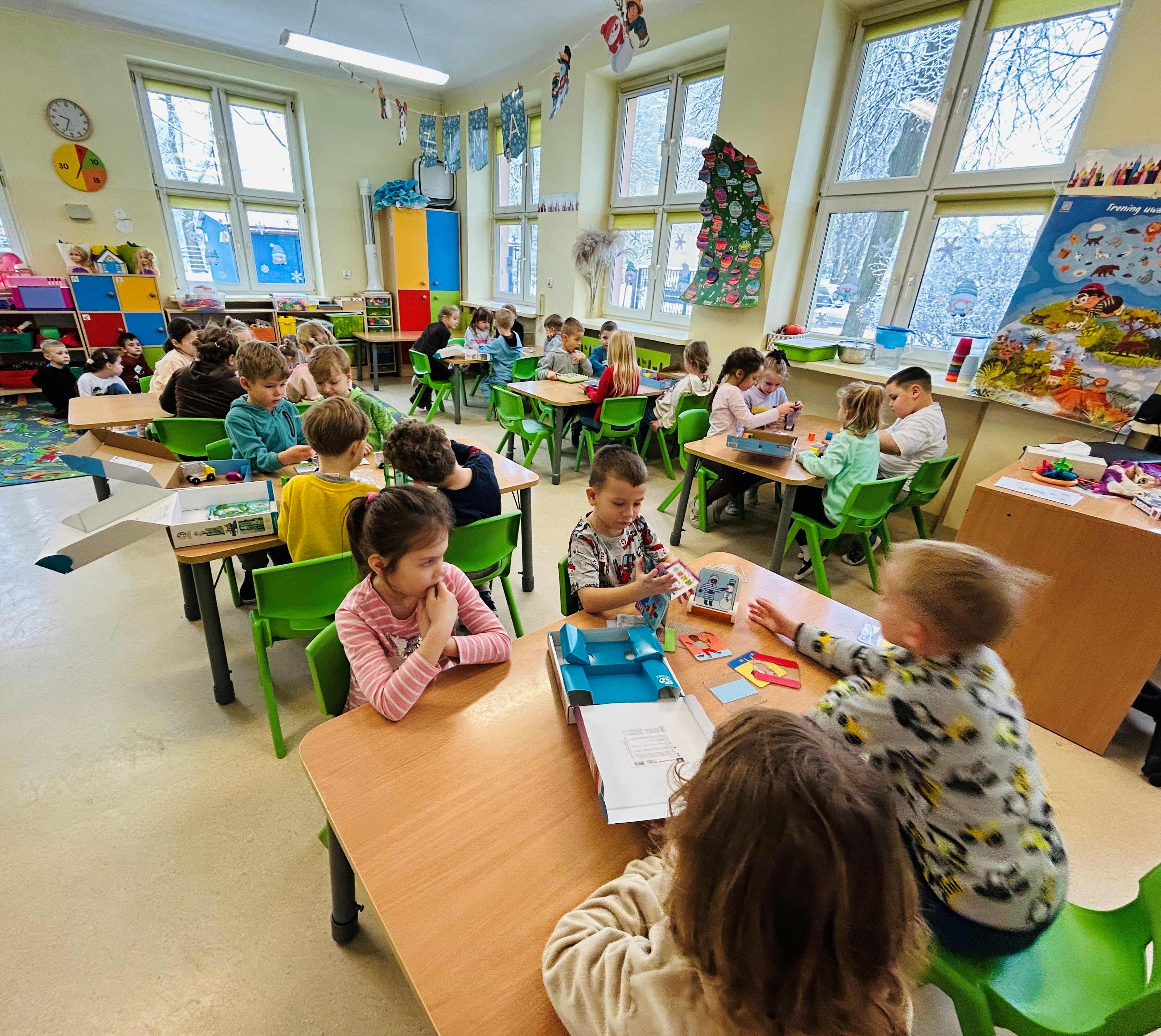 W dniu 28.01.2026 r. dzieci z Przedszkola nr 7 odwiedziły Tęczową Akademię. Dzieci brały udział w grach logicznych SMART, które rozwijały myślenie, koncentrację oraz umiejętność współpracy w grupie. Wspólna zabawa przebiegała w miłej i radosnej atmosferze. Dzieci chętnie podejmowały zadania, pomagały sobie nawzajem i wykazywały duże zaangażowanie. Spotkanie sprzyjało nawiązywaniu relacji oraz wzmacnianiu pozytywnych kontaktów między rówieśnikami. Wspólne działania pozwoliły na integrację grup oraz dostarczyły uczestnikom wielu pozytywnych wrażeń.