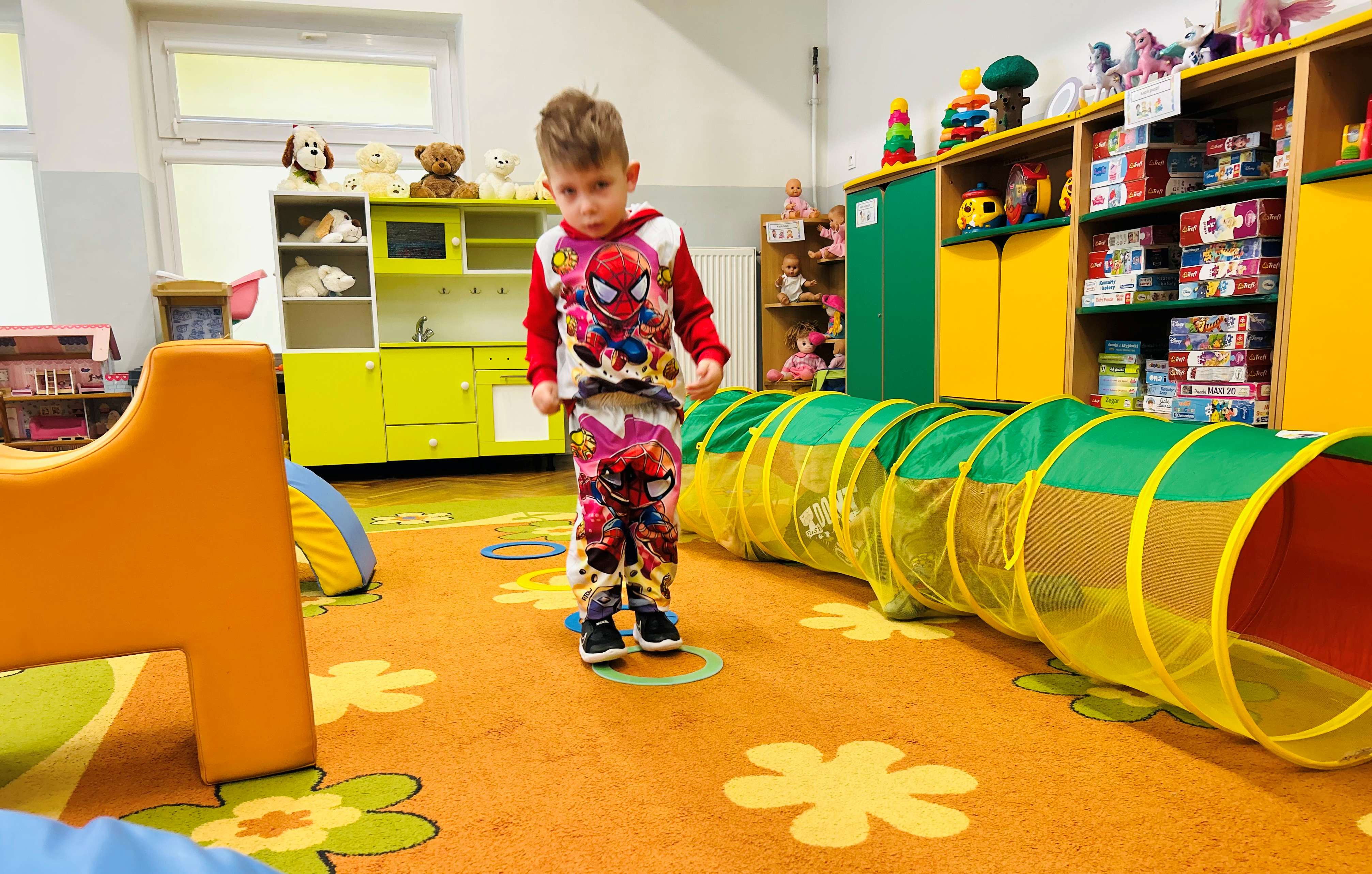 Zajęcia ruchowe z torem przeszkód to radosna i aktywna forma zabawy wspierająca wszechstronny rozwój dzieci. Podczas ostatnich zajęć Poszukiwacze pokonywali bezpieczne, dostosowane do ich możliwości przeszkody, takie jak przechodzenie przez tunele, przeskakiwanie przez niskie elementy czy czołganie się pod miękkimi elementami sportowymi. Dzieci uczyły się współpracy, cierpliwości i wiary we własne możliwości w radosnej atmosferze.