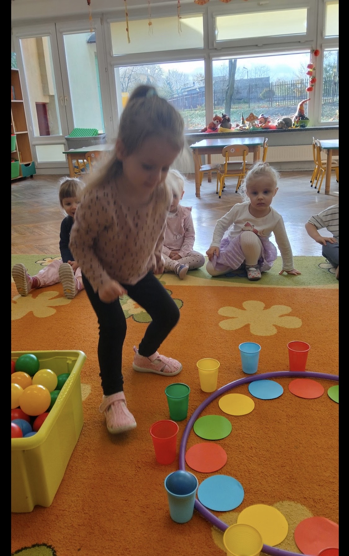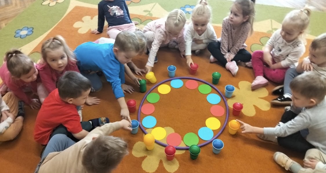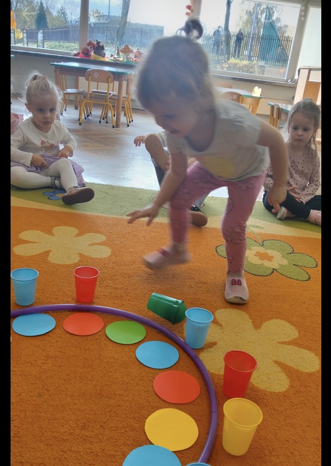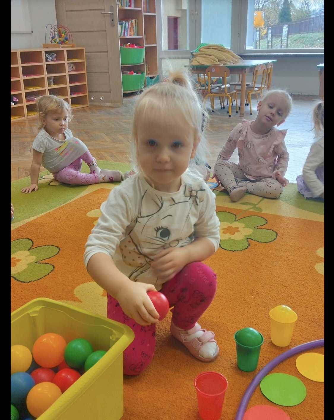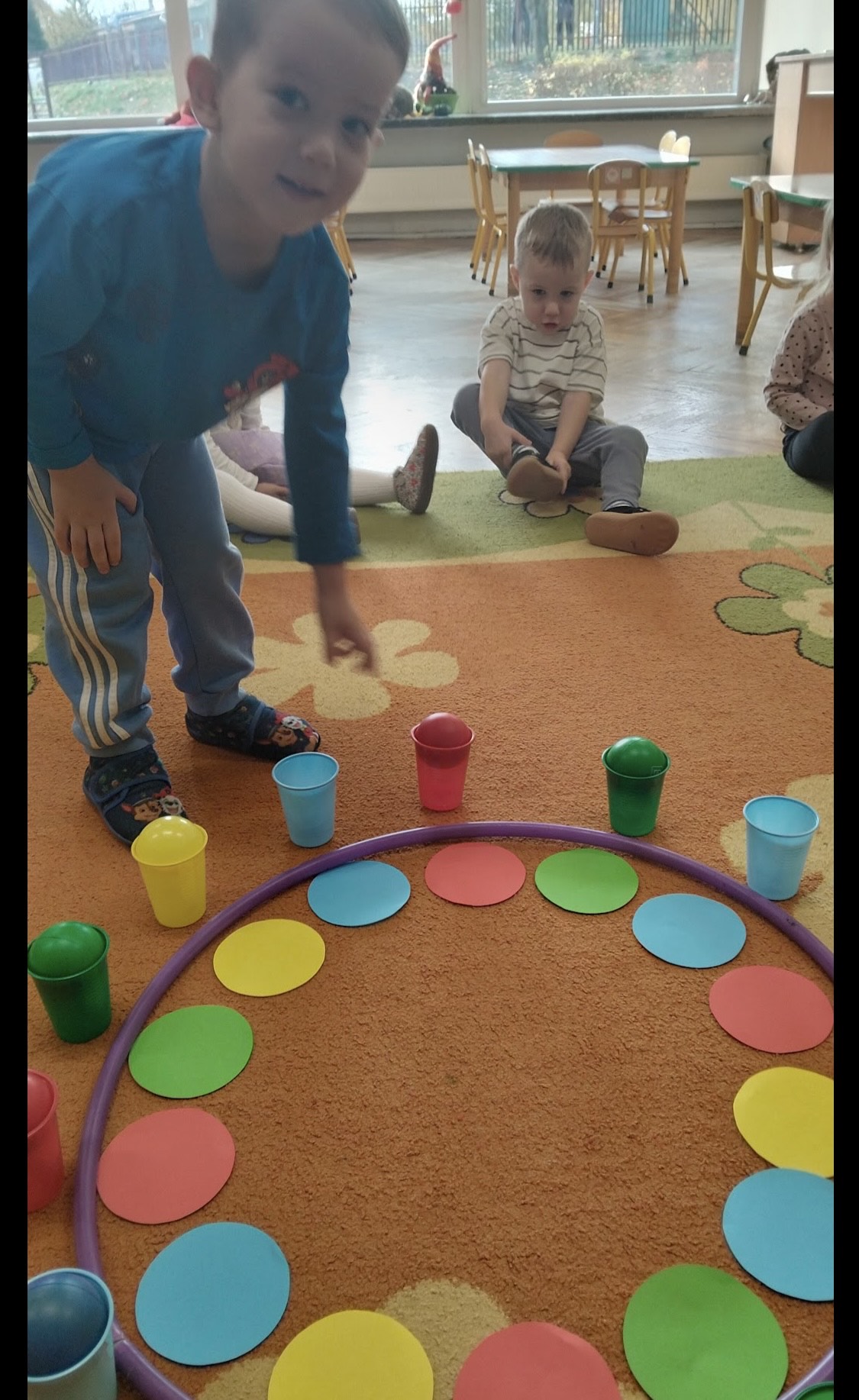 Tym razem do nauki kolorów użyłyśmy kolorowych kółek i piłeczek oraz kubeczków. Zadanie Poszukiwaczy polegało na dopasowaniu koloru piłki do odpowiedniego kubeczka. Dzięki takim zajęciom kształtujemy percepcję wzrokową i logiczne myślenie oraz poznajemy kolory.