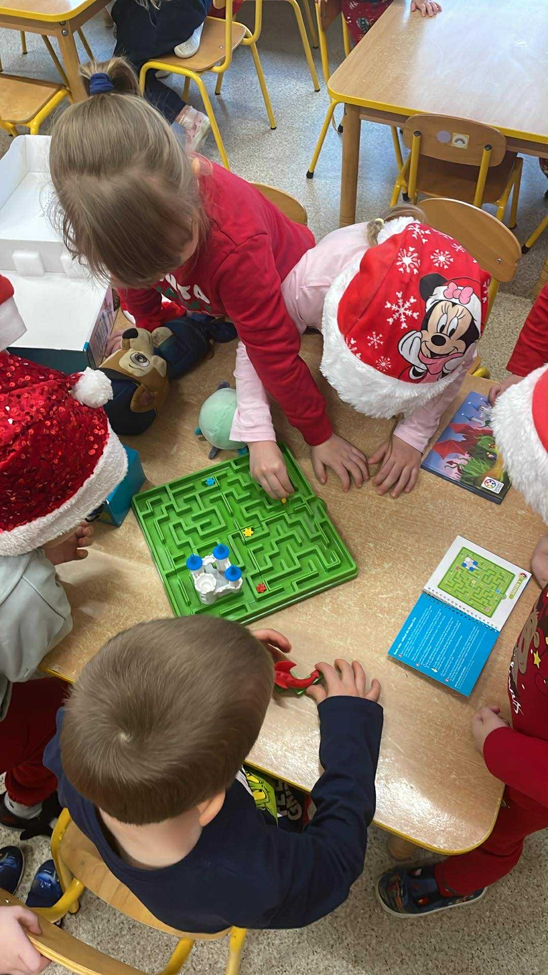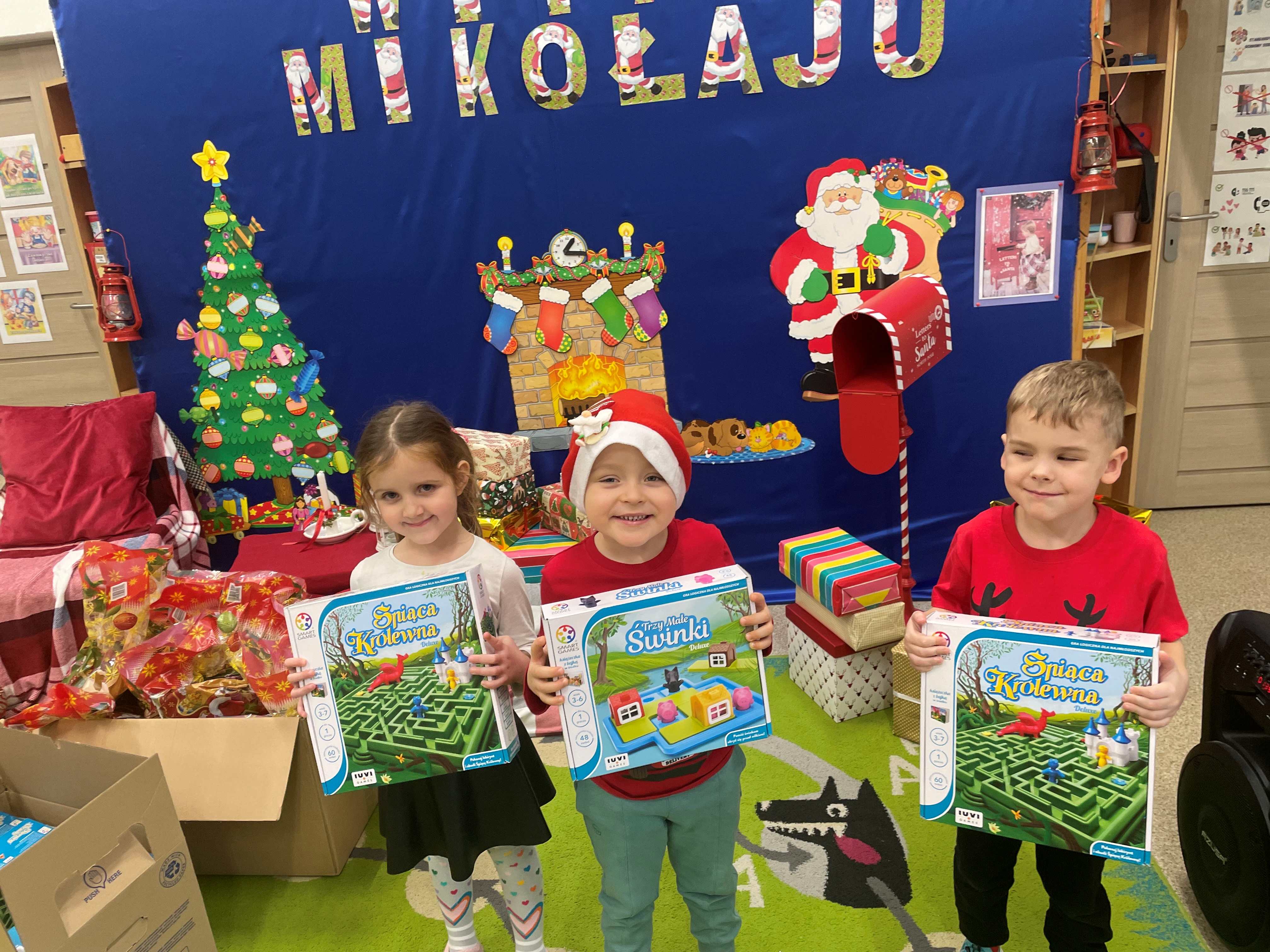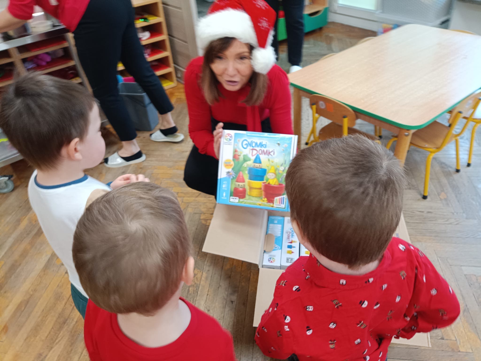 Wreszcie pojawił się długo wyczekiwany gość – Święty Mikołaj! Dzieci powitały go z ogromnym entuzjazmem. Wraz z Mikołajem pojawiły się także nowe gry, które natychmiast wzbudziły wielkie zainteresowanie przedszkolaków.