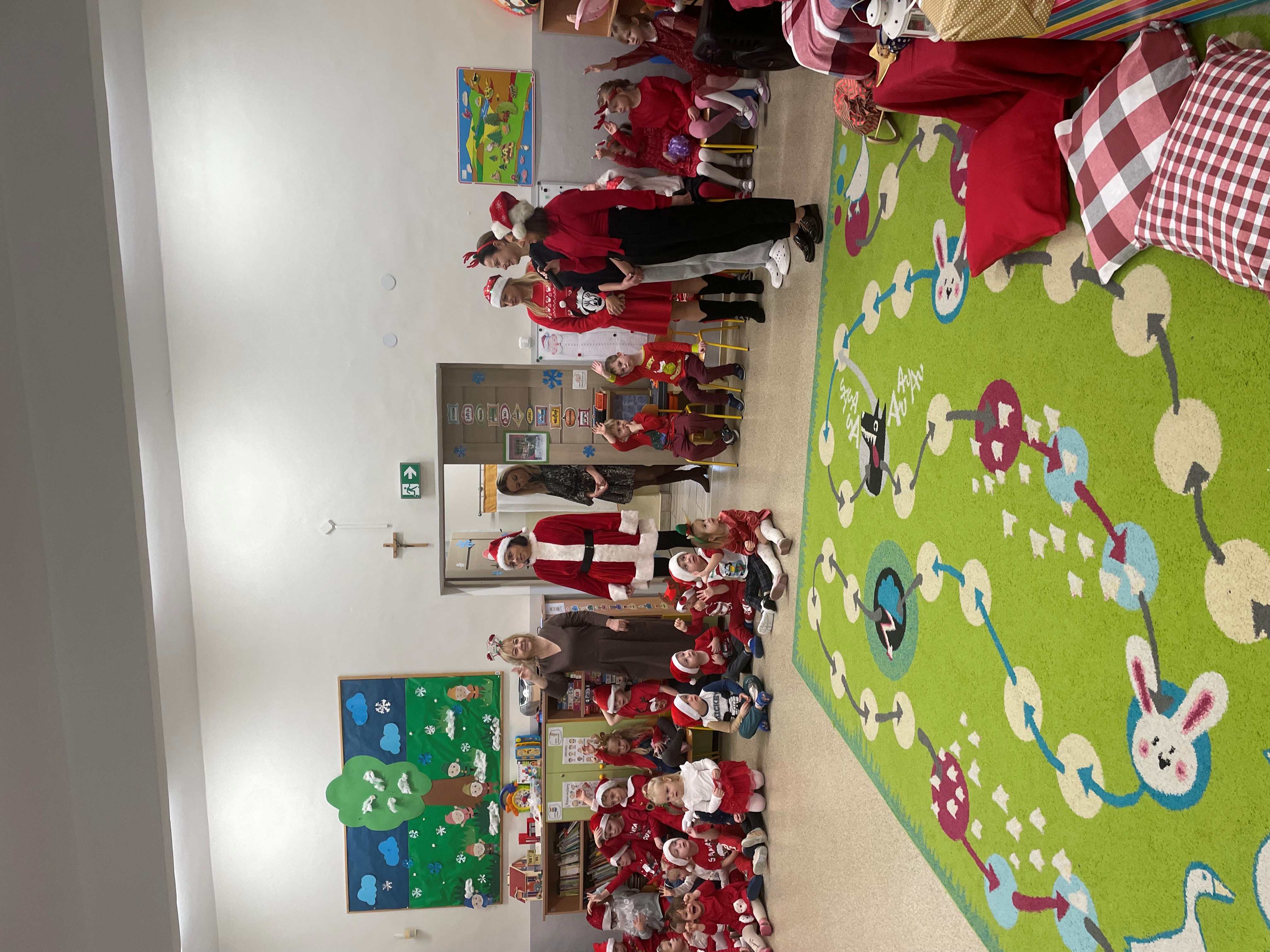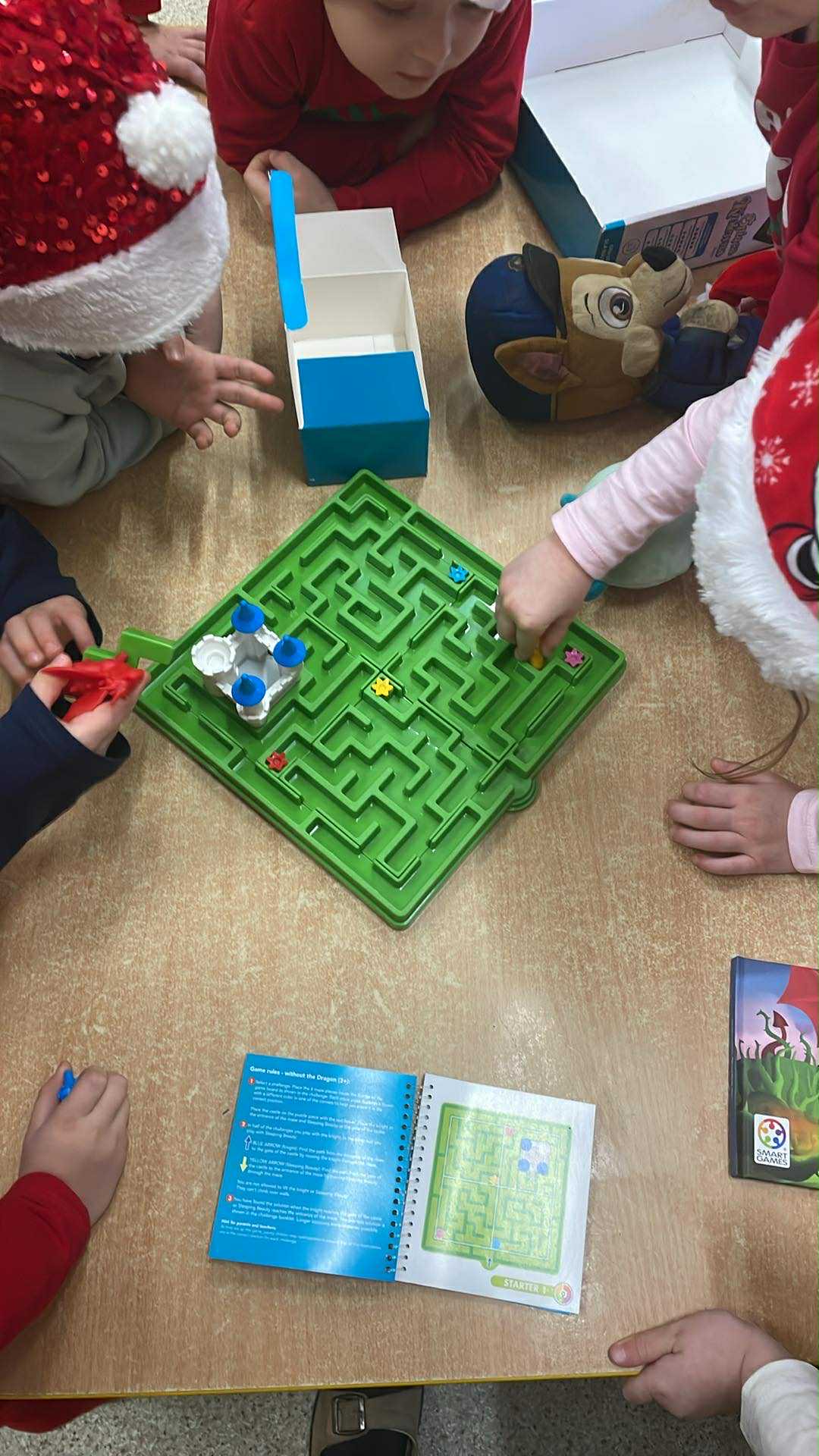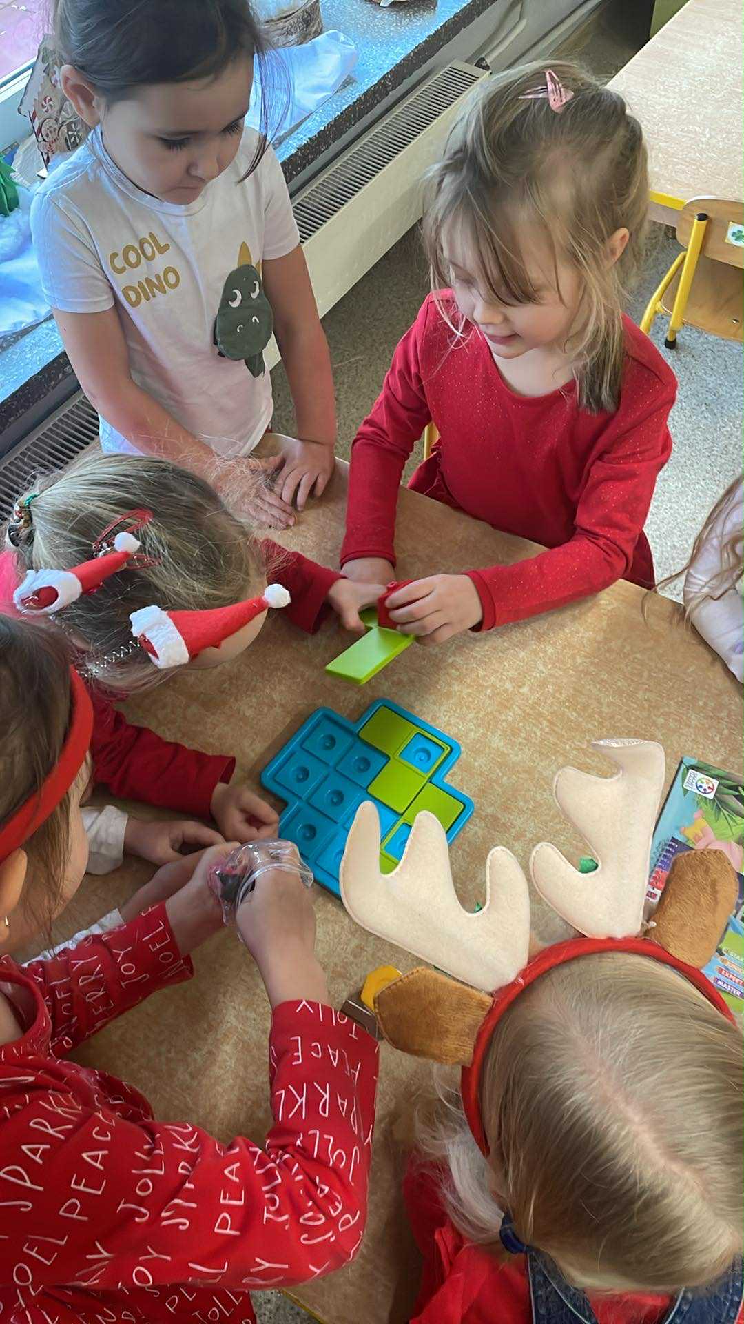 Wreszcie pojawił się długo wyczekiwany gość – Święty Mikołaj! Dzieci powitały go z ogromnym entuzjazmem. Wraz z Mikołajem pojawiły się także nowe gry, które natychmiast wzbudziły wielkie zainteresowanie przedszkolaków.