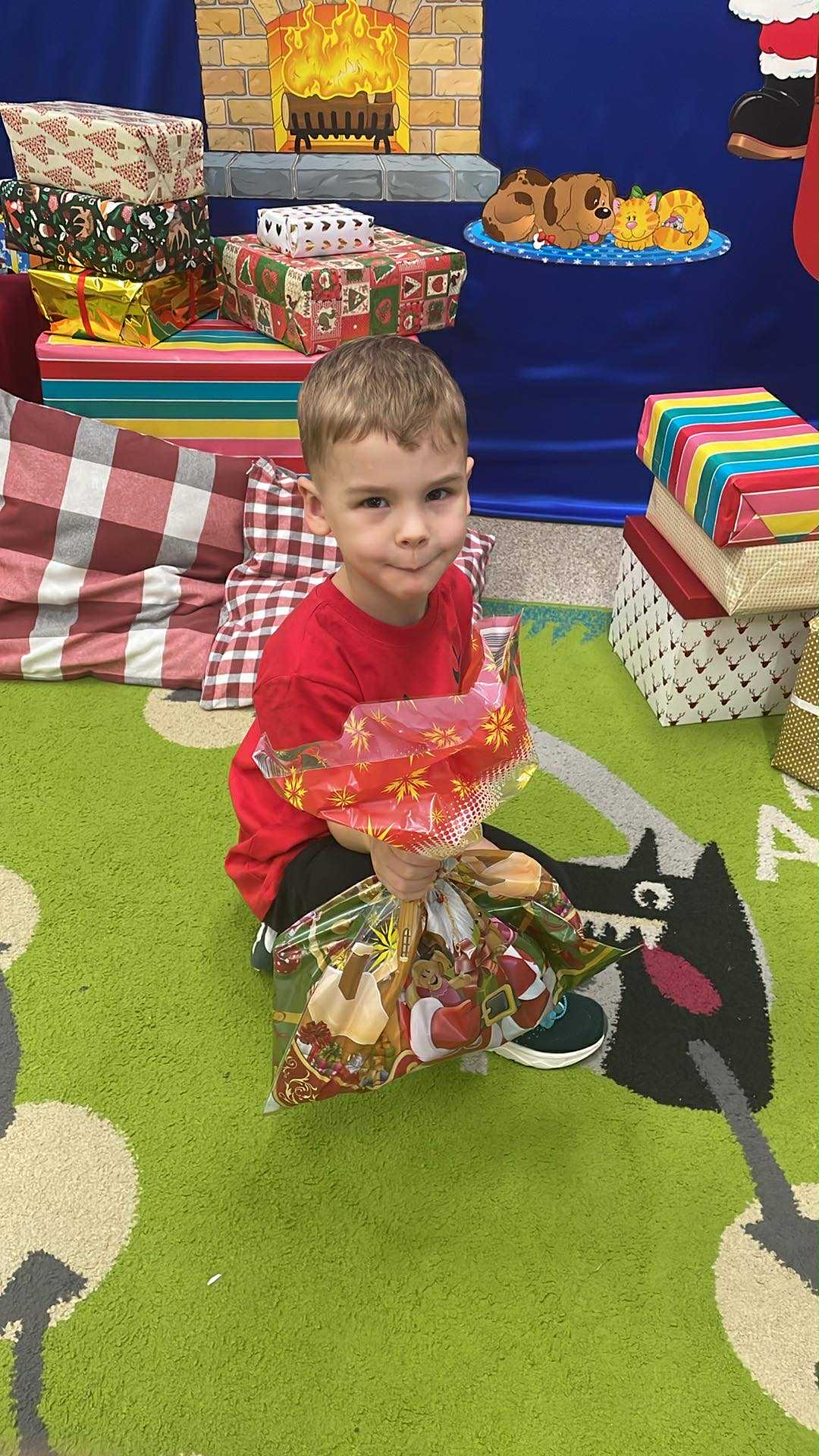 Następnie Mikołaj obdarował dzieci ciepłym słowem, uśmiechem i oczywiście prezentami. Dodatkowe upominki przygotowała także Rada Rodziców oraz samo przedszkole – przedszkolaki otrzymały wspaniałe paczki pełne niespodzianek.