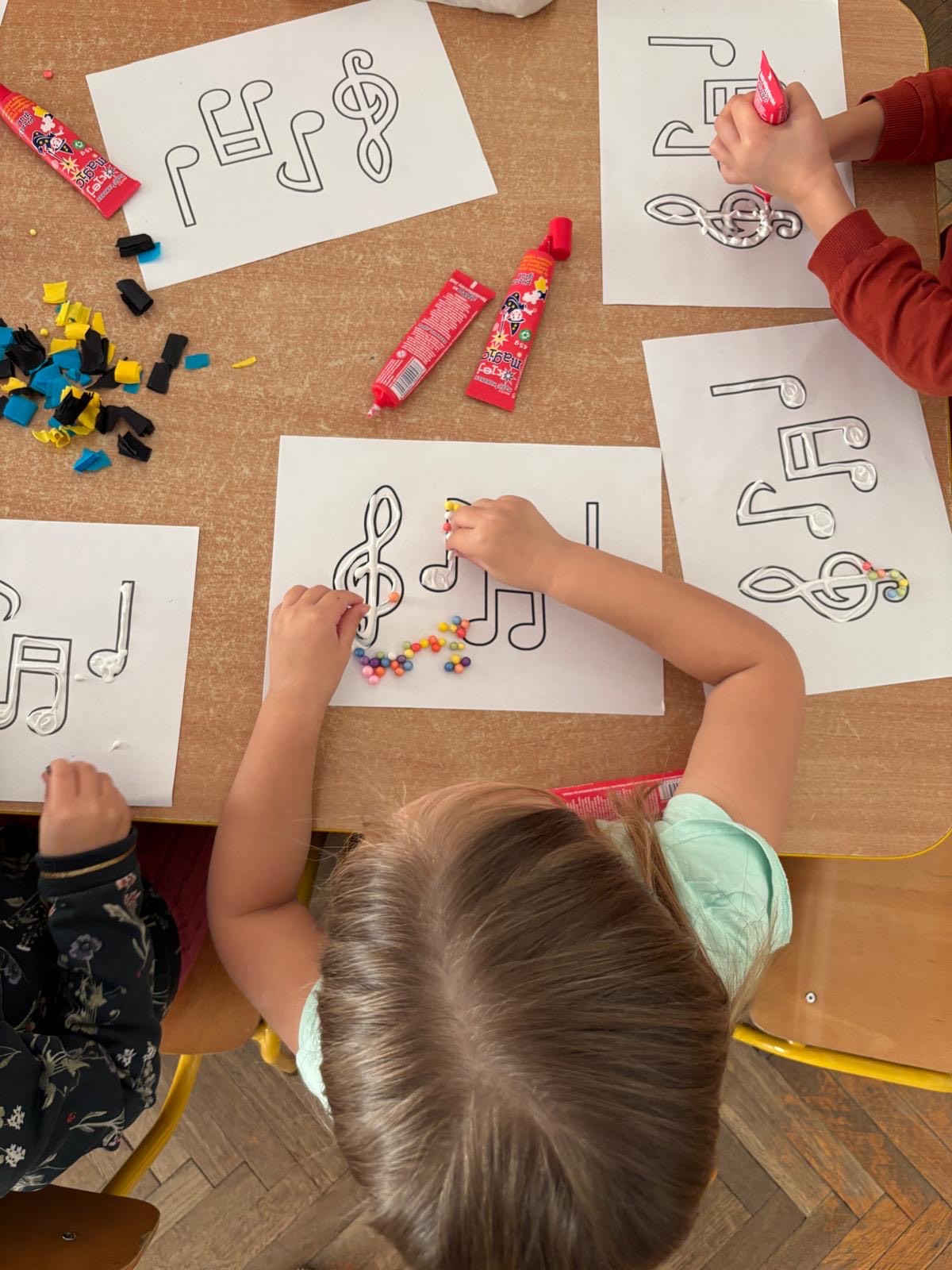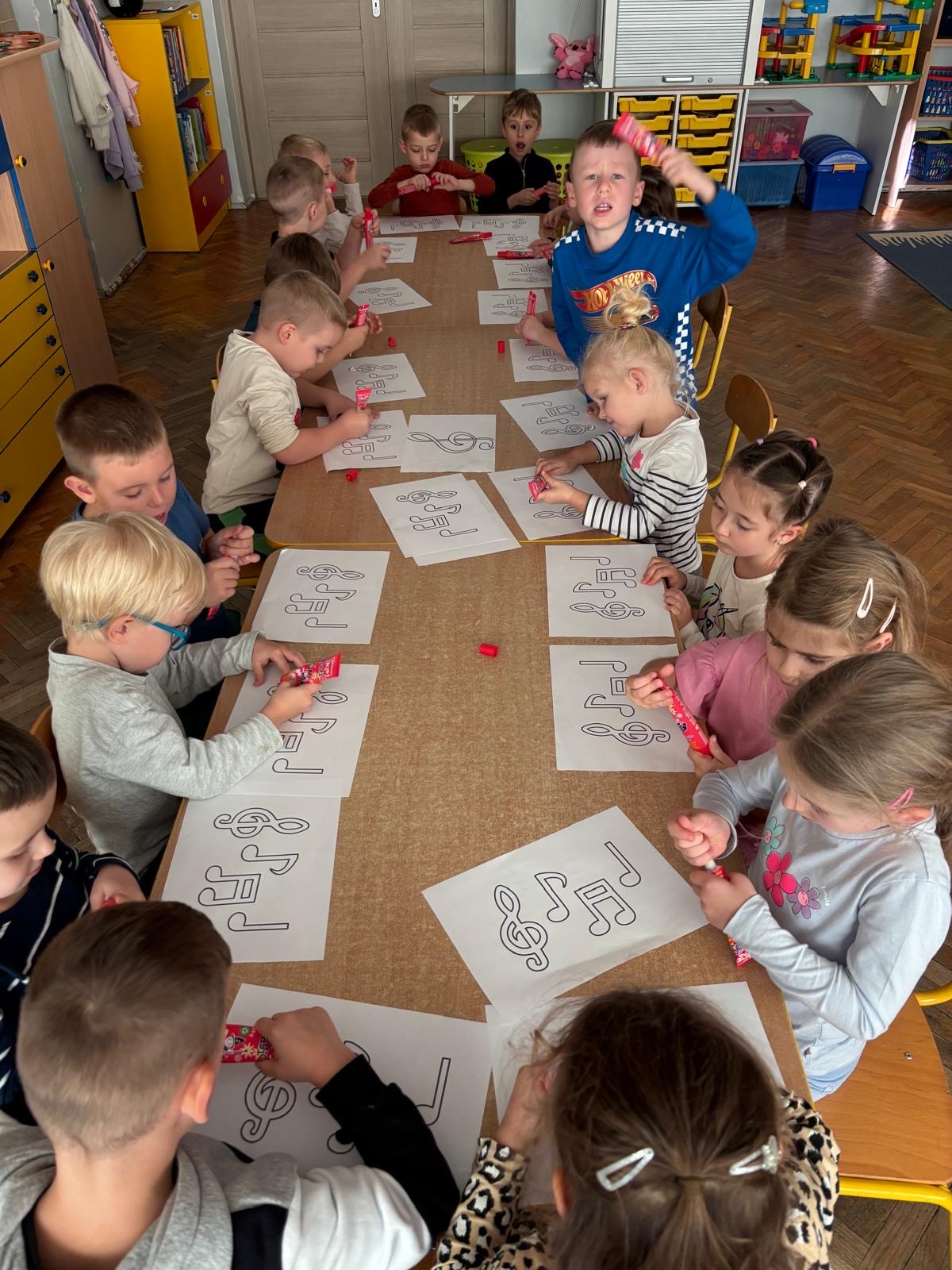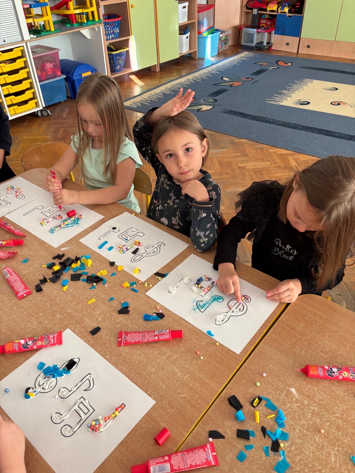 Przy dźwiękach muzyki Chopina przygotowały dekorację, poznając wartości nut i znaczenie klucza w muzyce.