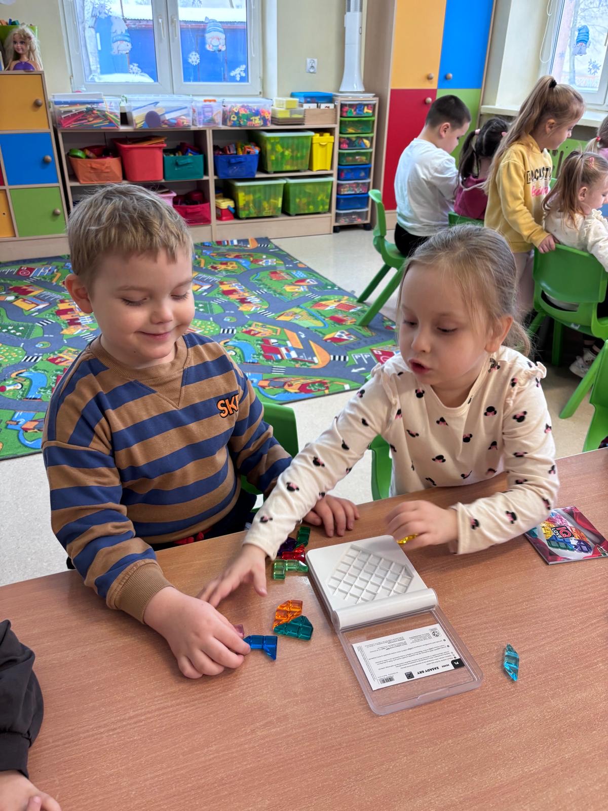 W dniu dzisiejszym Tęczowa Akademia gościła dwie wyjątkowe grupy: Myślicieli i Wynalazców. Dzieci miały okazję rozwijać kreatywność i logiczne myślenie poprzez różnorodne gry edukacyjne. Dodatkowo, w sali korekcyjnej ćwiczyli zręczność, bawiąc się piłkami gimnastycznymi i korzystając z drabinek. Na zakończenie odwiedzili Białą Salę Doświadczenia Świata, gdzie mogli sensorycznie się rozwijać, ciesząc się kolorowymi światełkami i basenem z piłkami. Nie zabrakło także kreatywnych zajęć w sali plastycznej, gdzie uczestnicy mieli okazję oglądać pracę na maszynie do szycia.