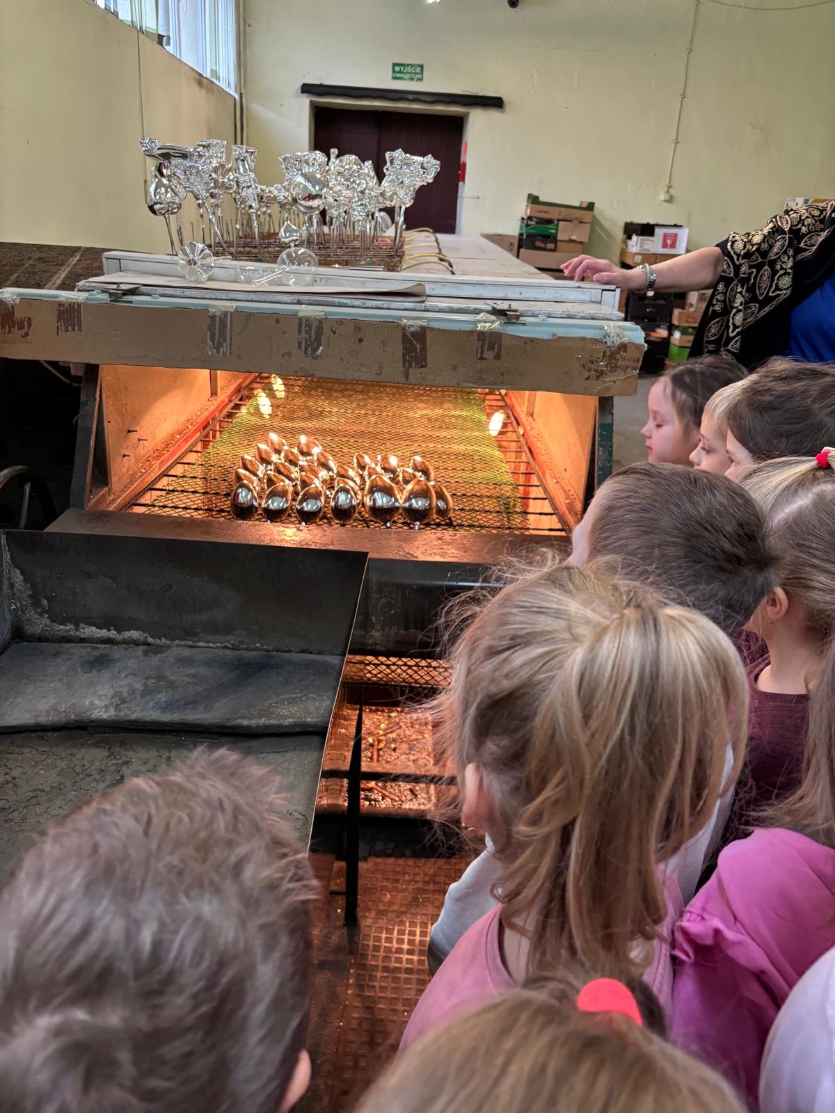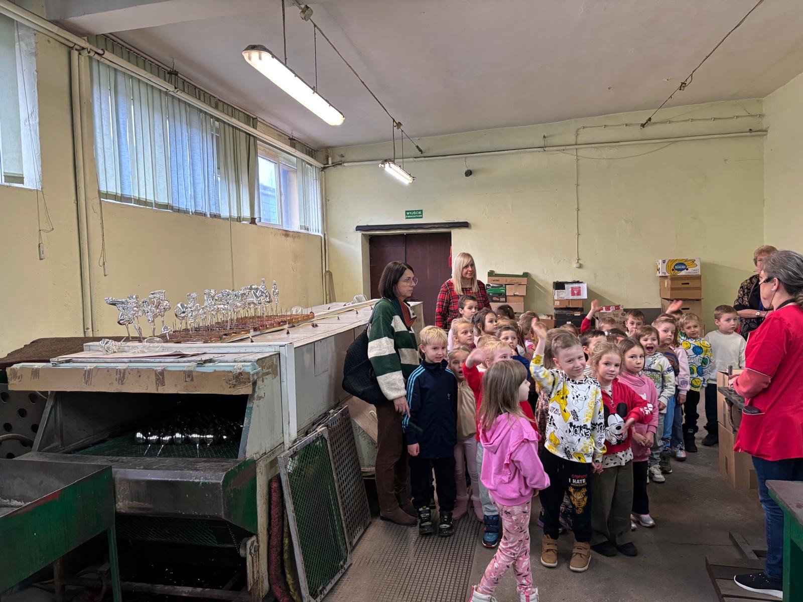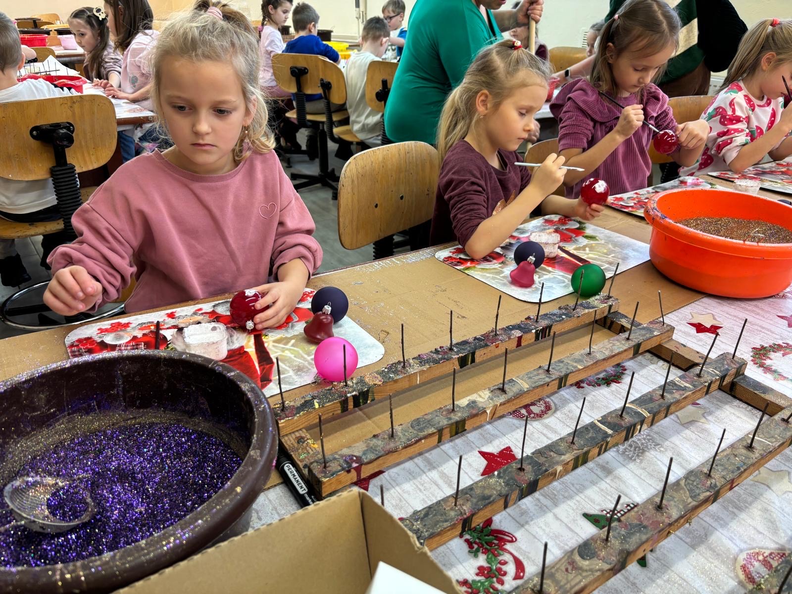Dzieci miały okazję obejrzeć wszystkie etapy produkcji bombek choinkowych od wydmuchania do formowania kształtu, poprzez srebrzenie i malowanie tła, aż po ręczne nanoszenie dekoracji.