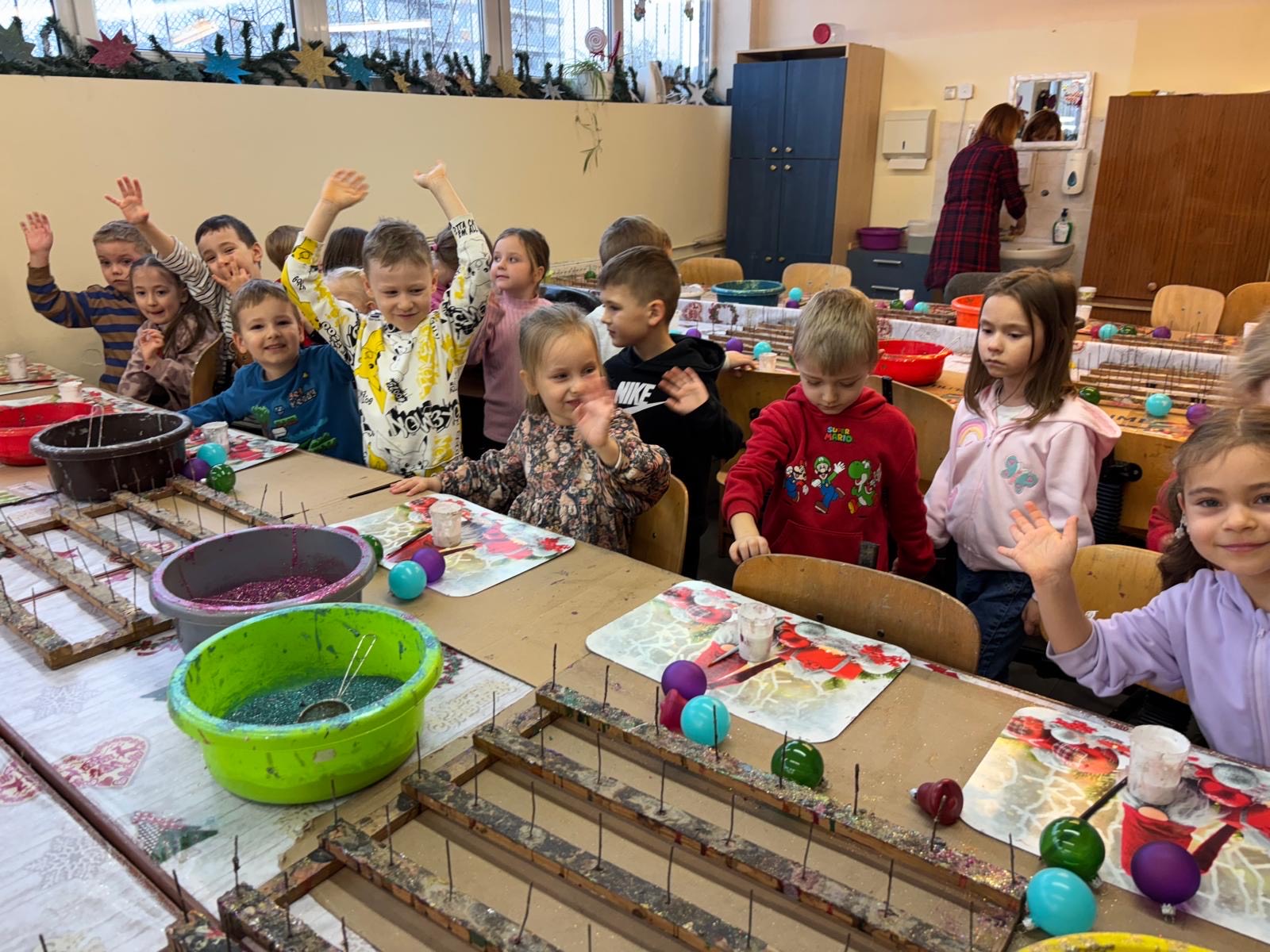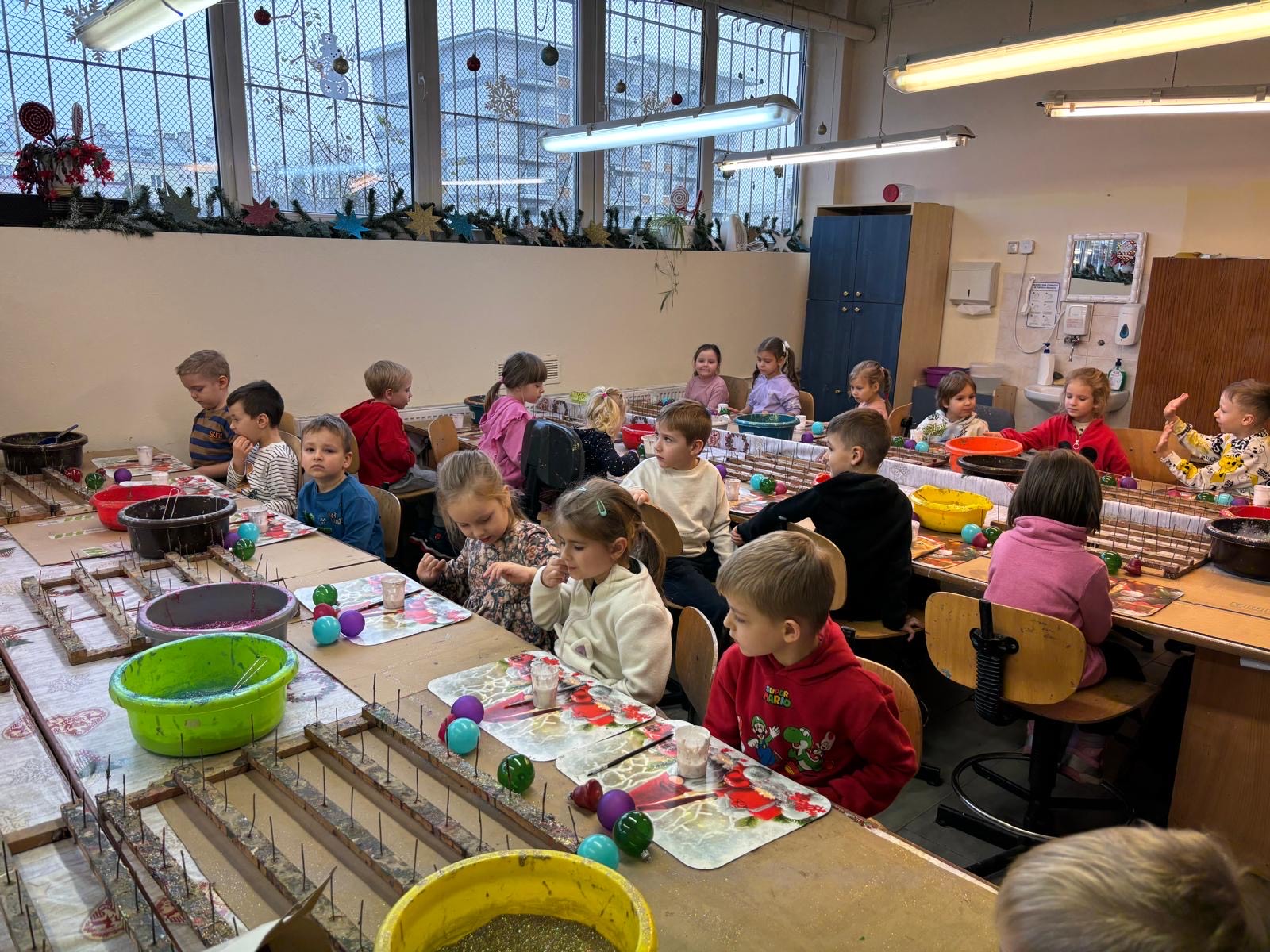 Przedszkolaki wzięły udział w warsztatach dekorowania bombek tworząc niezwykle oryginalne wzory. Gotowe bombki dzieci zabrały w drogę powrotną i będą one zdobiły choinki w ich domach.