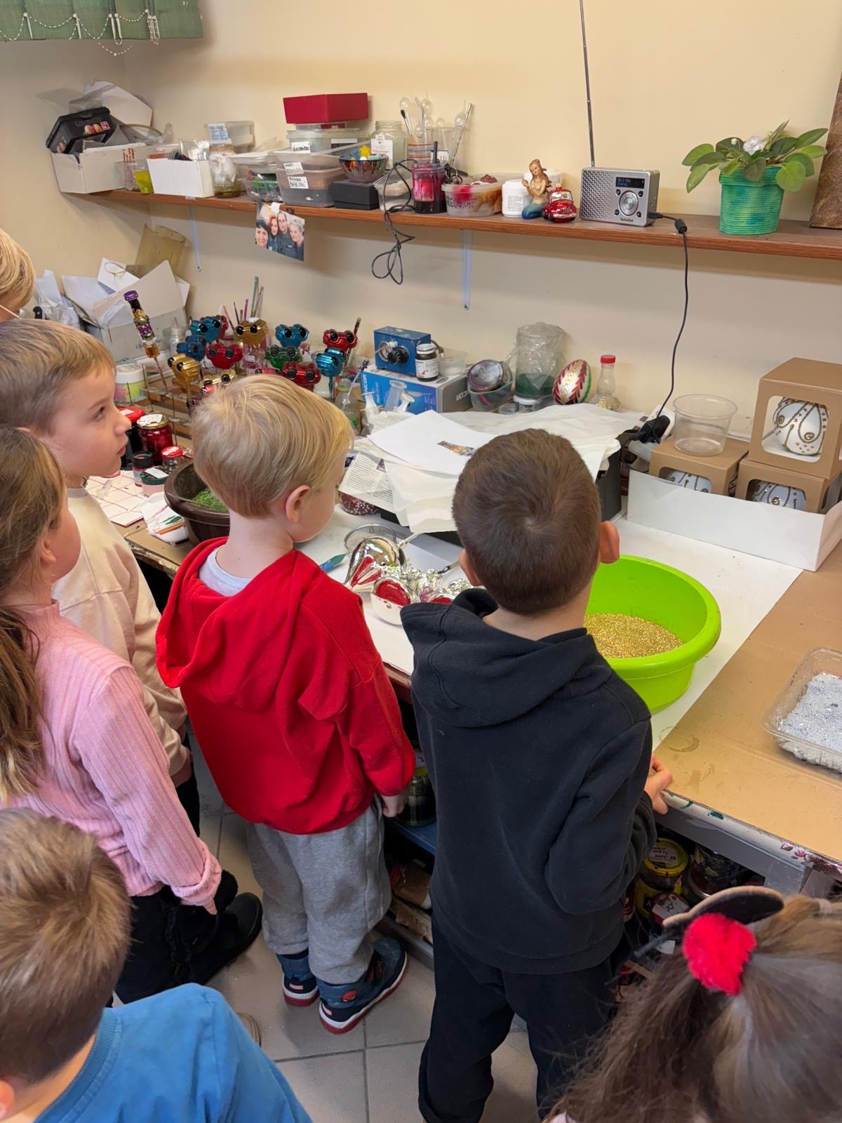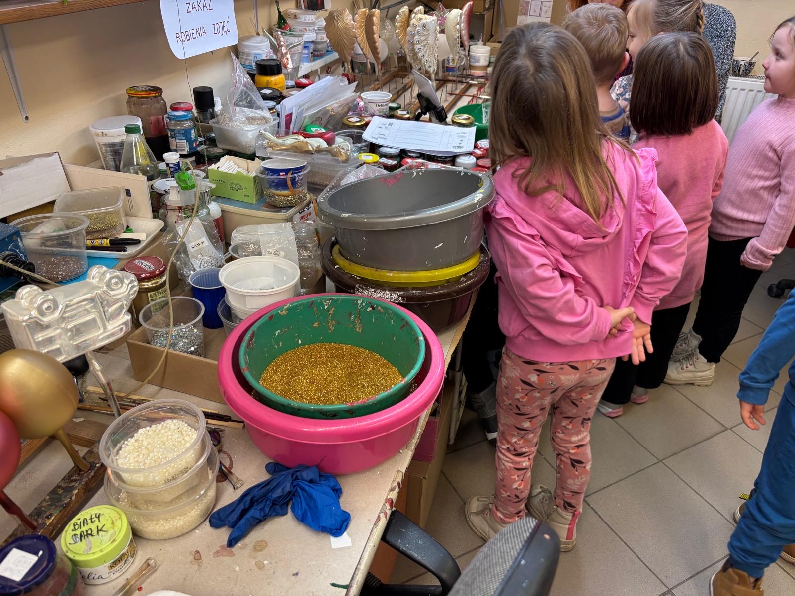 Dzieci miały okazję obejrzeć wszystkie etapy produkcji bombek choinkowych od wydmuchania do formowania kształtu, poprzez srebrzenie i malowanie tła, aż po ręczne nanoszenie dekoracji.