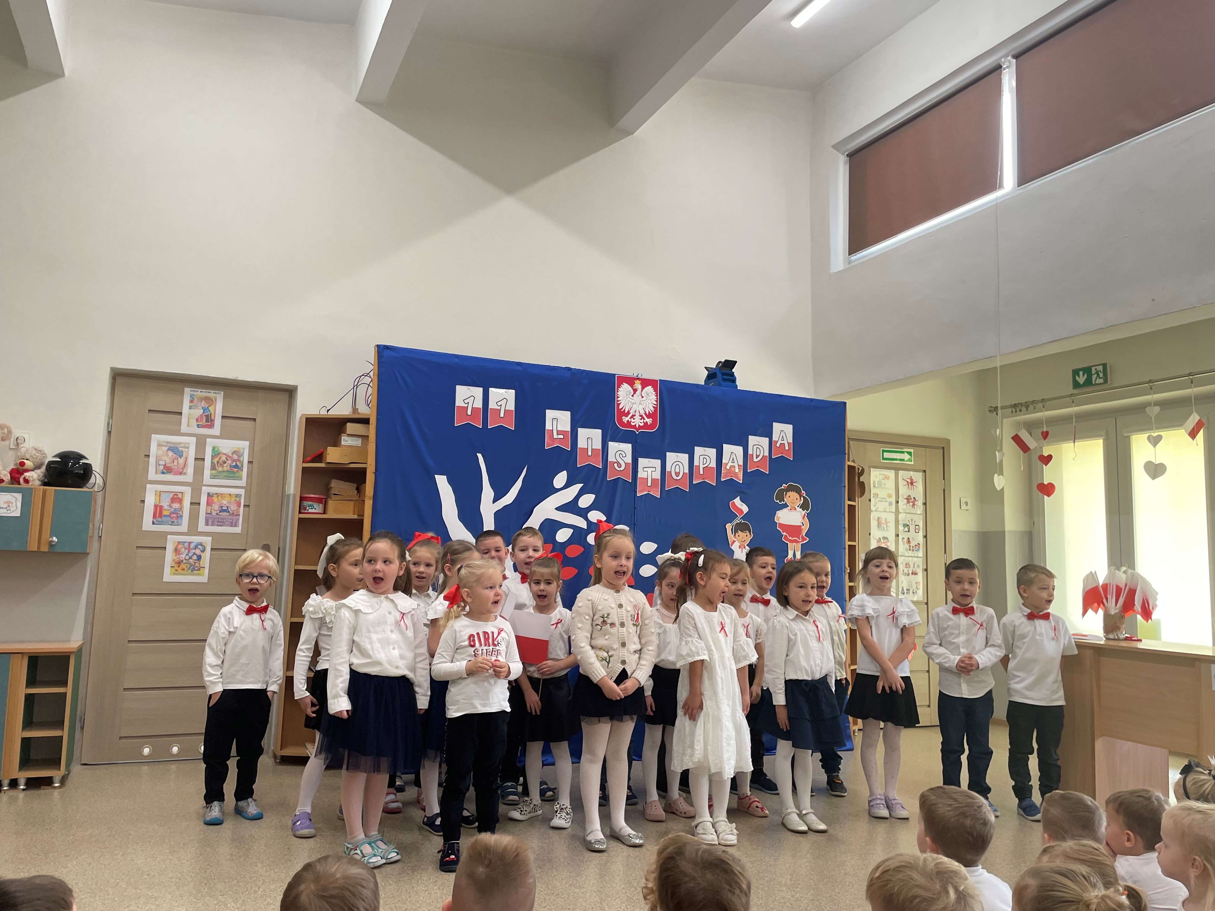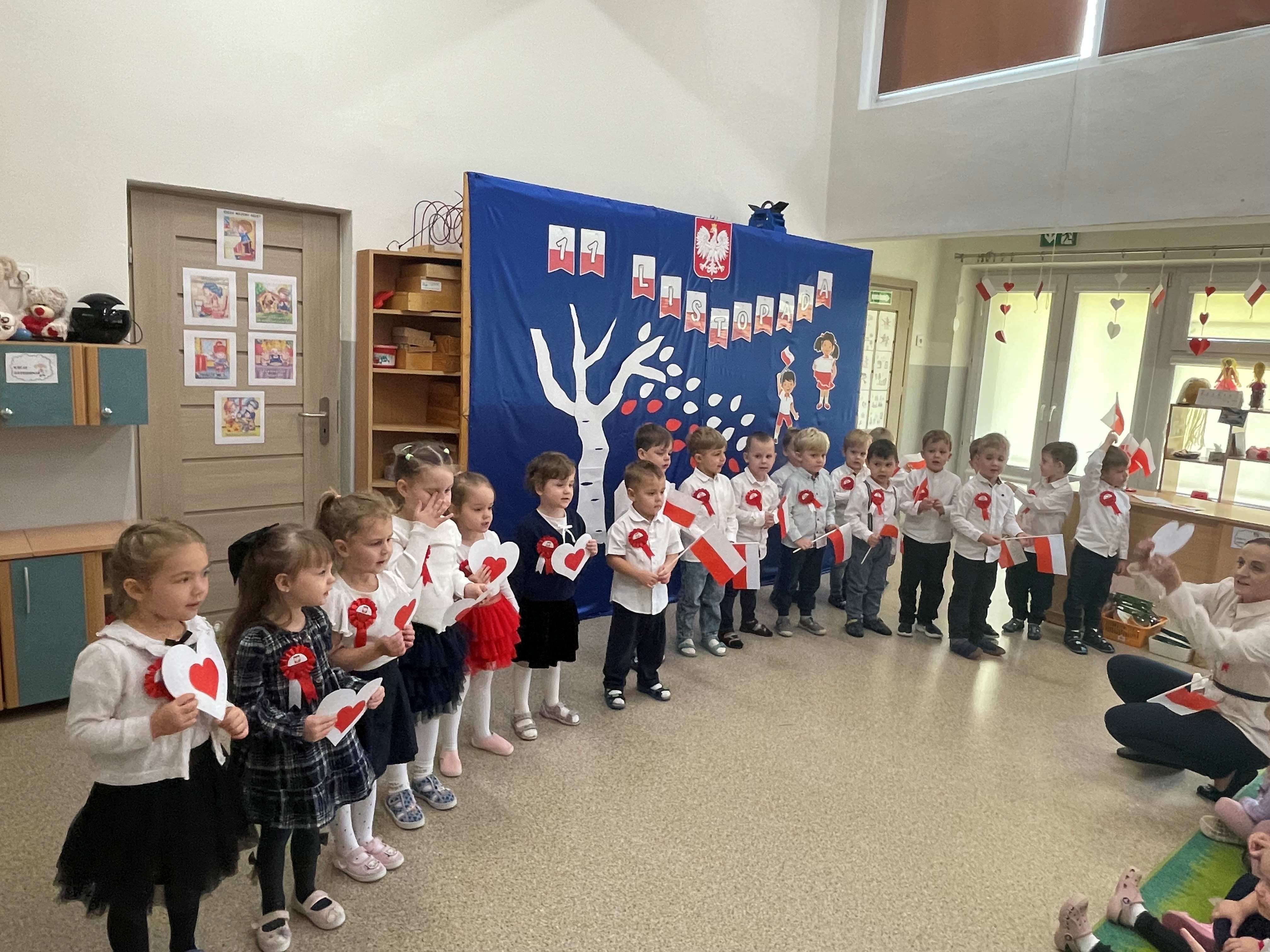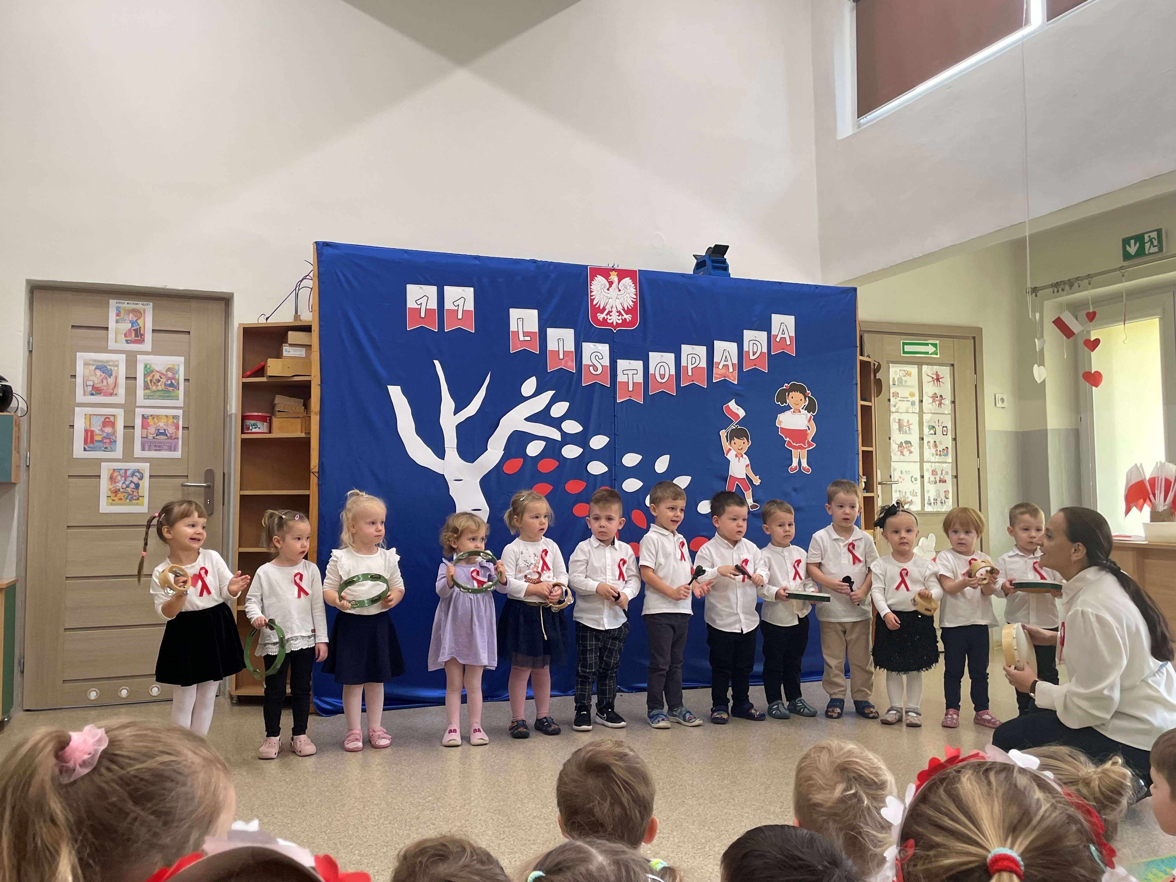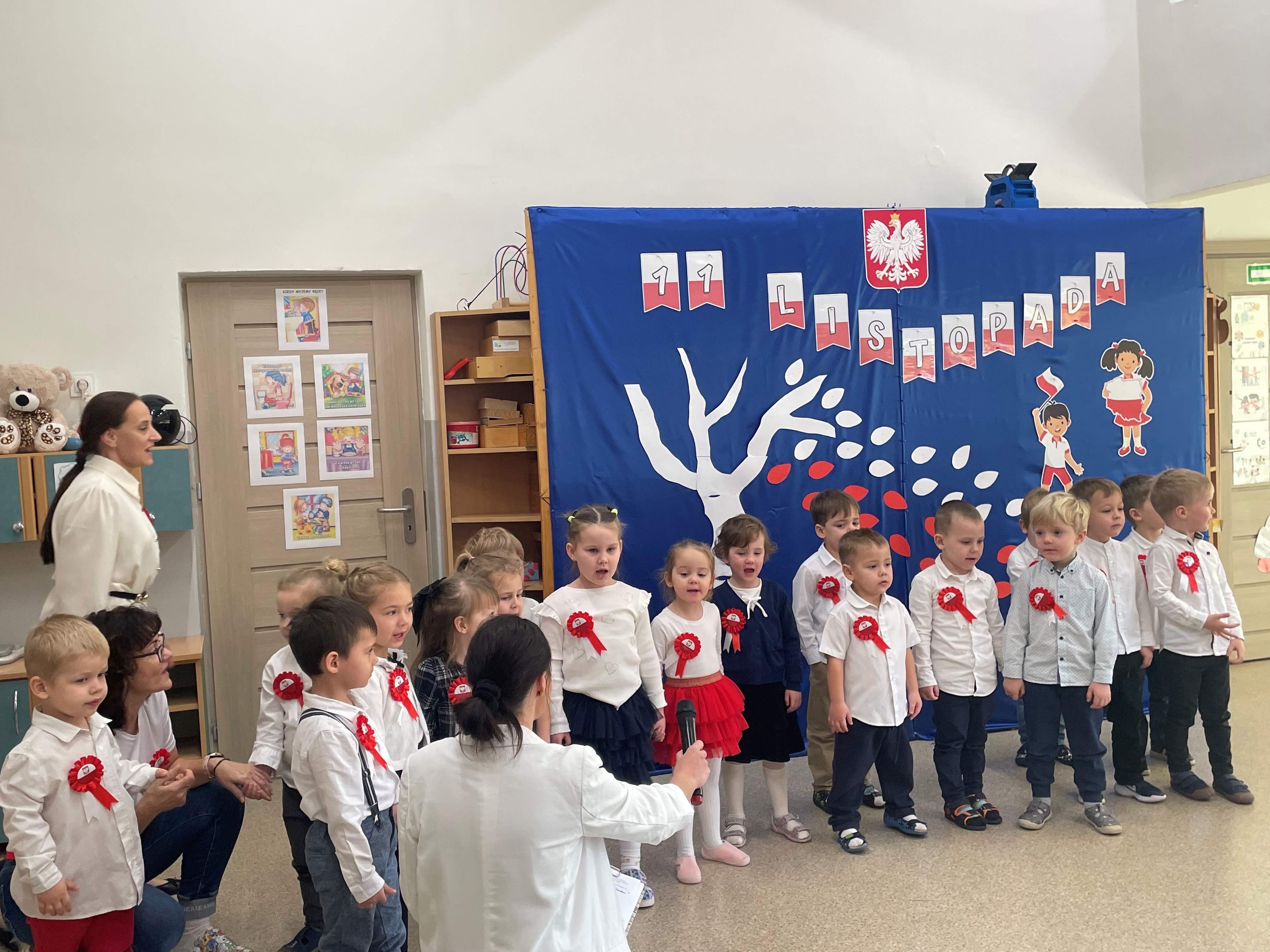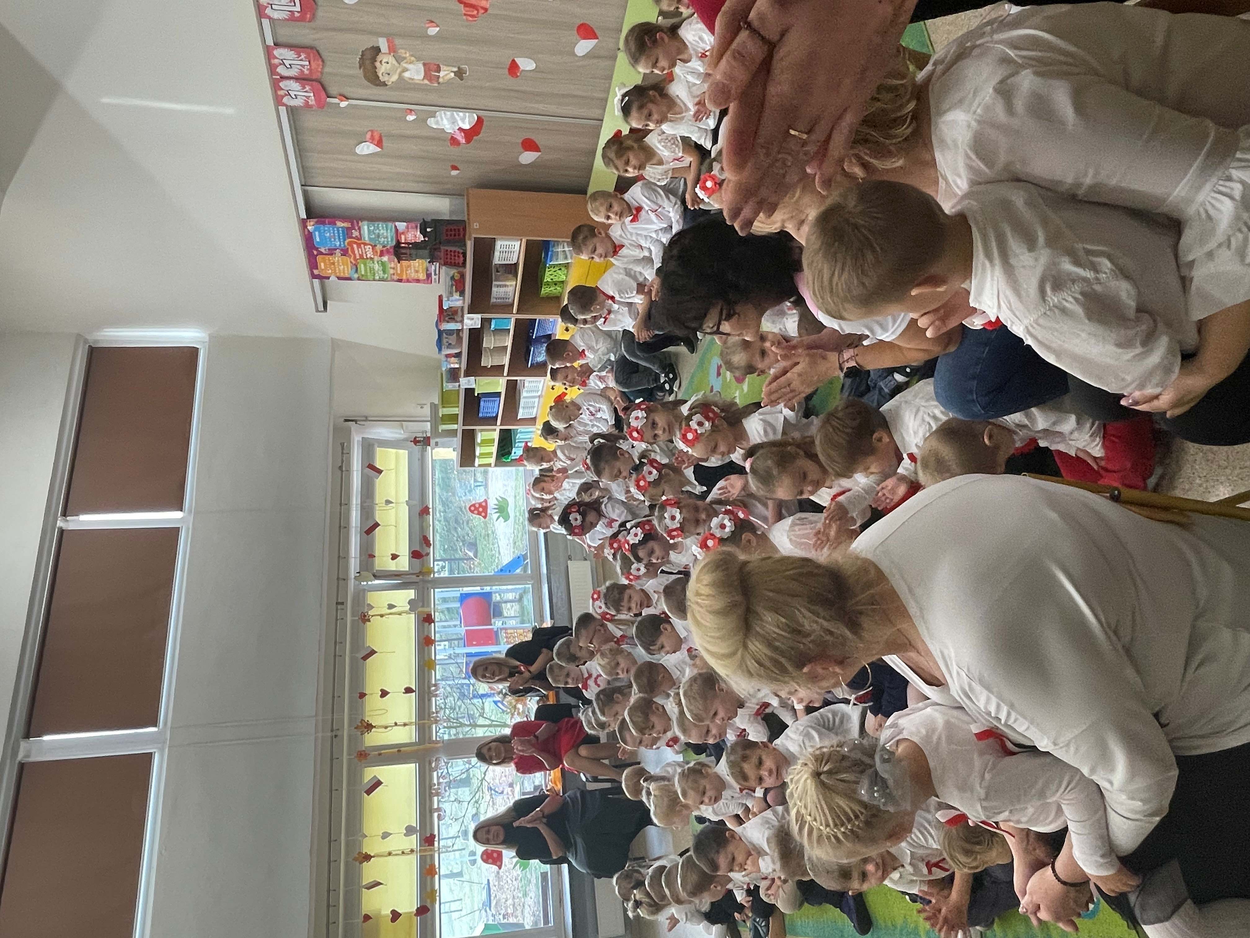 Przedszkolaki były odświętnie ubrane – wielu z nich miało biało-czerwone kotyliony i inne patriotyczne ozdoby. Cała społeczność przedszkola, razem z nauczycielami i pracownikami, wspólnie odśpiewała hymn narodowy – „Mazurek Dąbrowskiego”.