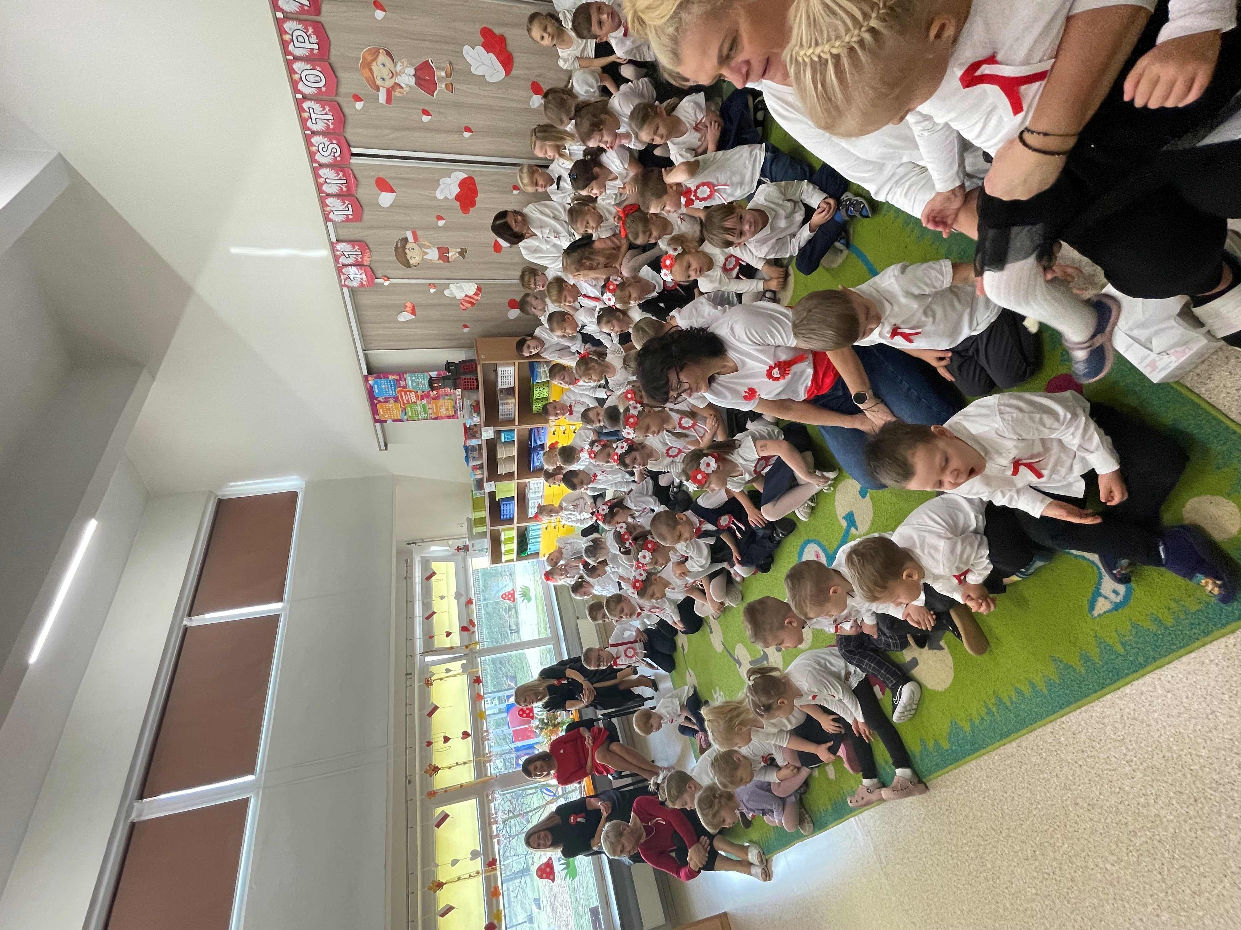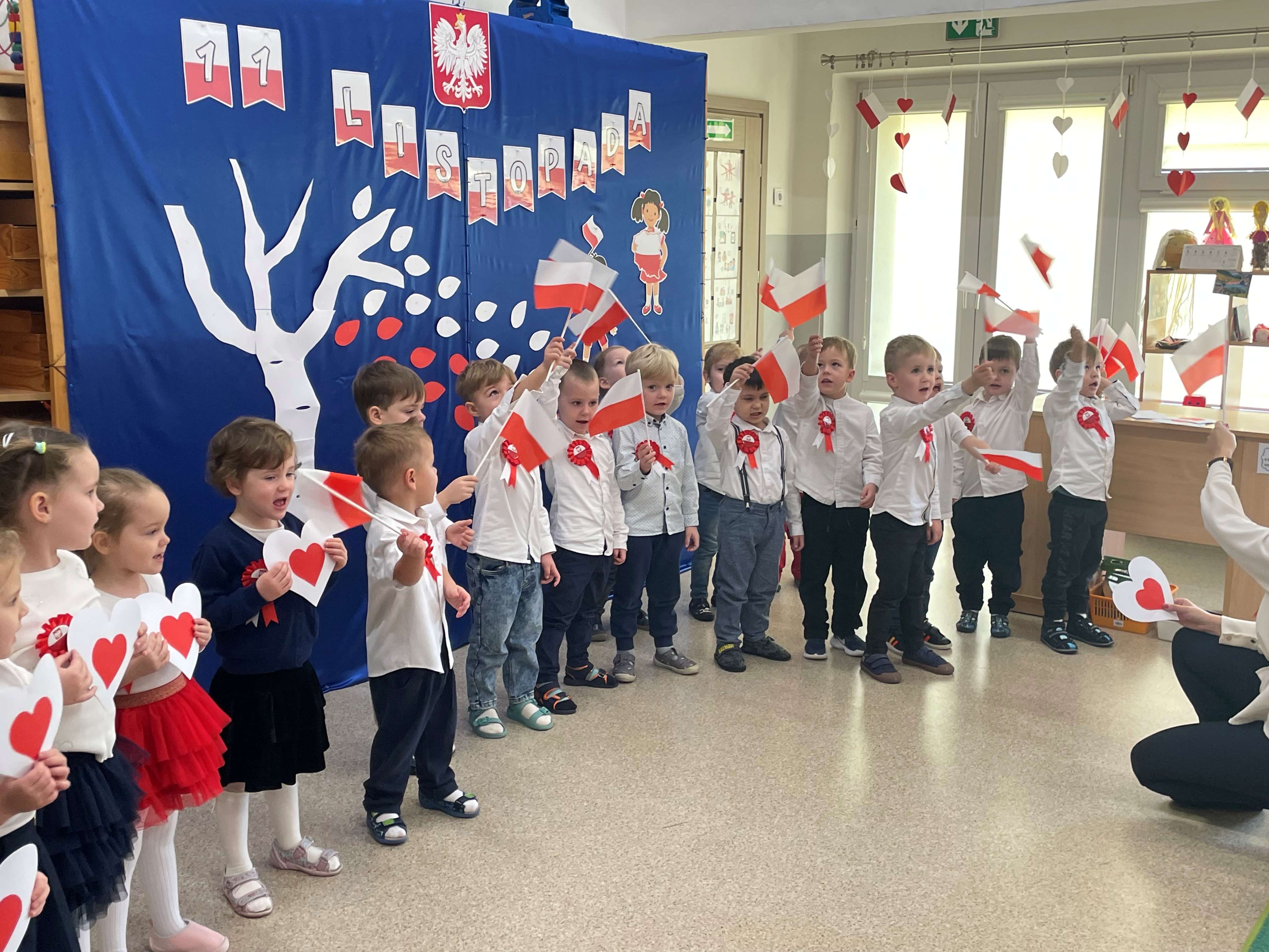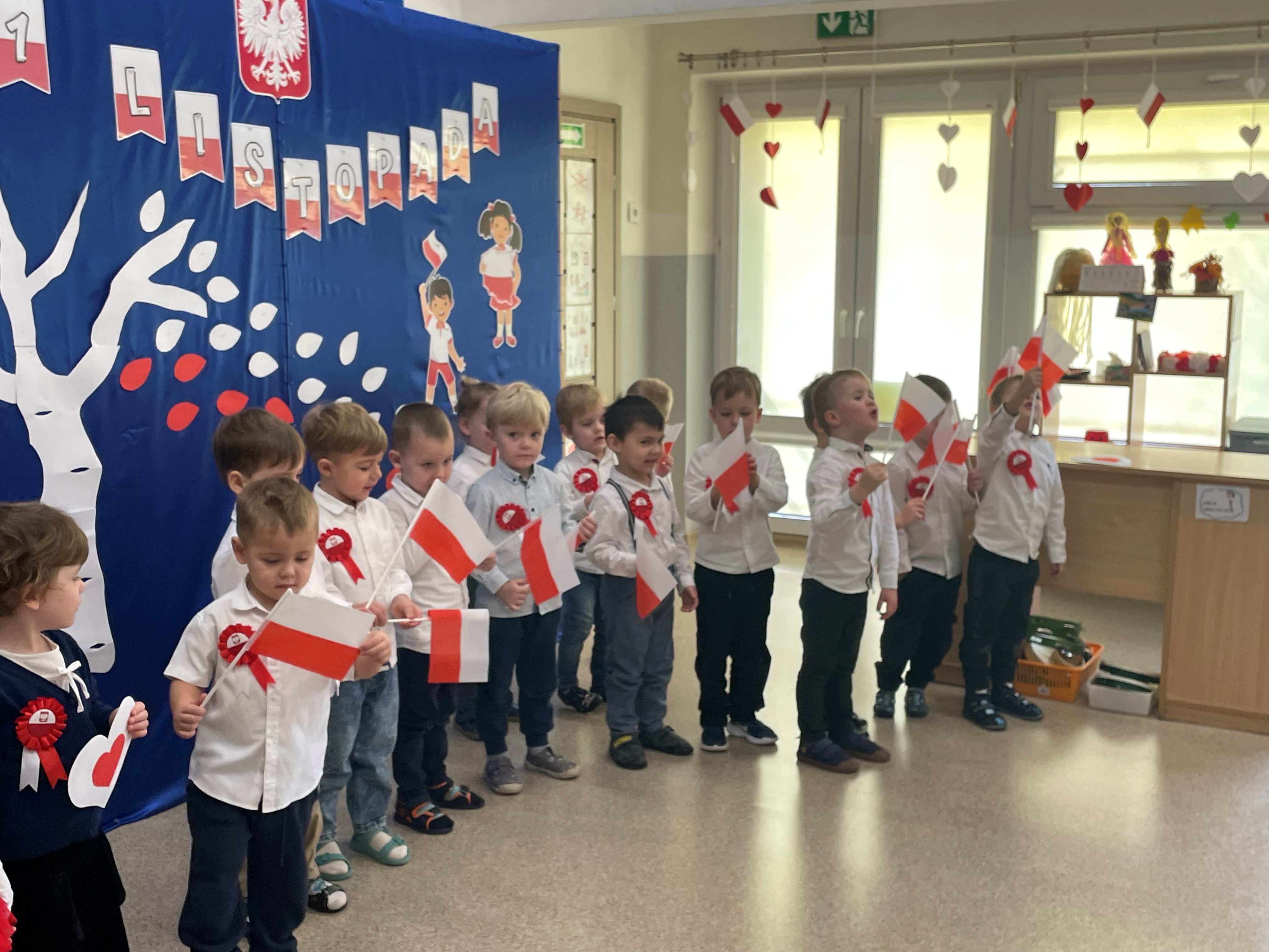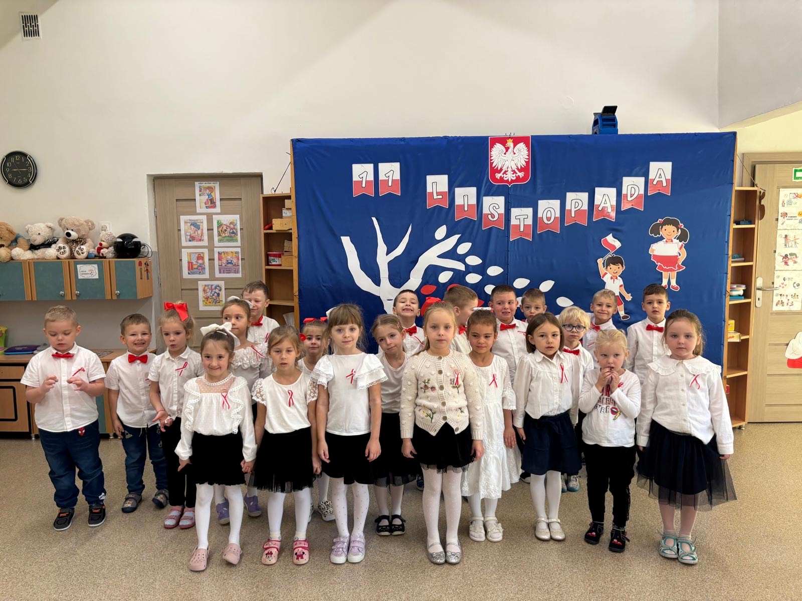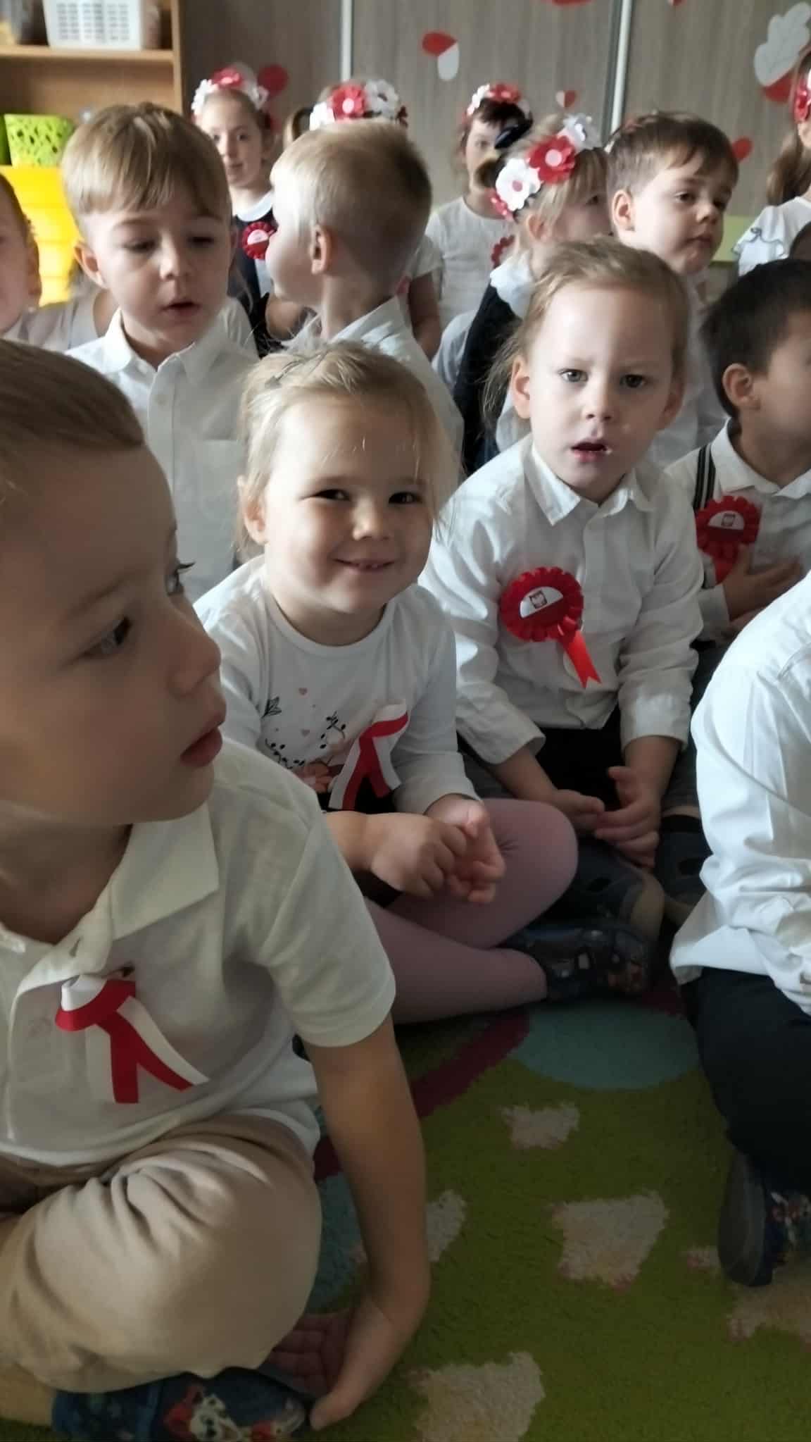 Przedszkolaki były odświętnie ubrane – wielu z nich miało biało-czerwone kotyliony i inne patriotyczne ozdoby. Cała społeczność przedszkola, razem z nauczycielami i pracownikami, wspólnie odśpiewała hymn narodowy – „Mazurek Dąbrowskiego”.