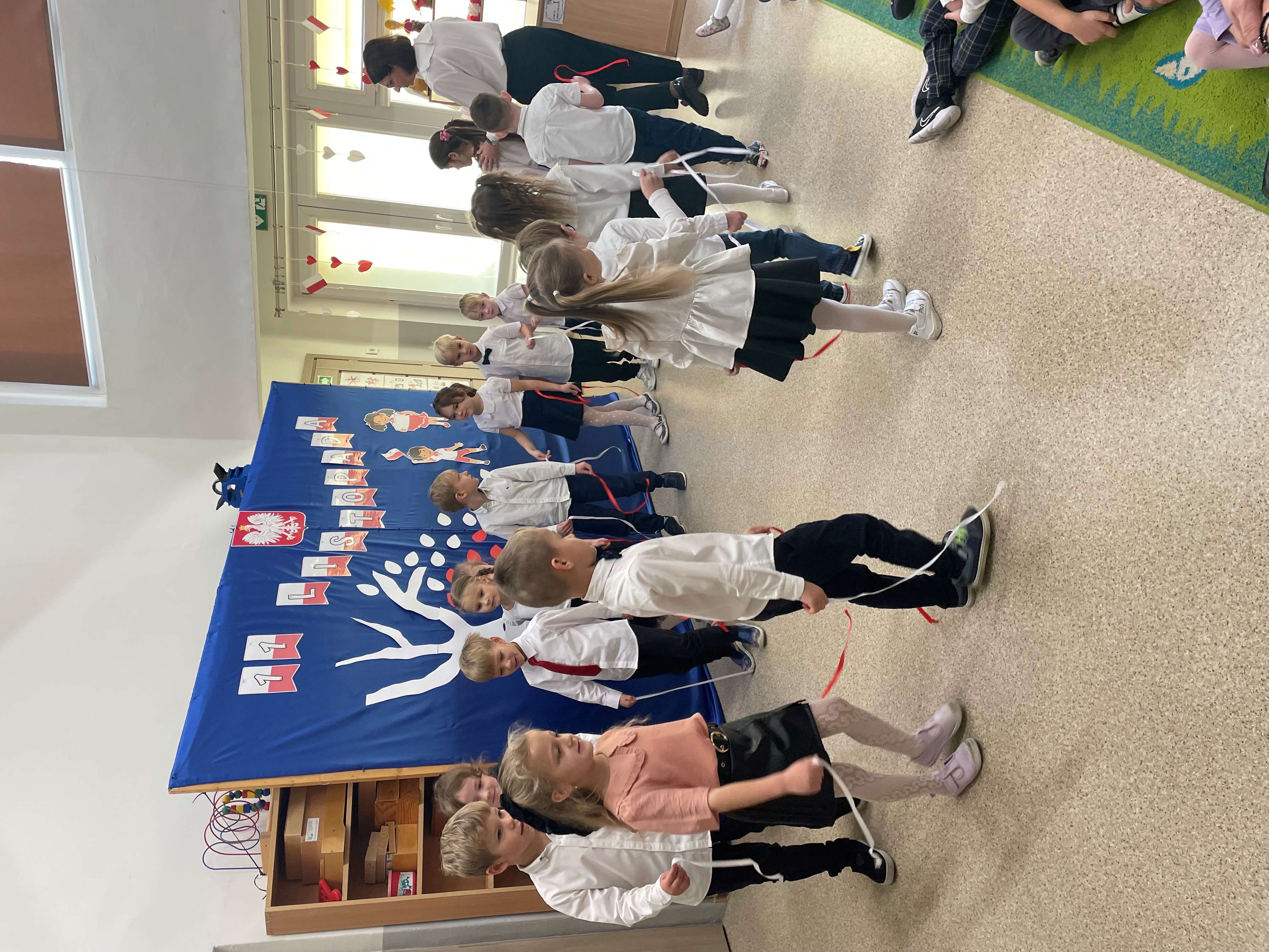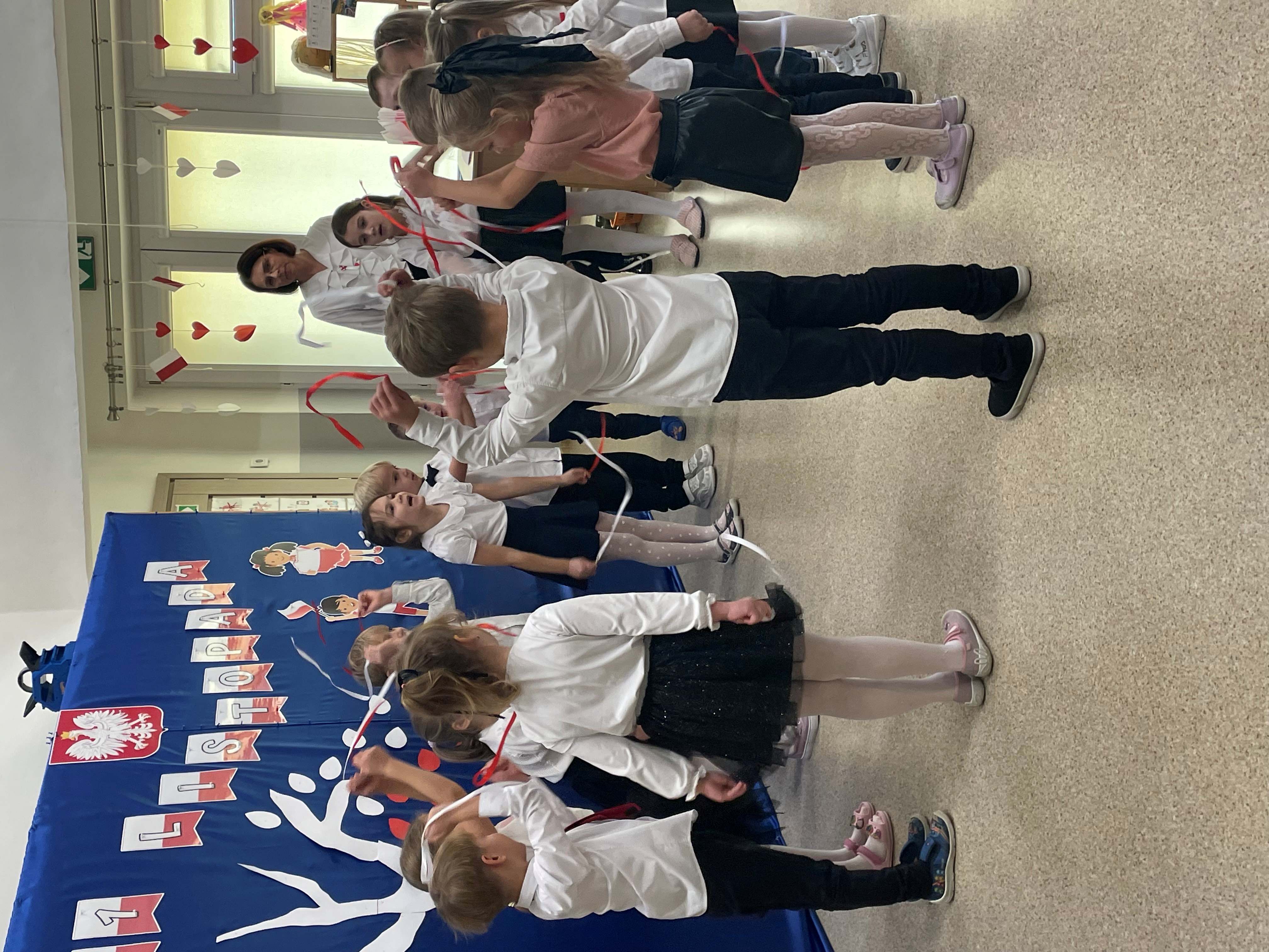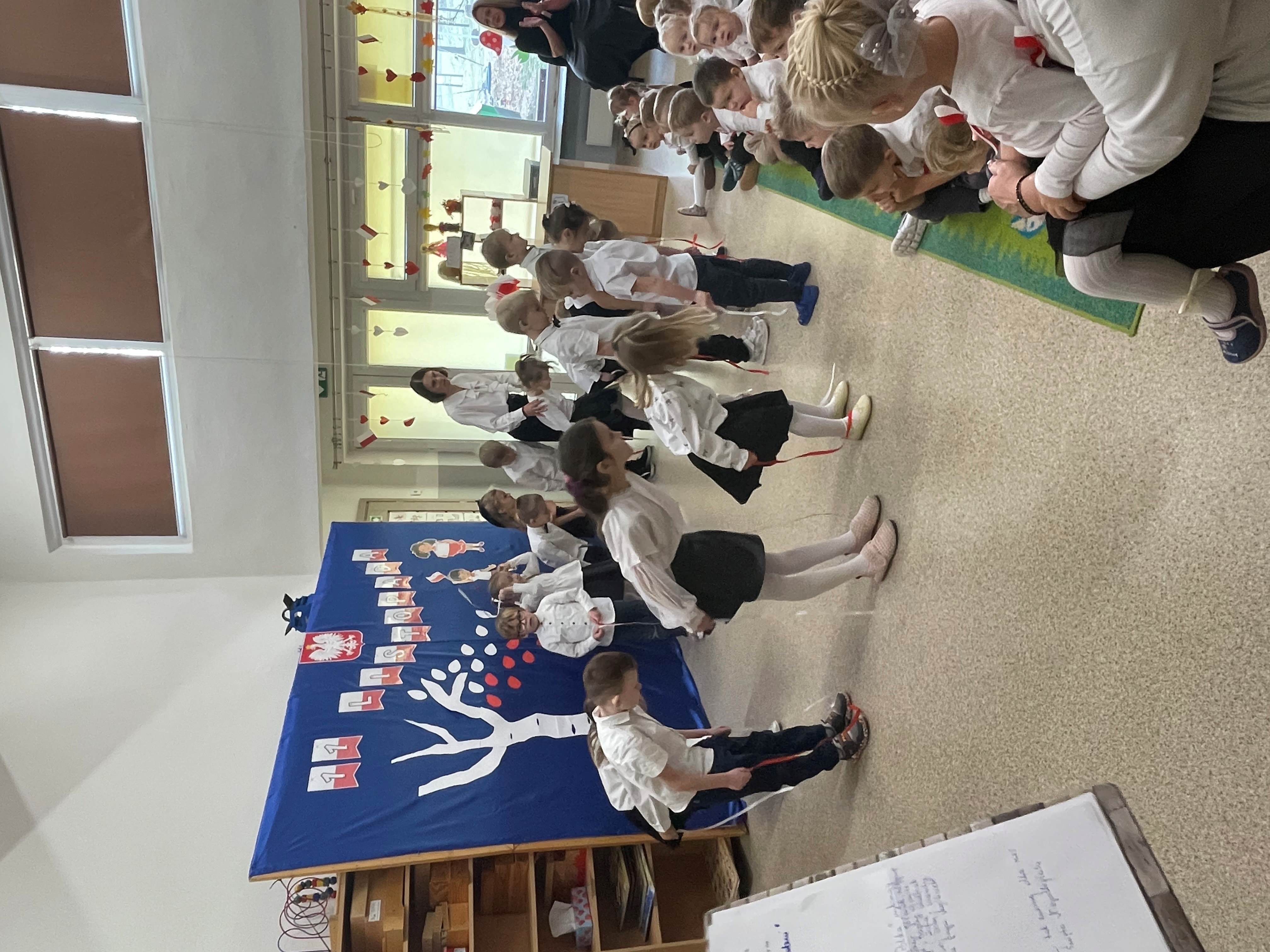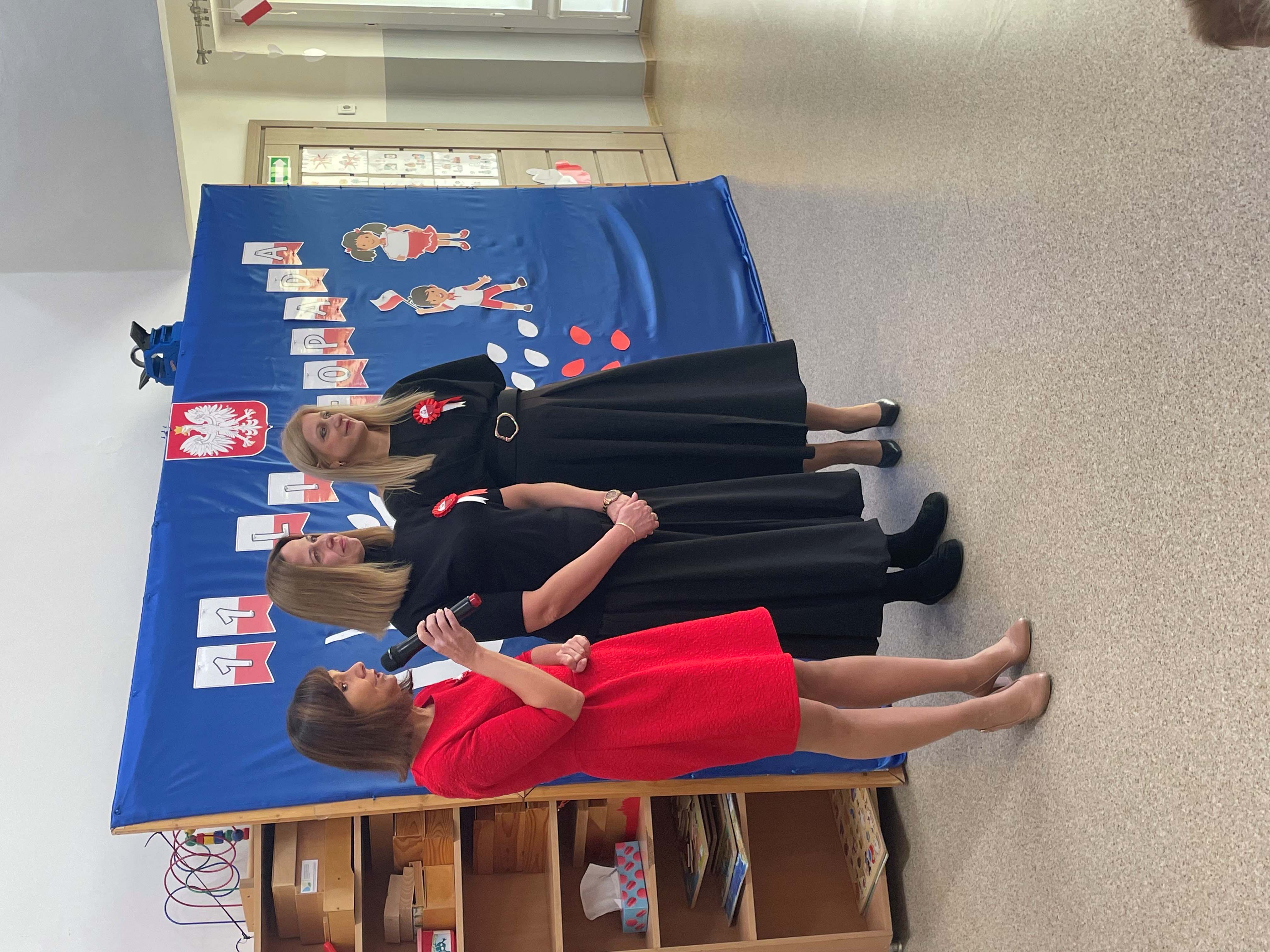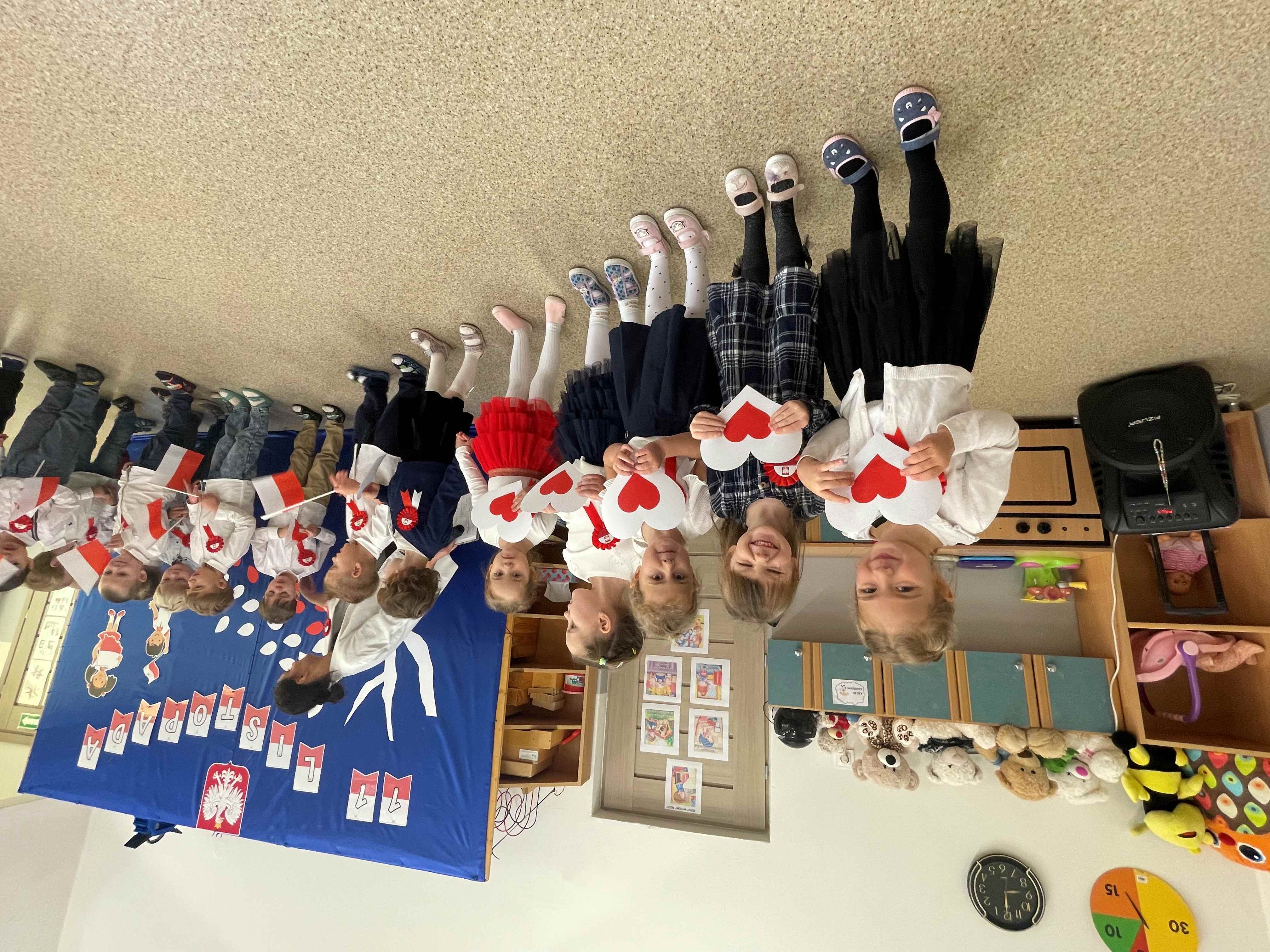 Przedszkolaki były odświętnie ubrane – wielu z nich miało biało-czerwone kotyliony i inne patriotyczne ozdoby. Cała społeczność przedszkola, razem z nauczycielami i pracownikami, wspólnie odśpiewała hymn narodowy – „Mazurek Dąbrowskiego”.
