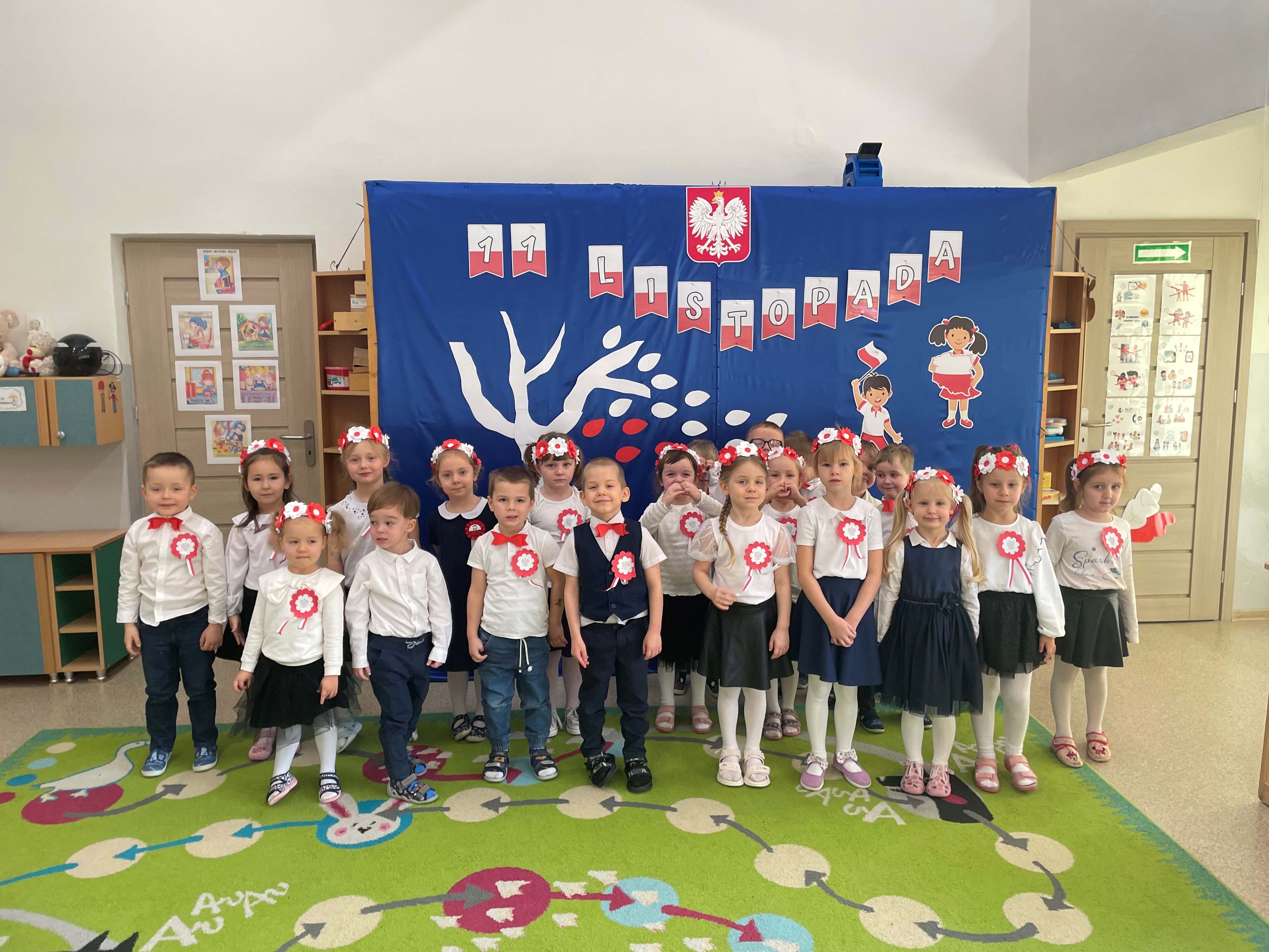 Dziś w naszym przedszkolu odbyły się uroczyste obchody Święta Niepodległości. Dzieci ze wszystkich grup wystąpiły w pięknym, patriotycznym programie artystycznym, prezentując wiersze, piosenki i tańce.