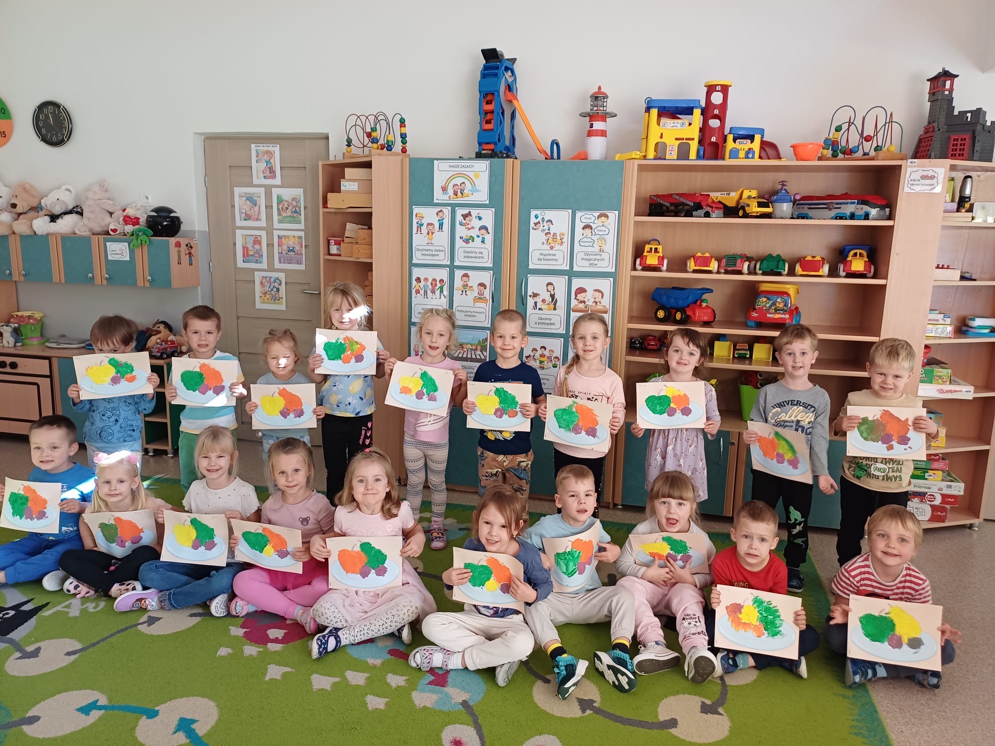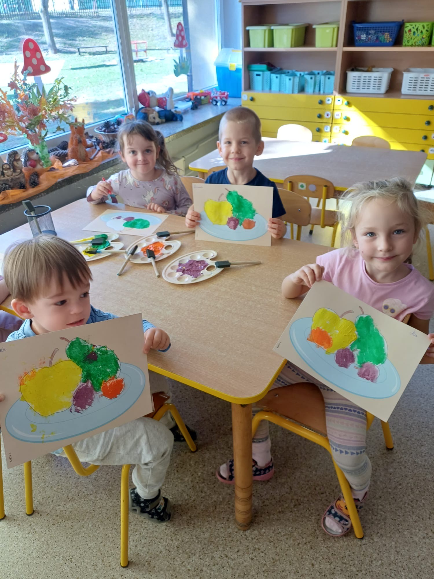 Na zakończenie cyklu zajęć dzieci wykonały pracę plastyczną z wykorzystaniem farb, inspirowaną tematyką owocową. W ten sposób rozwijały swoją kreatywność, sprawność manualną oraz utrwalały wiedzę o znaczeniu owoców w codziennej diecie.