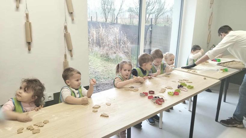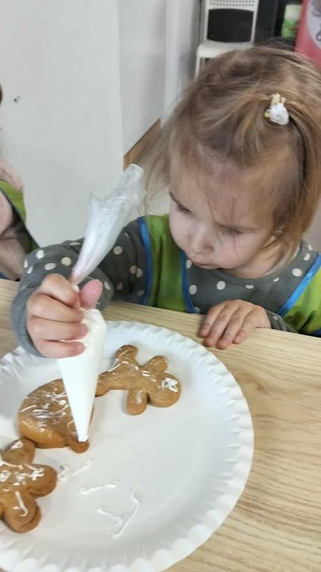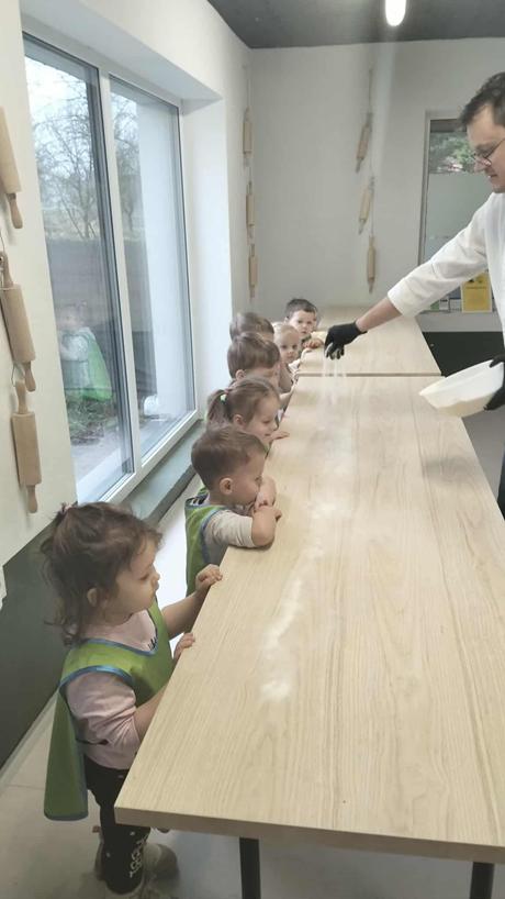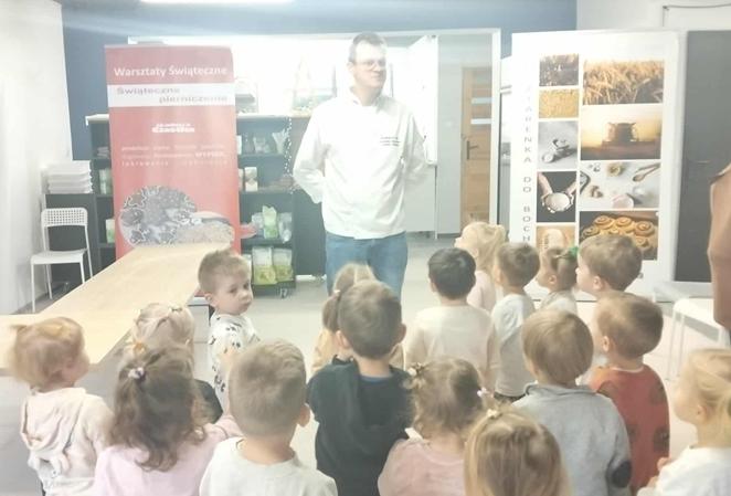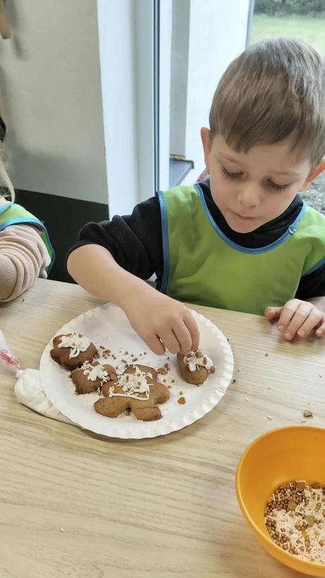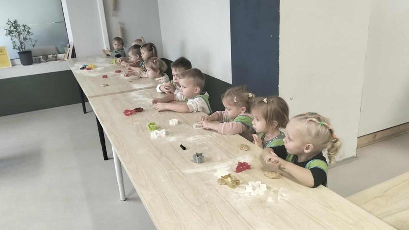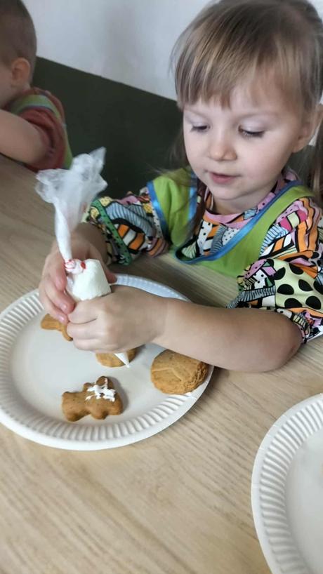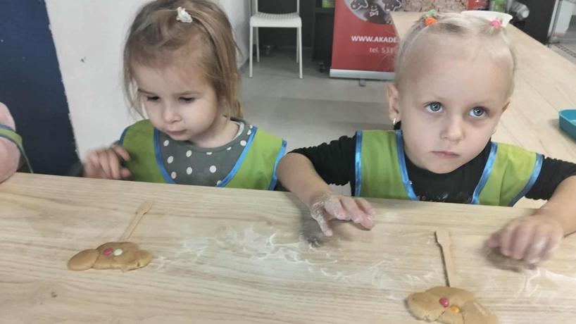 W dniu 4 grudnia dzieci z najmłodszej grupy wybrały się, na swoją pierwszą przedszkolną wycieczkę, do Akademii Ciastka w Twardej. Pod okiem specjalistów dzieci zapoznały się z poszczególnymi etapami powstawania ciasteczek. Po części teoretycznej dzieci mogły wykorzystać w praktyce swoja wiedzę i umiejętności. Każdy przedszkolak samodzielnie zrobił pierniczki, które po wypieczeniu zostało ozdobione według własnych pomysłów dzieci przy użyciu posypek i lukru. Po skończonej pracy dzieci degustowały pyszną pizzę, która wszystkim bardzo smakowała. Zabawa była wspaniała.