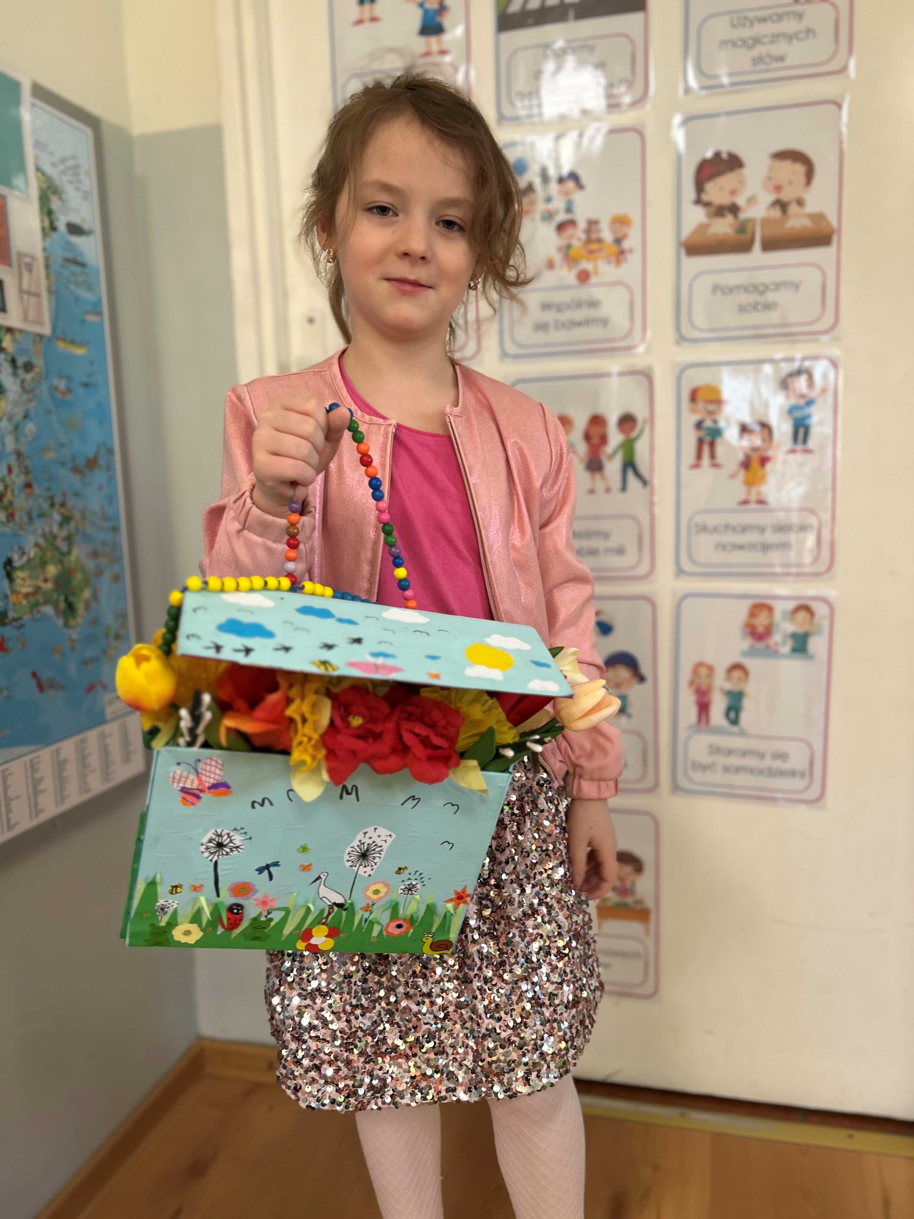 „Torebka Pani Wiosny” została wykonana przez 6-letnią Ingę z dużą starannością i wyobraźnią. Praca konkursowa została wykonana z różnych materiałów plastycznych. Do jej stworzenia użyto kolorowego papieru, bibuły oraz kartonu. Ozdoby powstały z wyciętych kwiatków, listków i motylków, a całość została dodatkowo udekorowana pięknymi przestrzennymi kwiatami. Torebka zachwyca urokiem, a jednocześnie pokazuje kreatywność
