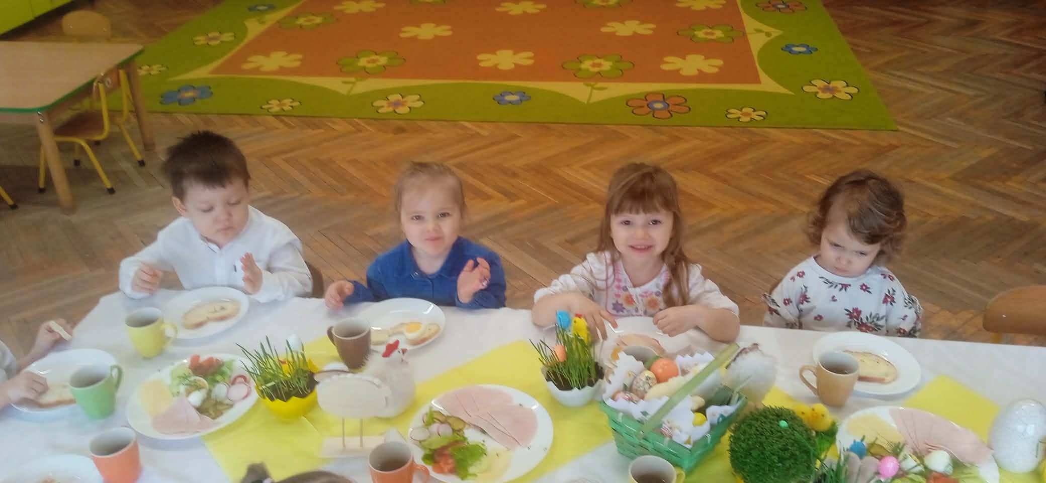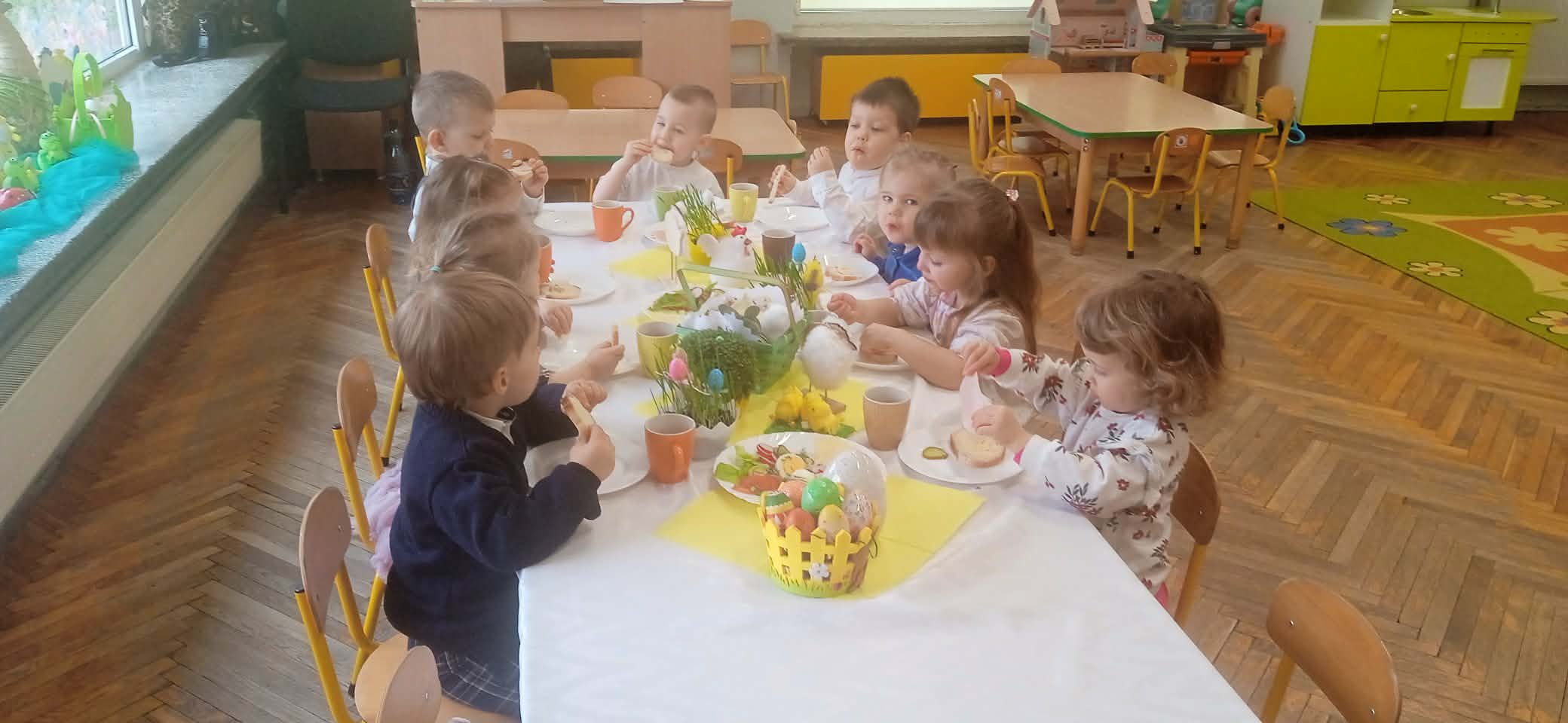 W naszym przedszkolu odbyło się uroczyste Śniadanie Wielkanocne, które wprowadziło wszystkich w radosny, świąteczny nastrój. Dzieci wraz z nauczycielami przygotowały piękne dekoracje, a stoły zostały udekorowane zgodnie z wielkanocną tradycją.