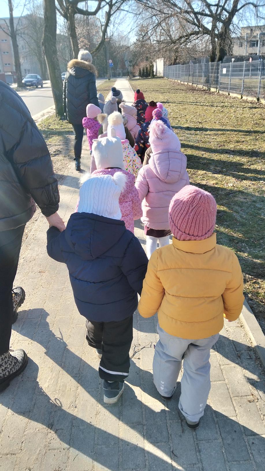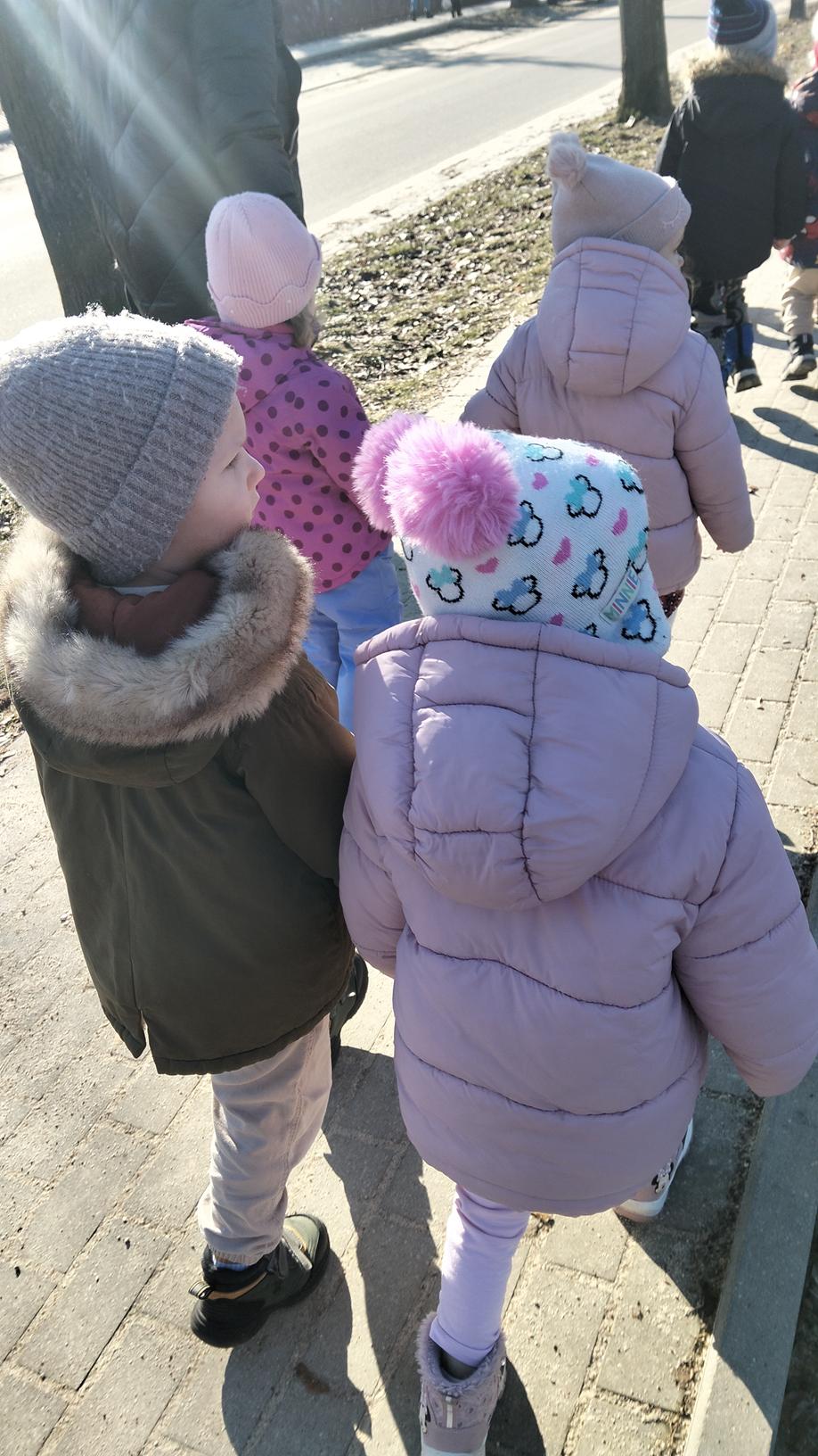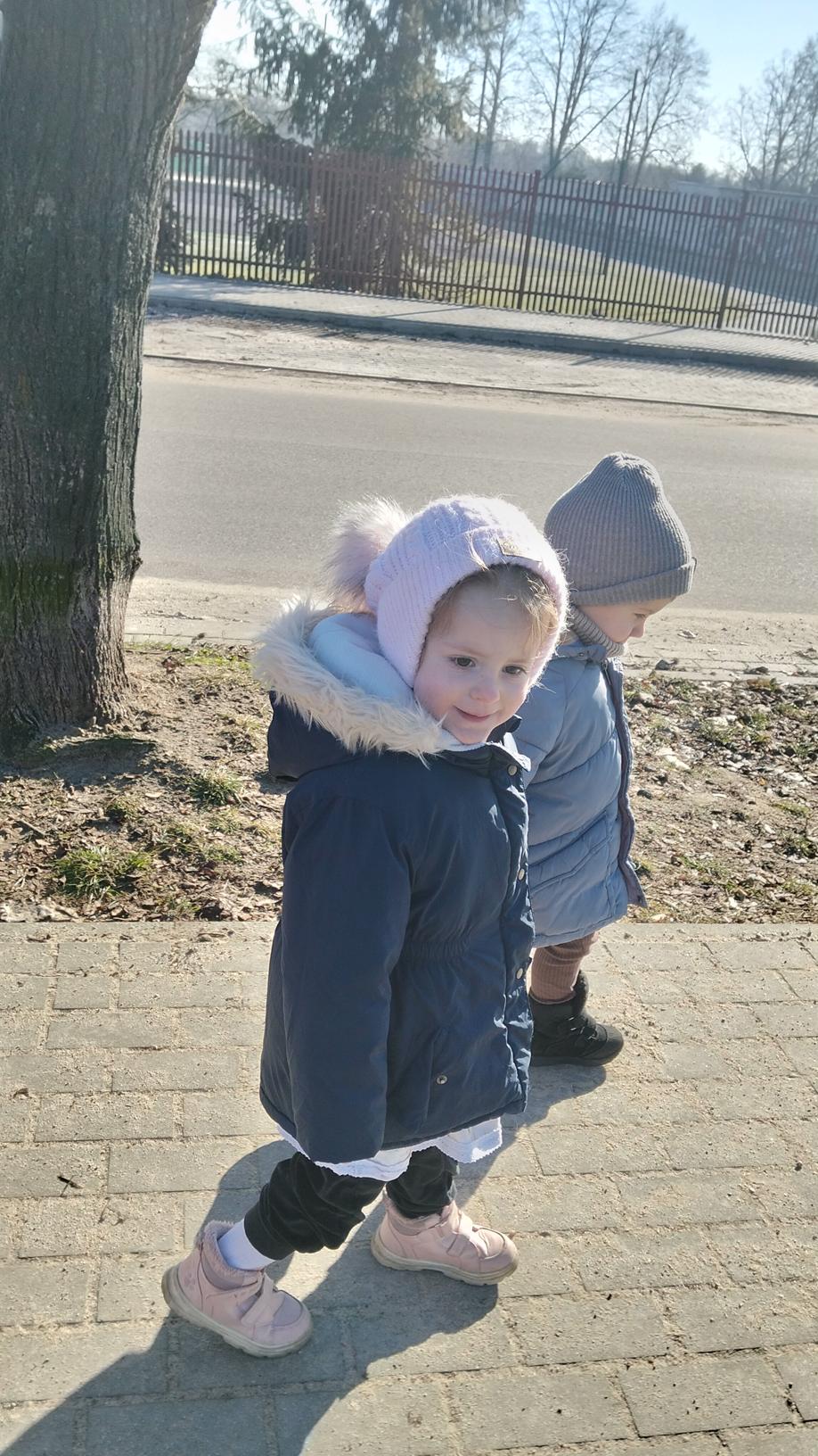 Maluszki wybrały się dzisiaj na spacer wokół przedszkola. Spacerowanie wspiera rozwój fizyczny, odporność i umiejętności poznawcze dzieci poprzez bezpośredni kontakt z otoczeniem. Wyjścia, nawet przy niesprzyjającej pogodzie, pozwalają dzieciom wyładować energię, poprawiają koncentrację, sen oraz budują relacje grupowe, a także uczą bezpiecznego poruszania się w ruchu drogowym.
