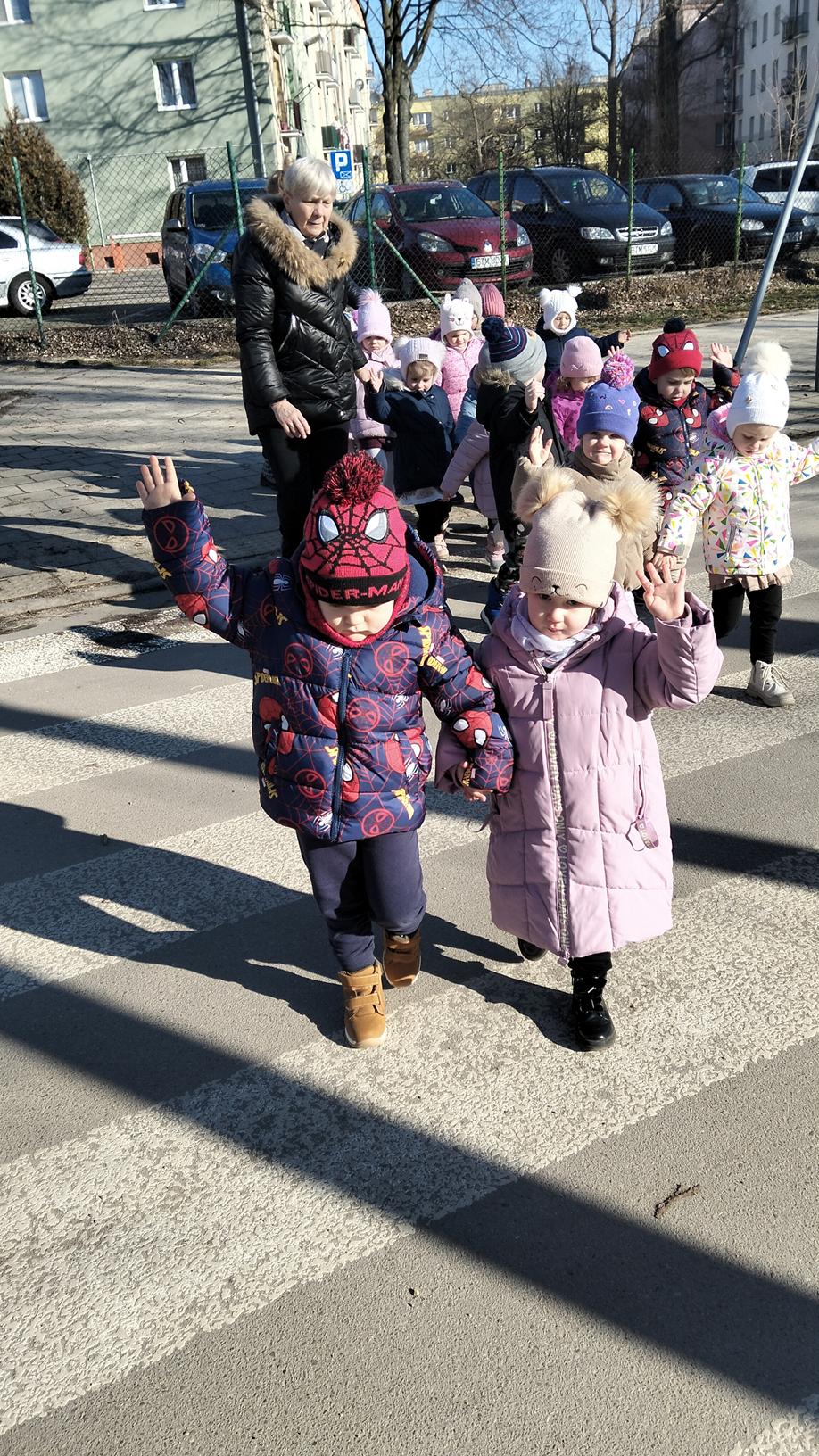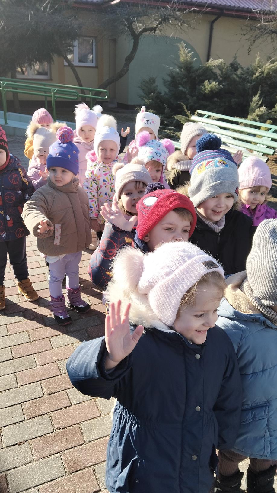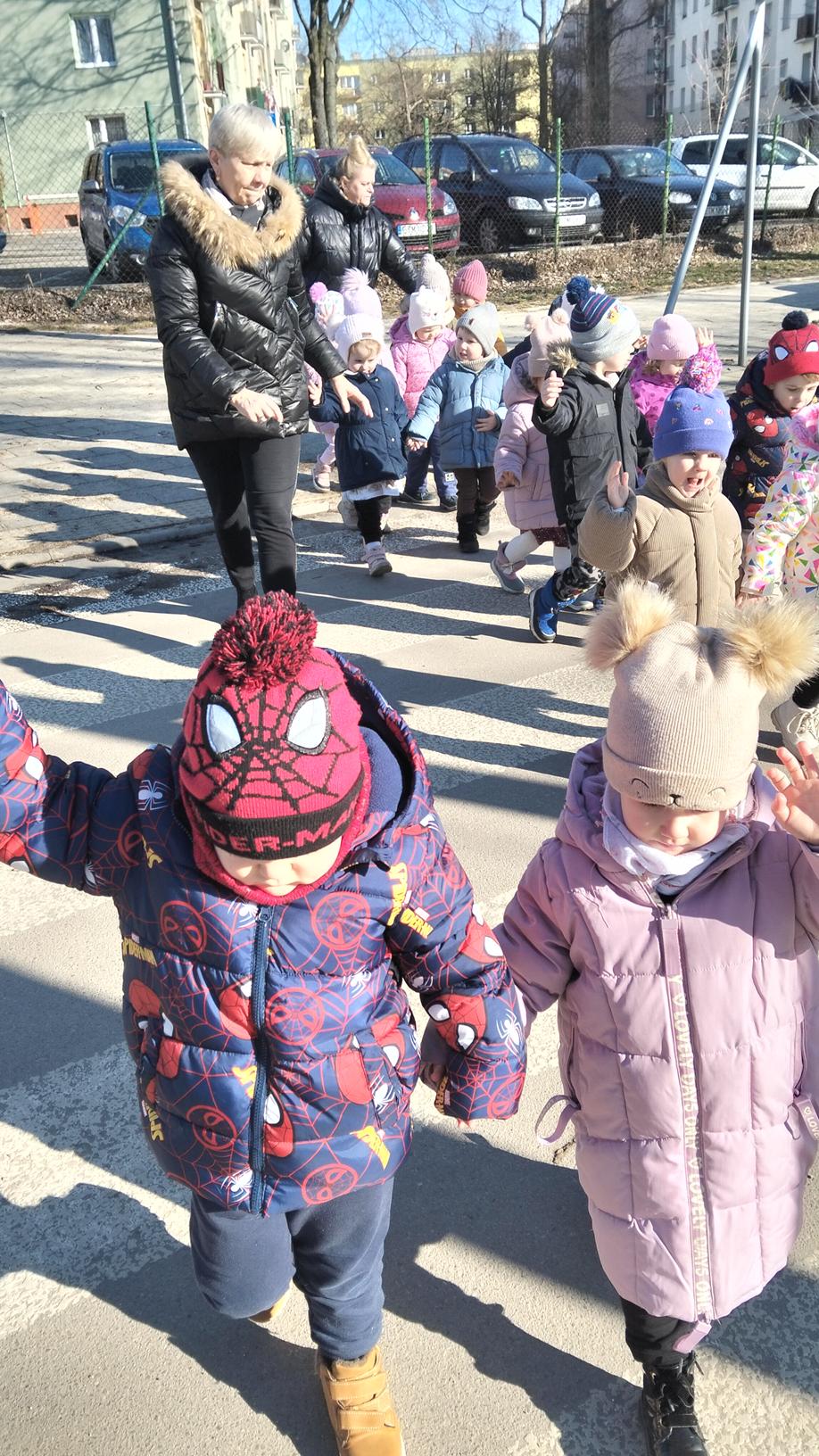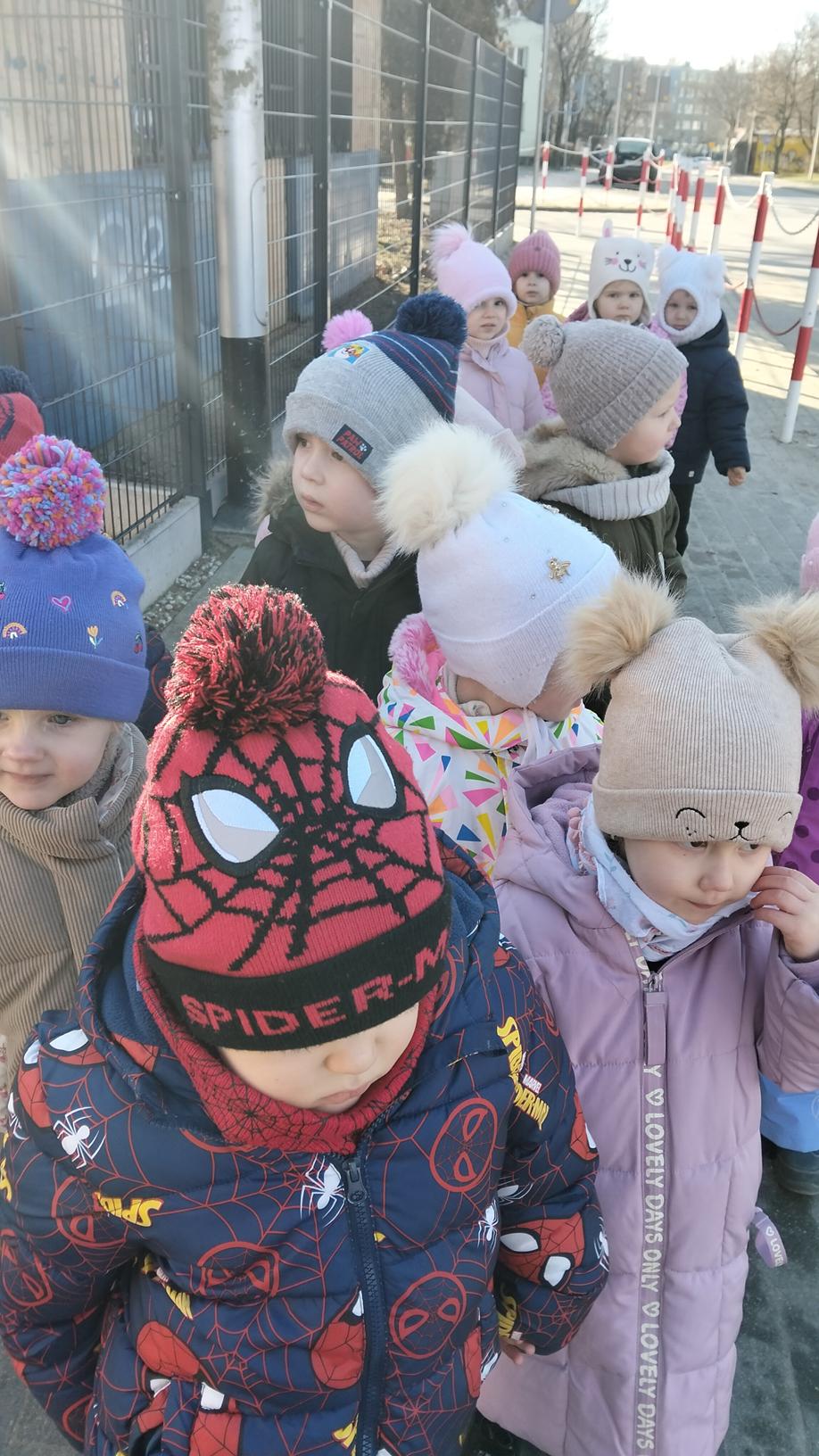 Maluszki wybrały się dzisiaj na spacer wokół przedszkola. Spacerowanie wspiera rozwój fizyczny, odporność i umiejętności poznawcze dzieci poprzez bezpośredni kontakt z otoczeniem. Wyjścia, nawet przy niesprzyjającej pogodzie, pozwalają dzieciom wyładować energię, poprawiają koncentrację, sen oraz budują relacje grupowe, a także uczą bezpiecznego poruszania się w ruchu drogowym.