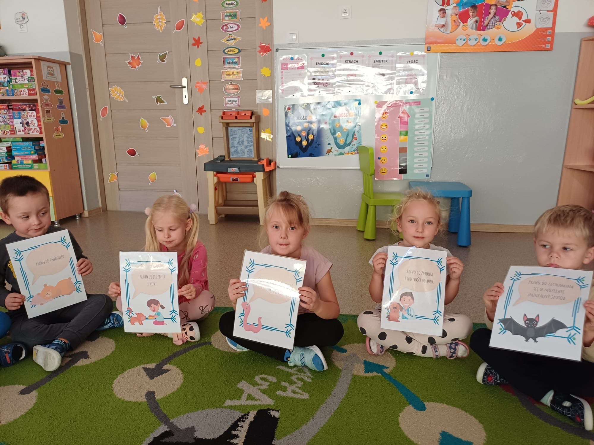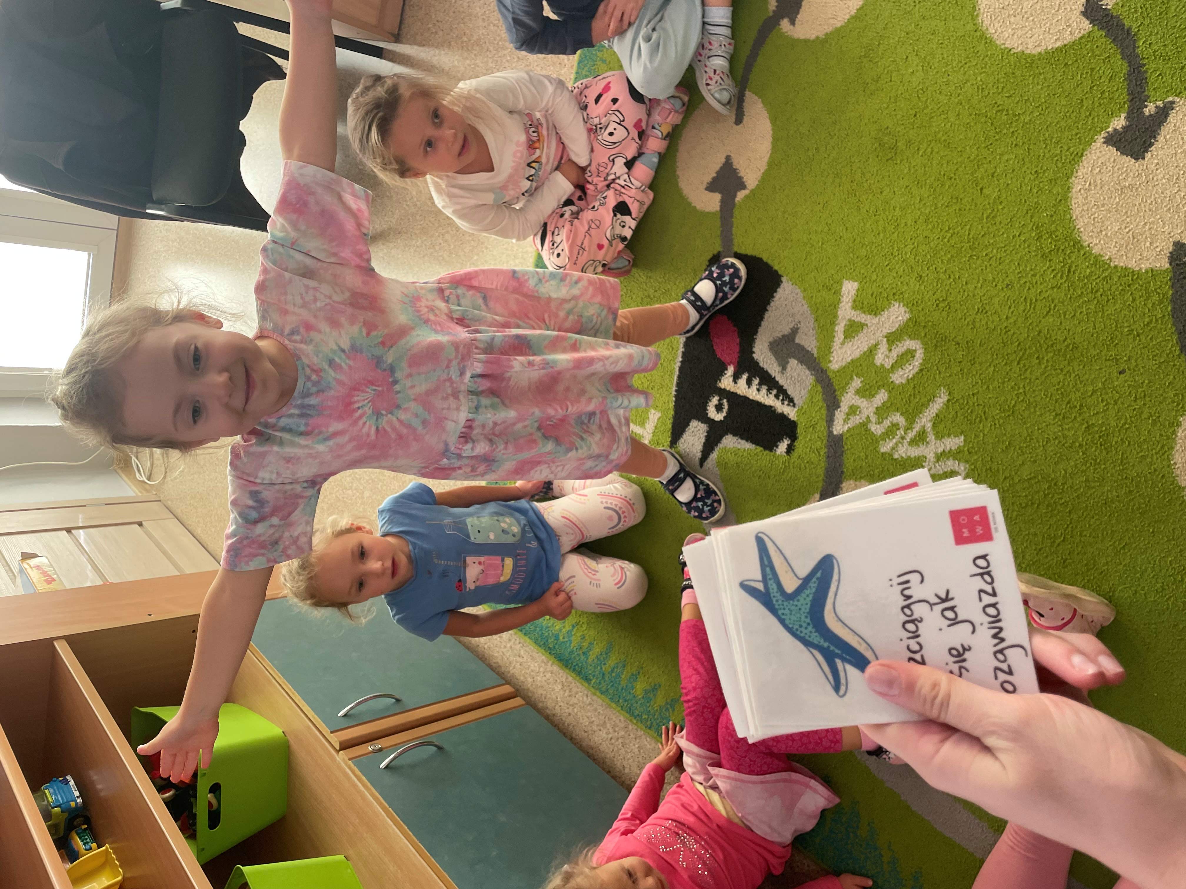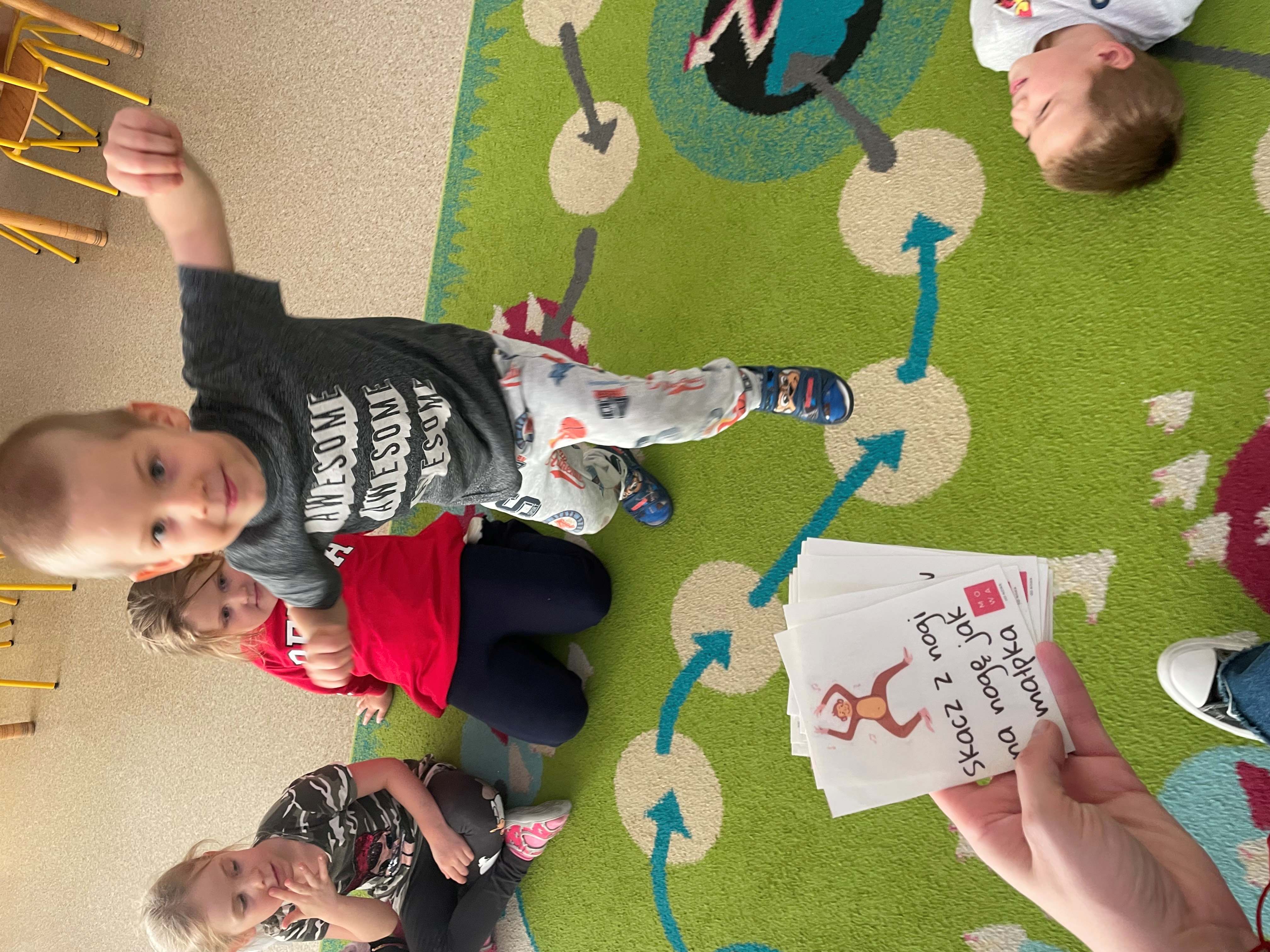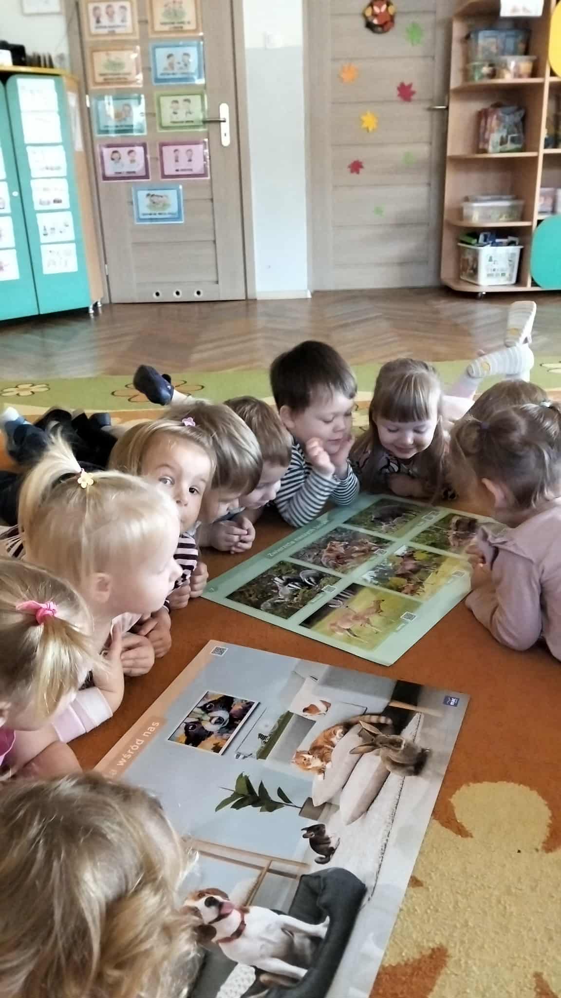 Nie zabrakło także zabaw ruchowych i zgadywanek, dzięki którym dzieci mogły poznać ciekawostki ze świata zwierząt. Przedszkolaki dowiedziały się również, jak mogą pomagać bezdomnym zwierzętom i dlaczego warto dbać o środowisko naturalne.