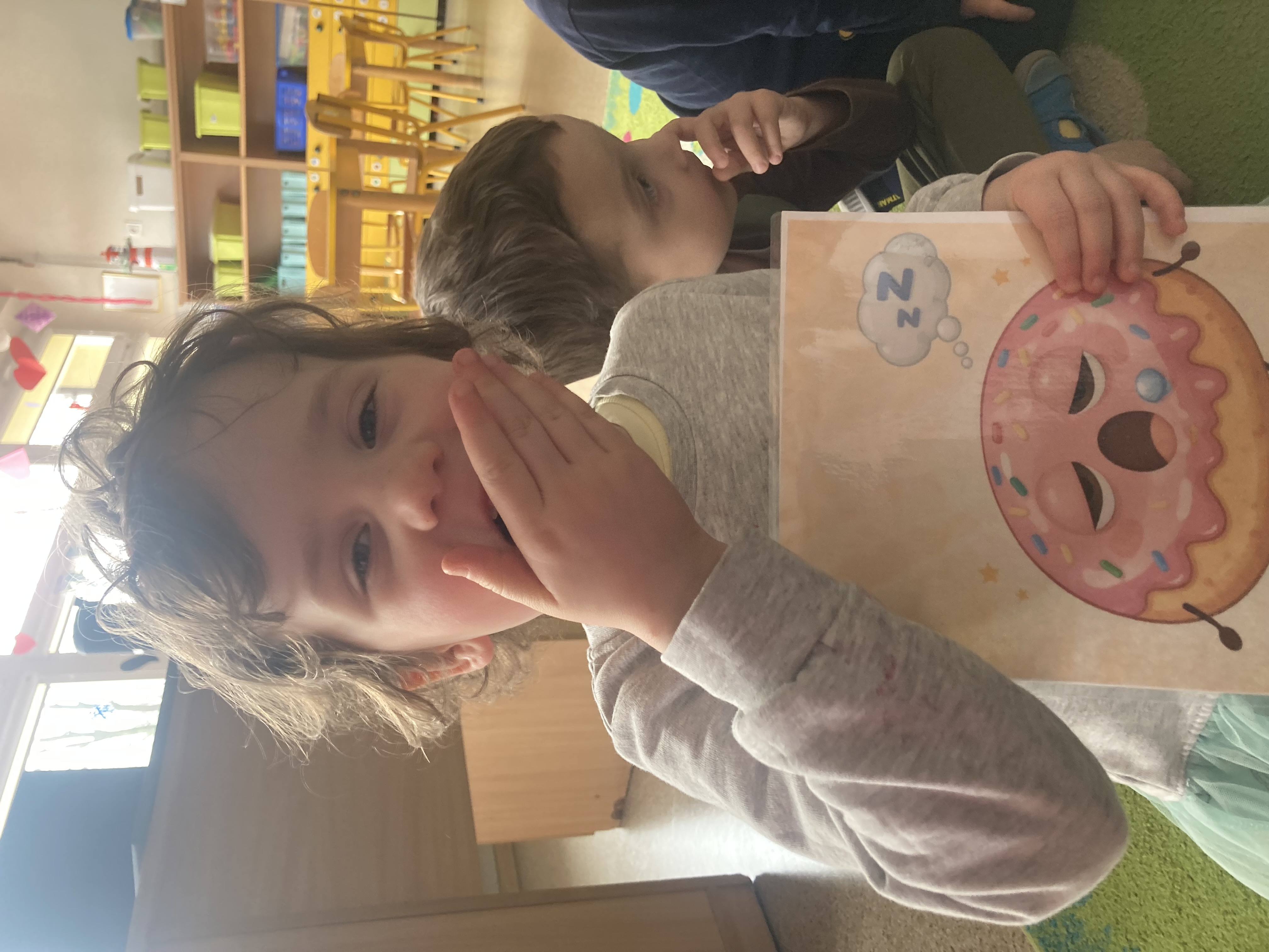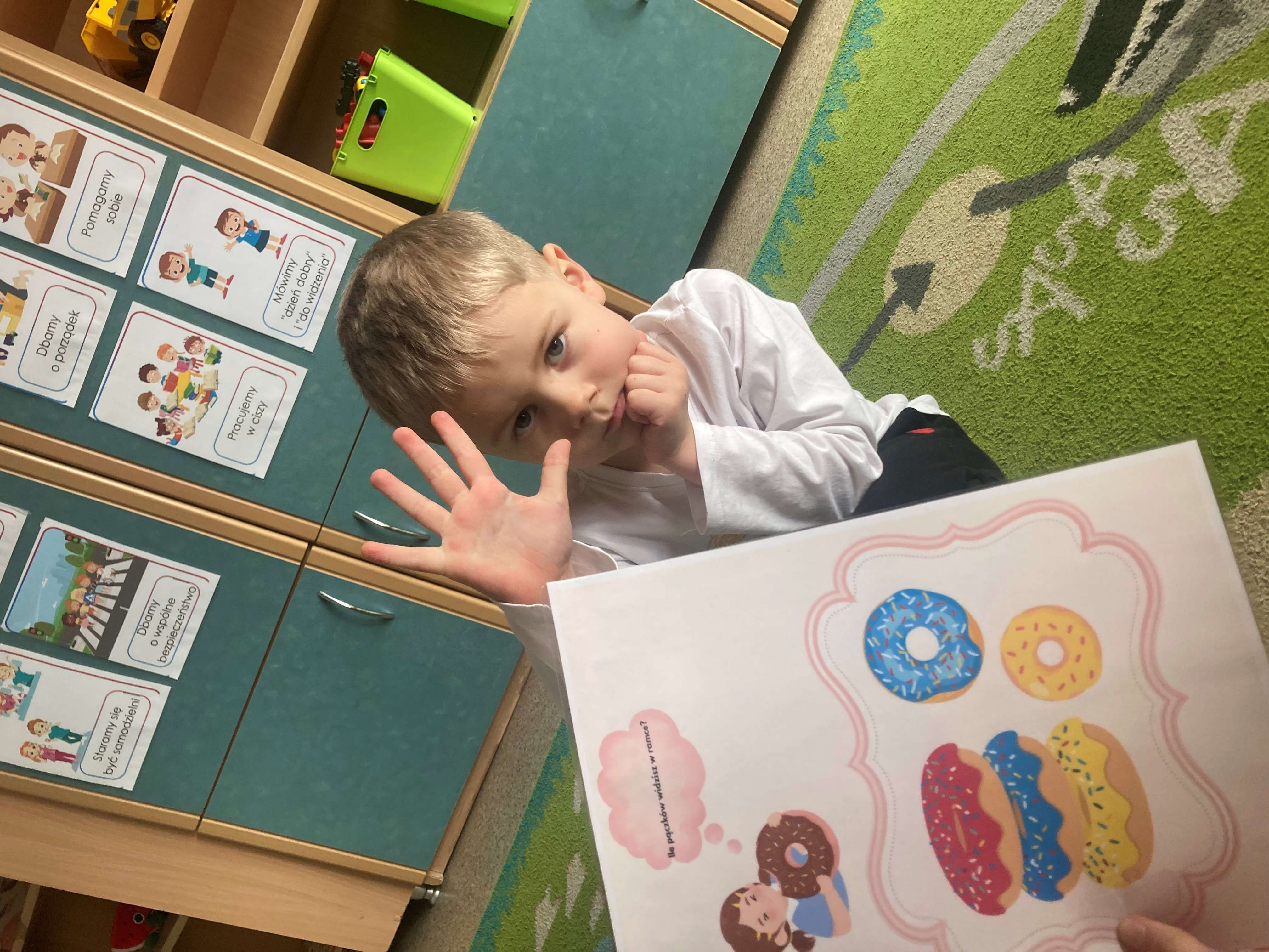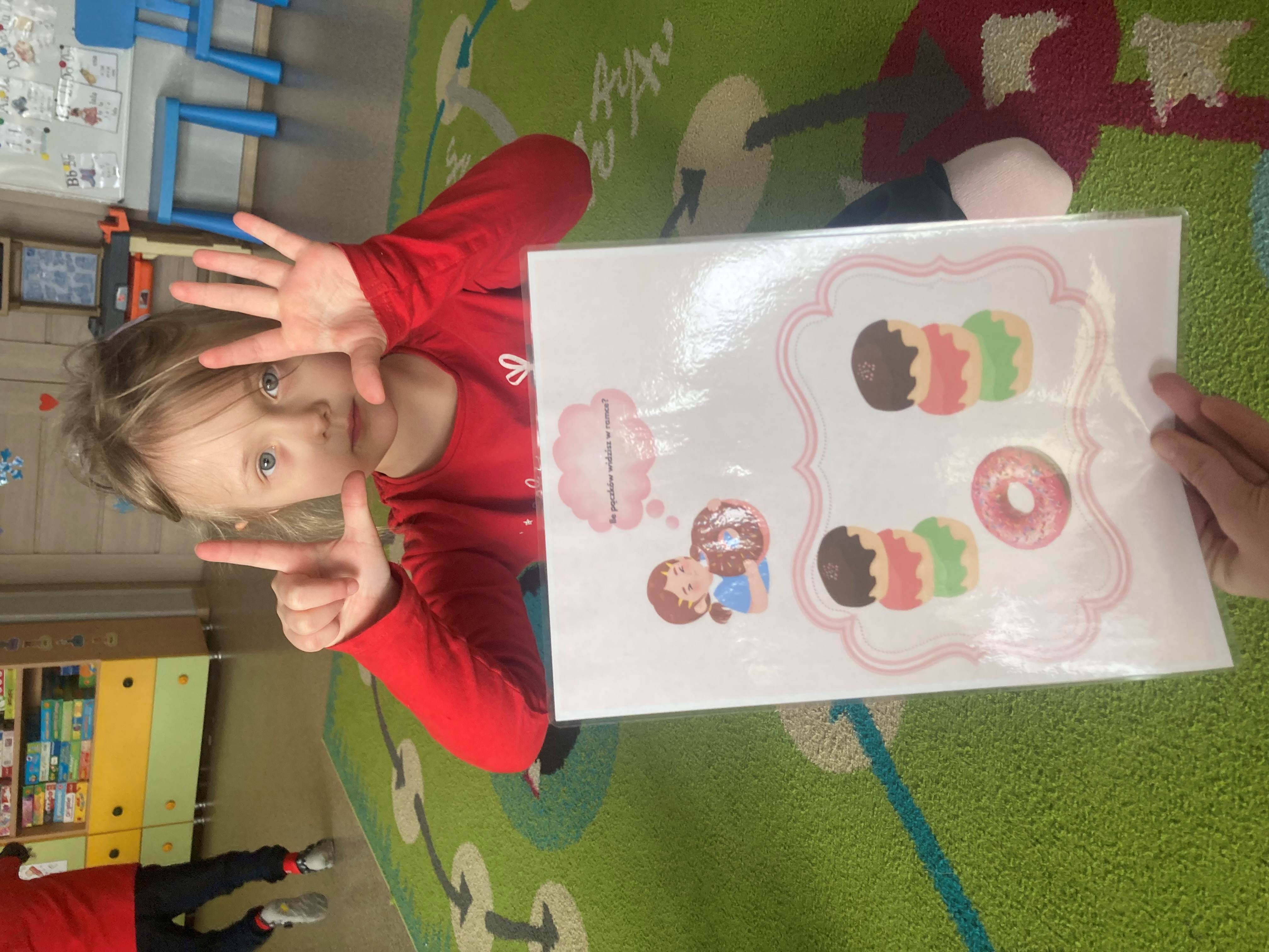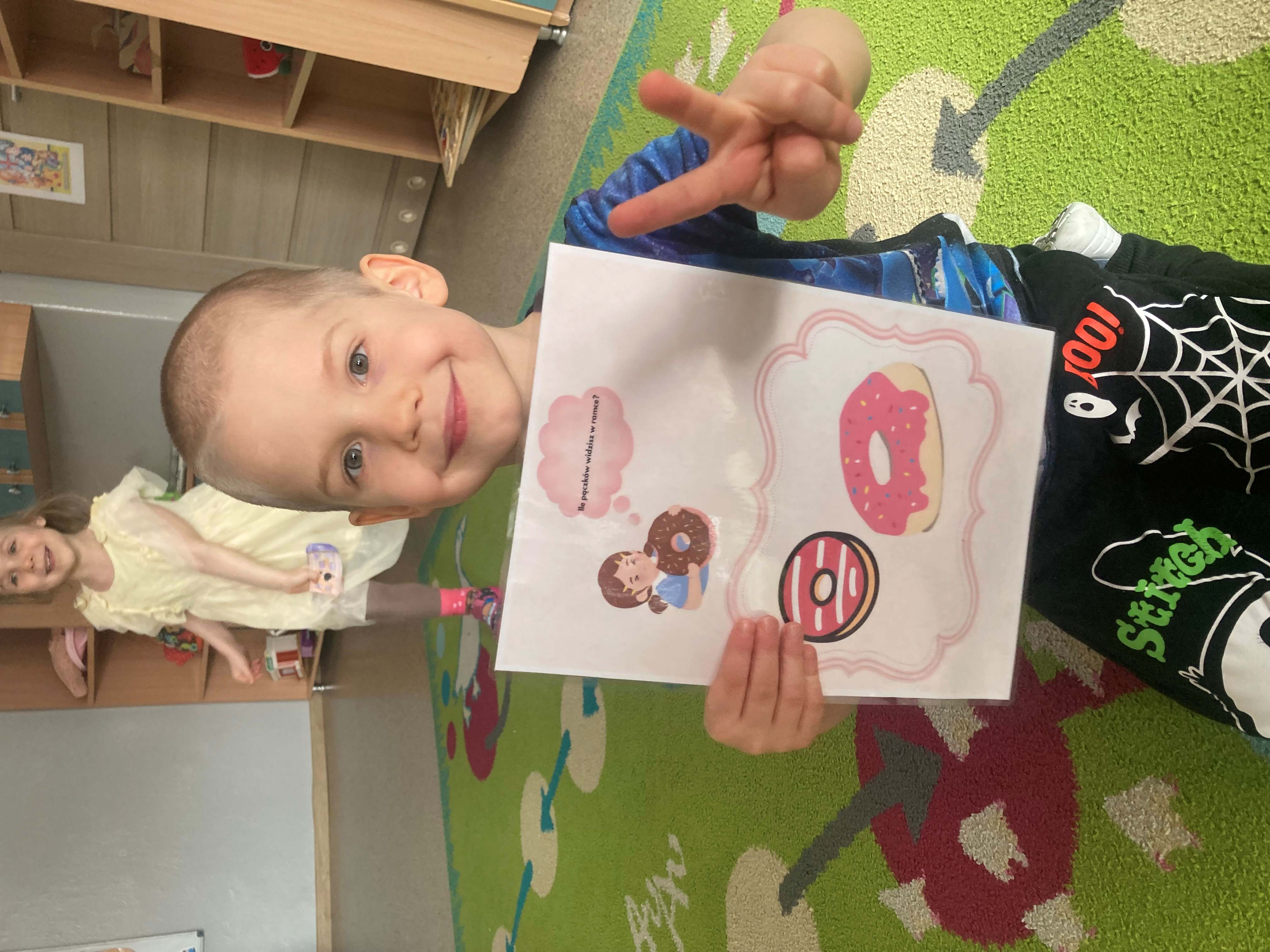 Podczas zajęć dzieci liczyły pączki, doskonaląc swoje umiejętności matematyczne. Rozmawialiśmy również o emocjach – przedszkolaki rozpoznawały i nazywały różne uczucia, które przedstawiał „pączek”, takie jak radość, smutek czy zaskoczenie.