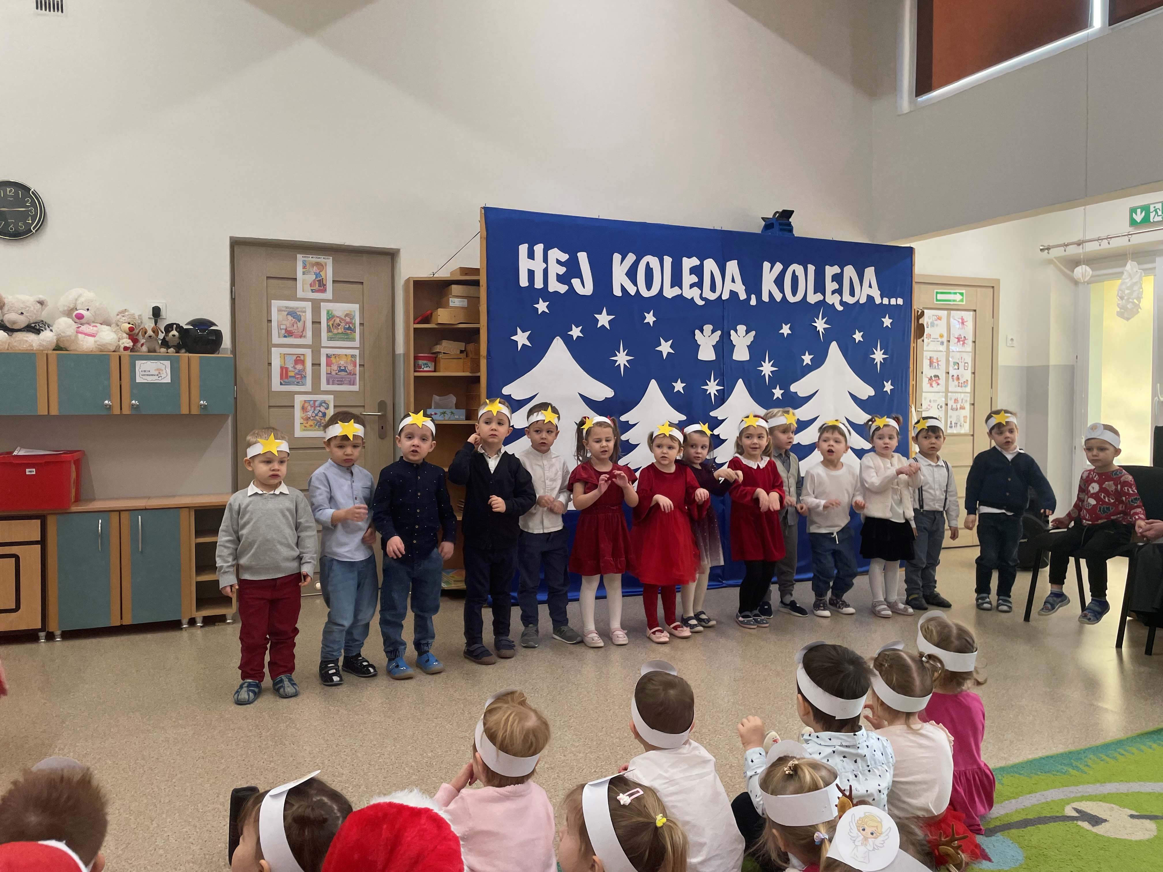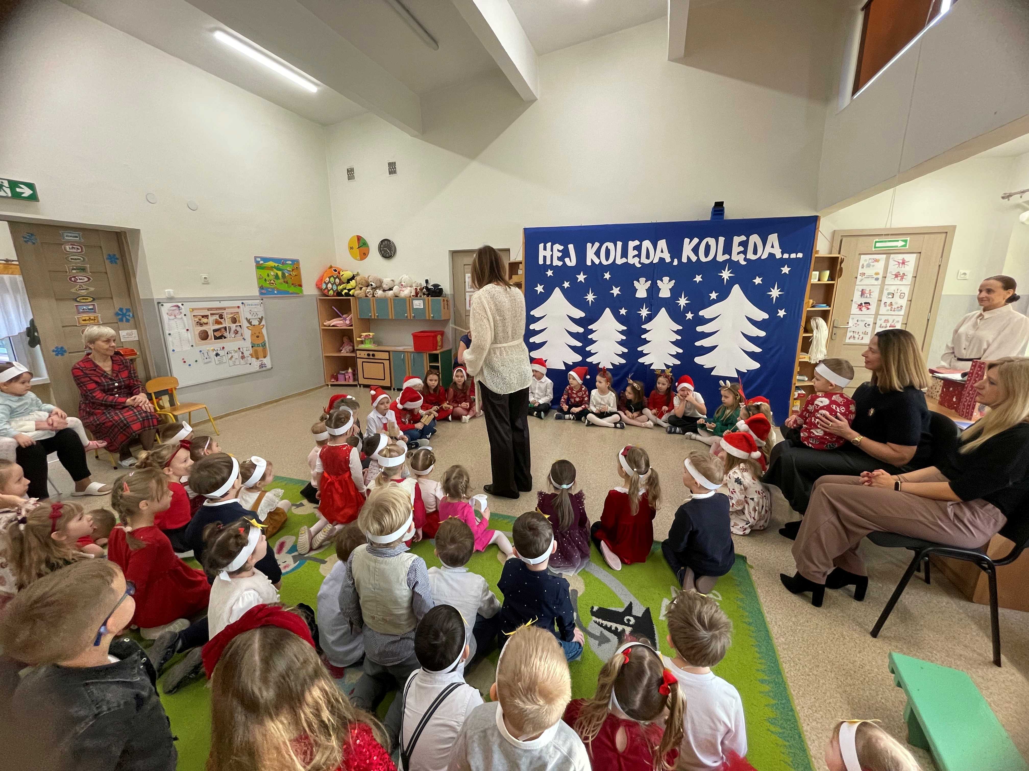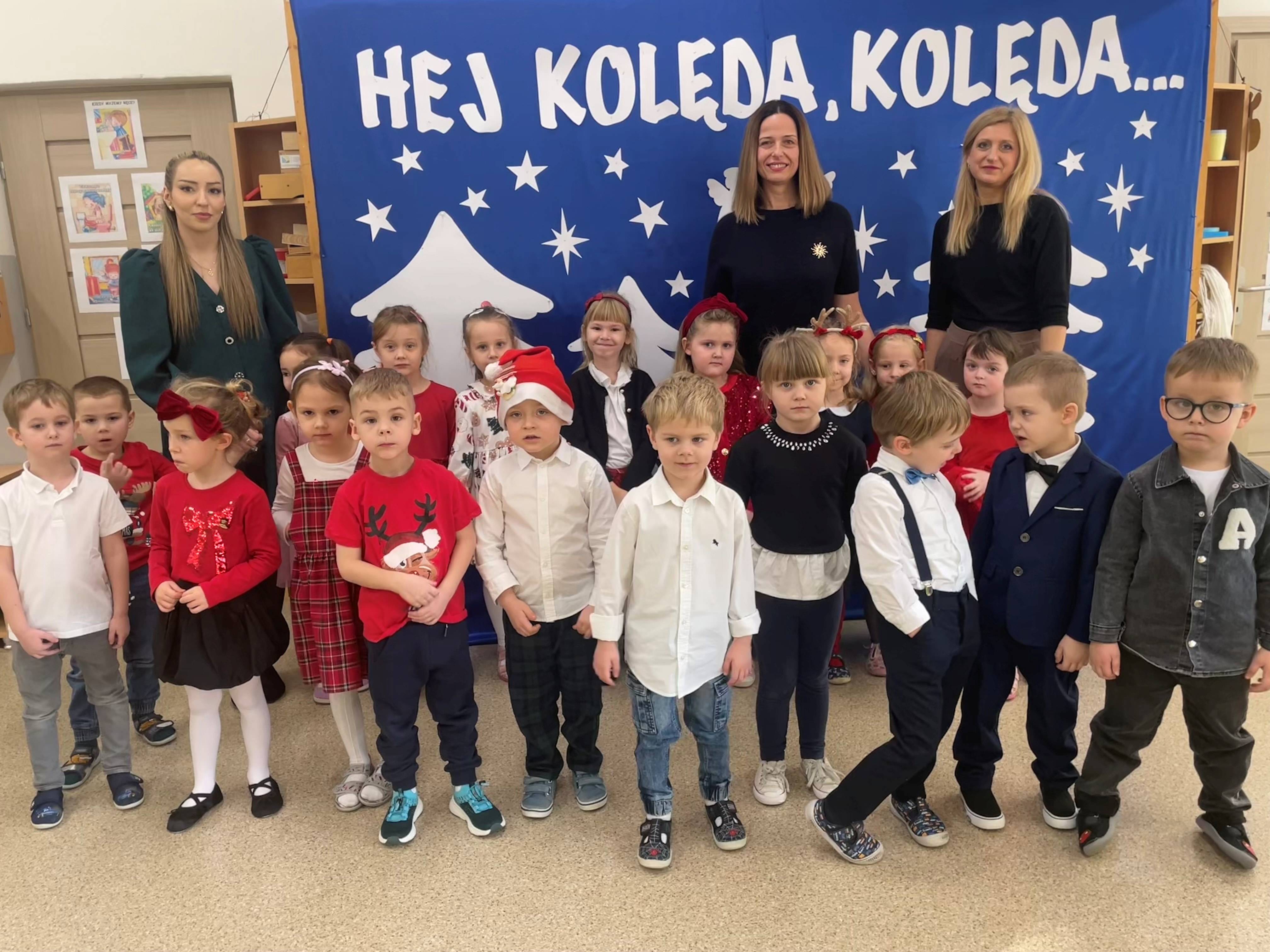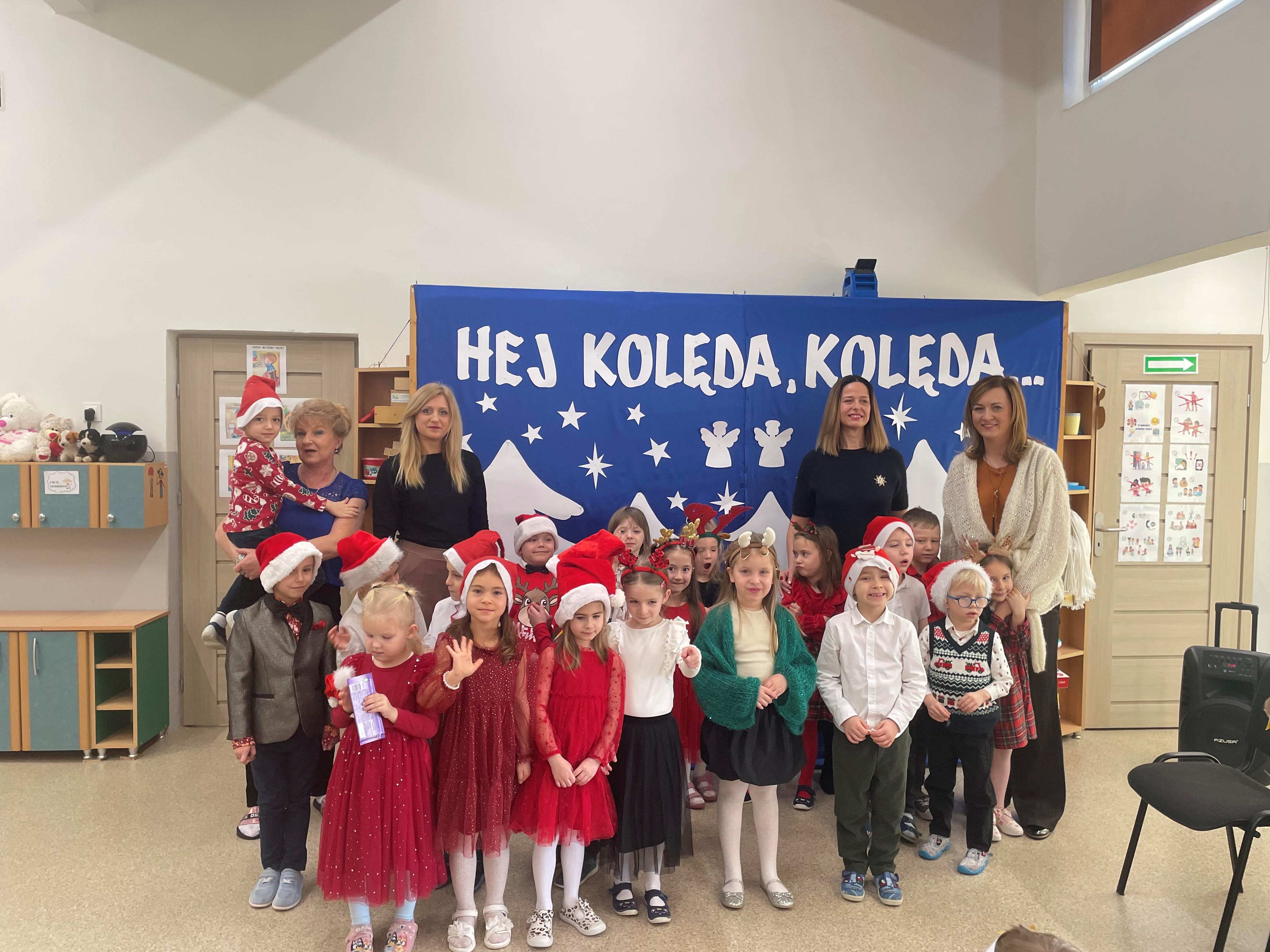 Dzisiejszy dzień w naszym przedszkolu upłynął w wyjątkowej, świątecznej atmosferze. We wszystkich grupach odbyło się wspólne kolędowanie, podczas którego dzieci z radością śpiewały najpiękniejsze kolędy i pastorałki. Był to czas pełen uśmiechów, wzruszeń oraz wspólnego przeżywania magii Świąt Bożego Narodzenia.