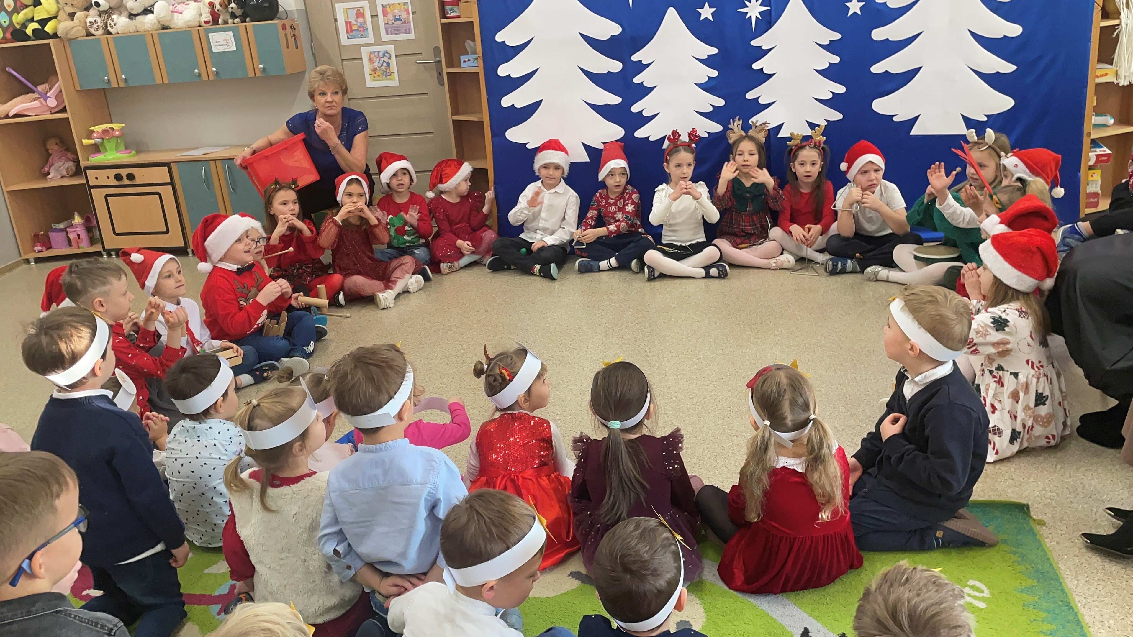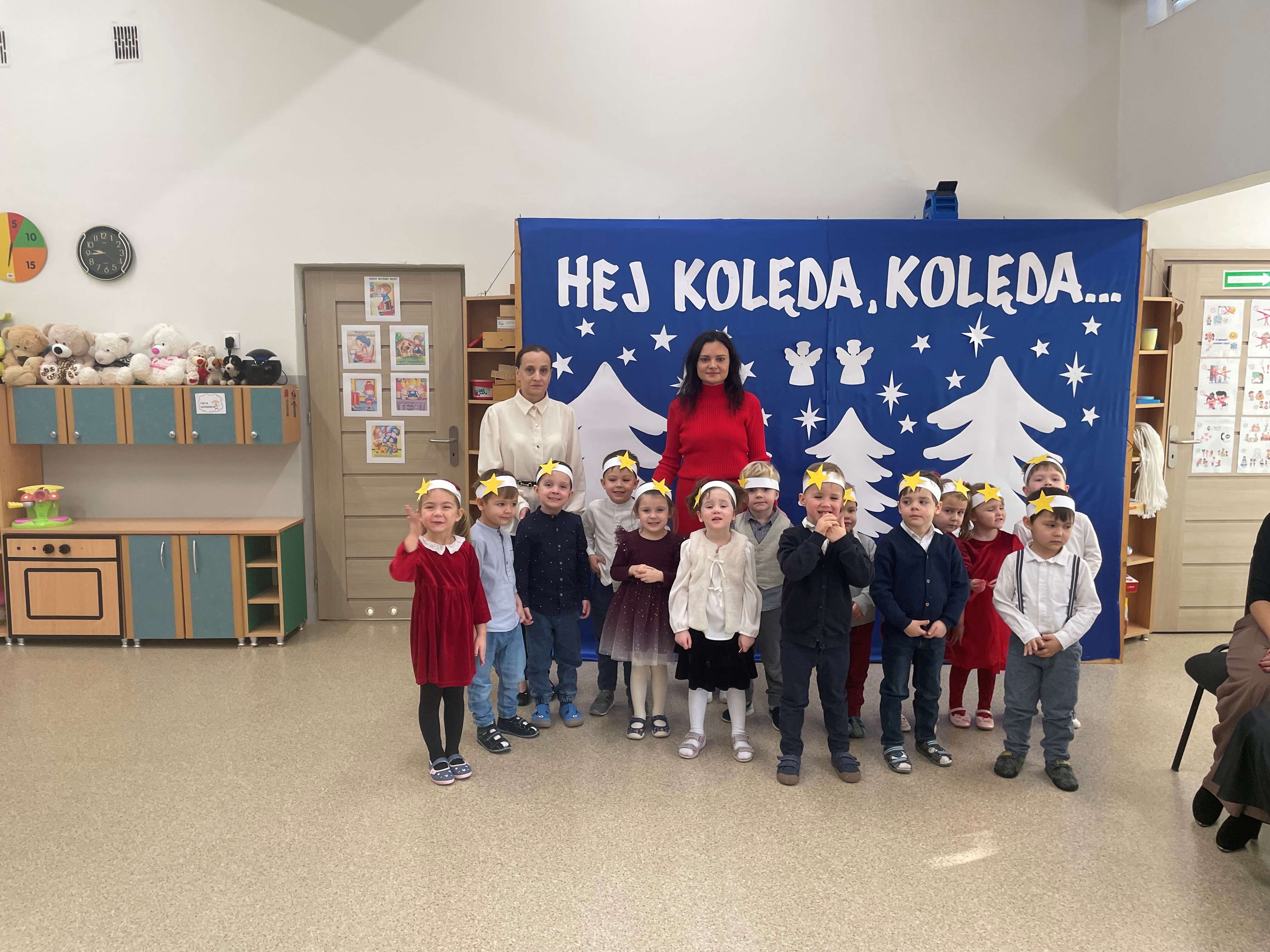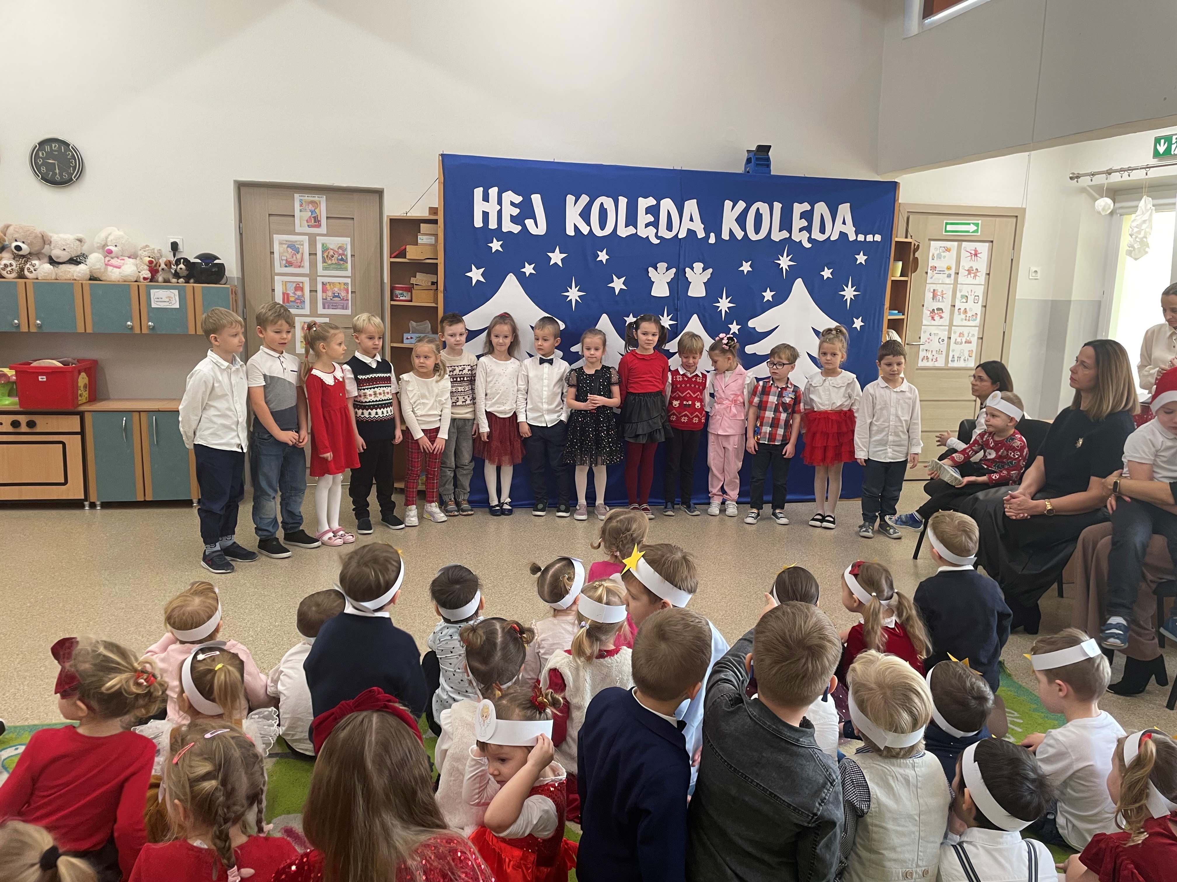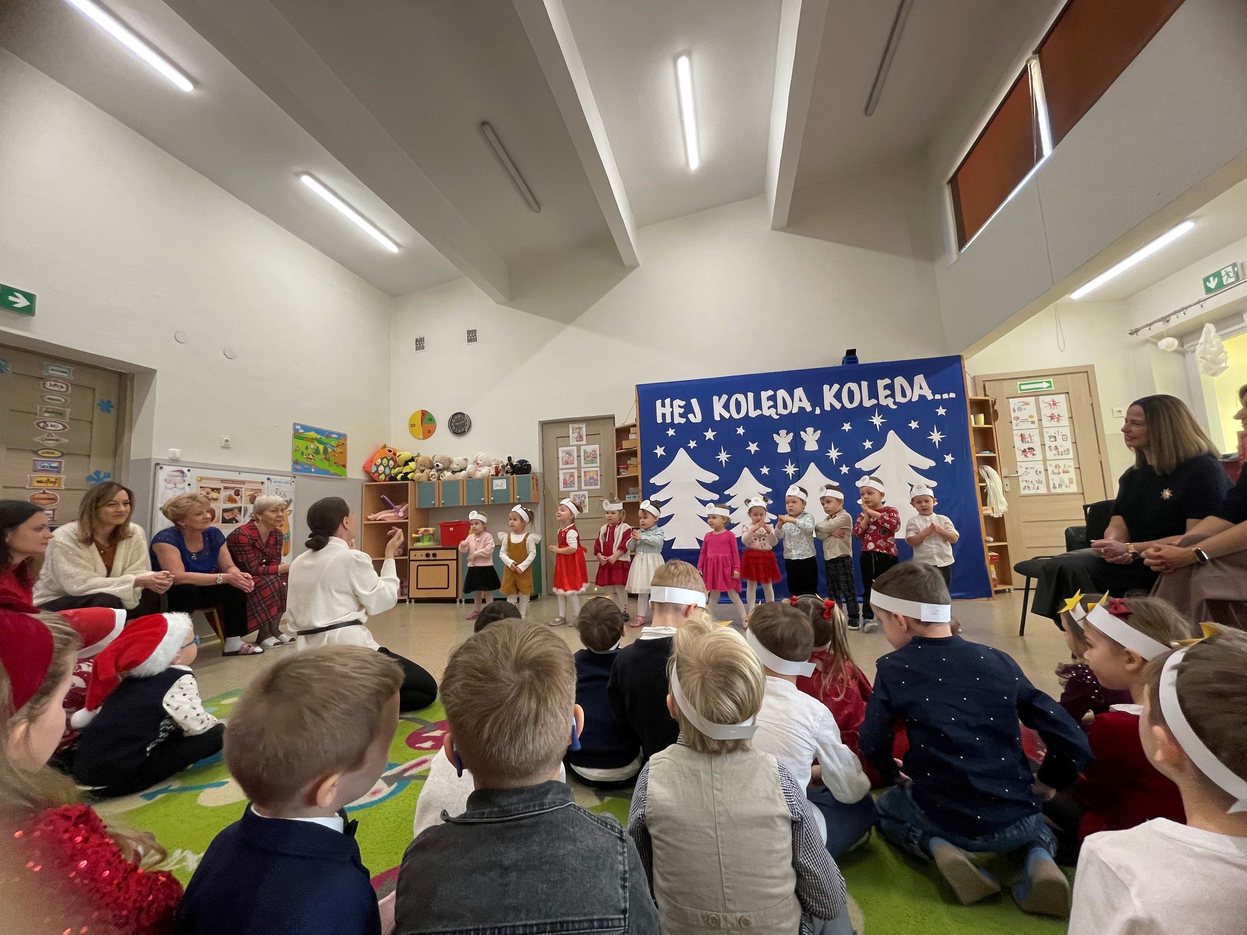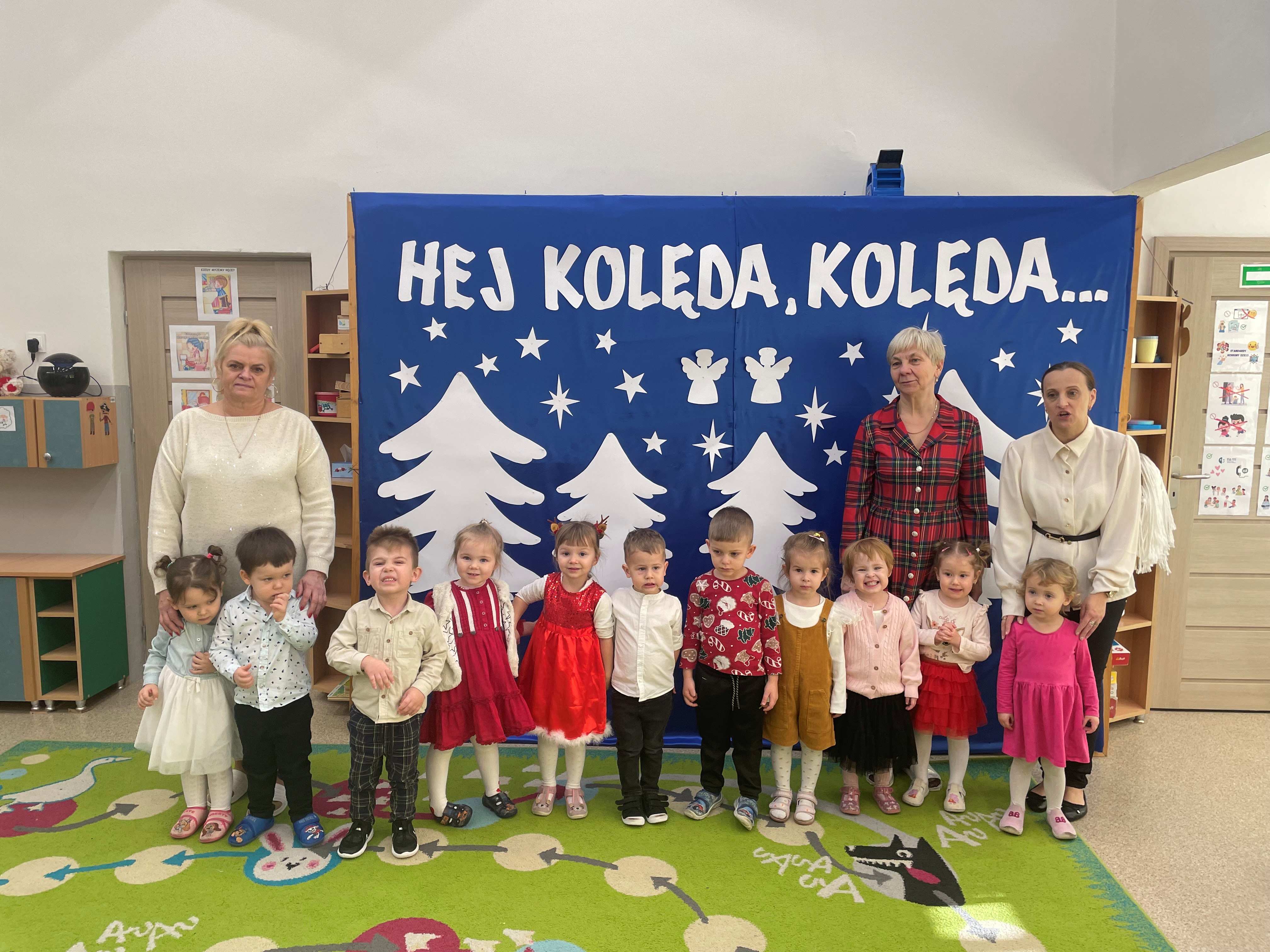 Dzisiejszy dzień w naszym przedszkolu upłynął w wyjątkowej, świątecznej atmosferze. We wszystkich grupach odbyło się wspólne kolędowanie, podczas którego dzieci z radością śpiewały najpiękniejsze kolędy i pastorałki. Był to czas pełen uśmiechów, wzruszeń oraz wspólnego przeżywania magii Świąt Bożego Narodzenia.
