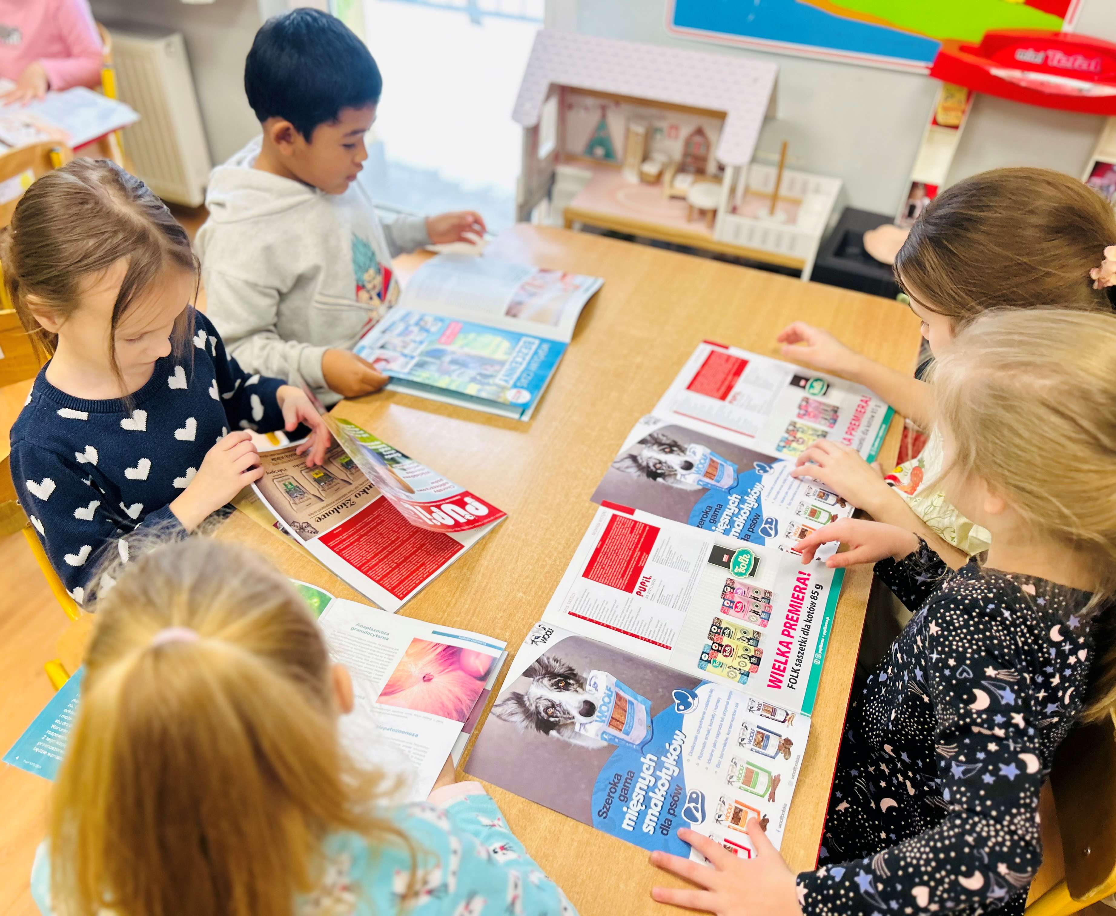 Wyjście do sklepu zoologicznego sprawiło dzieciom dużą radość. Wynalazcy z dużym zainteresowaniem oglądali półki wypełnione różnego rodzaju karmą dla psów, kotów, rybek i gryzoni. Zwracali uwagę na kolorowe opakowania, zabawki, smycze, obroże oraz wygodne legowiska dla zwierząt. Podczas wyjścia przedszkolaki dowiedziały się, jak wiele rzeczy jest potrzebnych do właściwej opieki nad pupilem. Rozmawialiśmy o tym, że zwierzęta potrzebują nie tylko jedzenia, ale także odpowiednich warunków do życia, ruchu i troski ze strony opiekuna. Wyjście było ciekawą lekcją odpowiedzialności i okazją do poszerzenia wiedzy na temat potrzeb zwierząt.