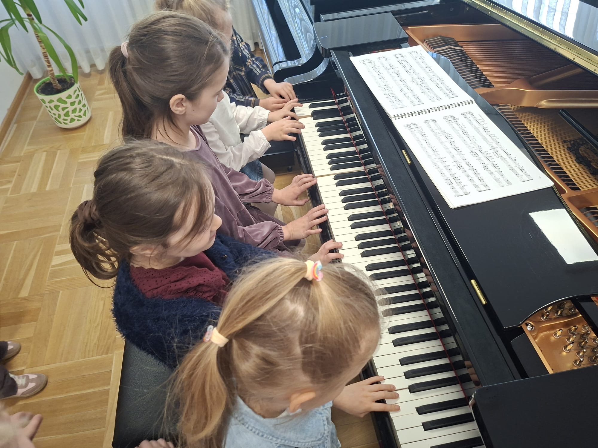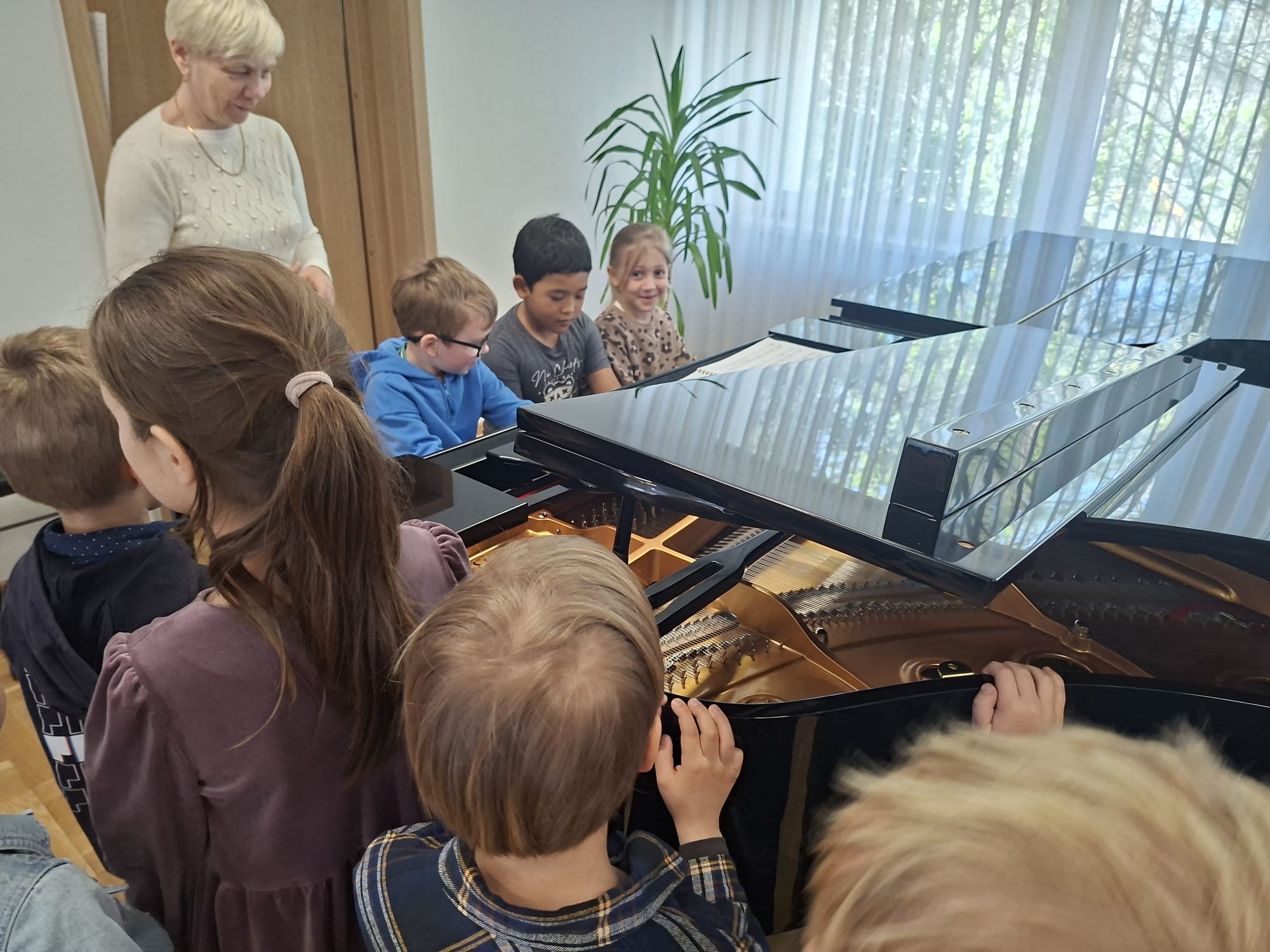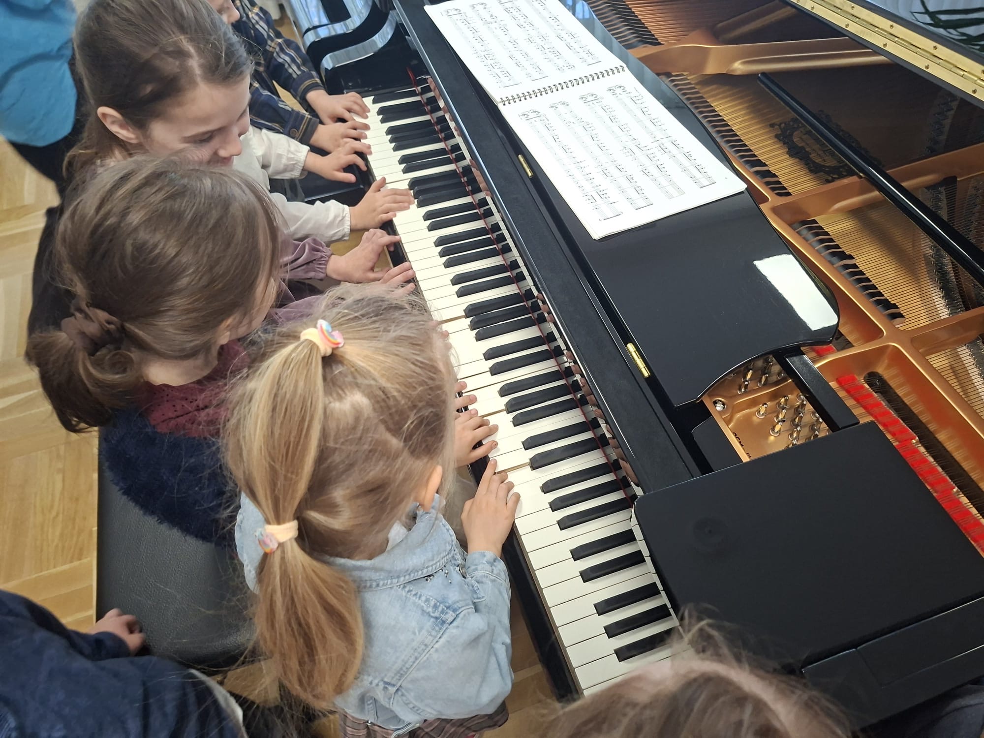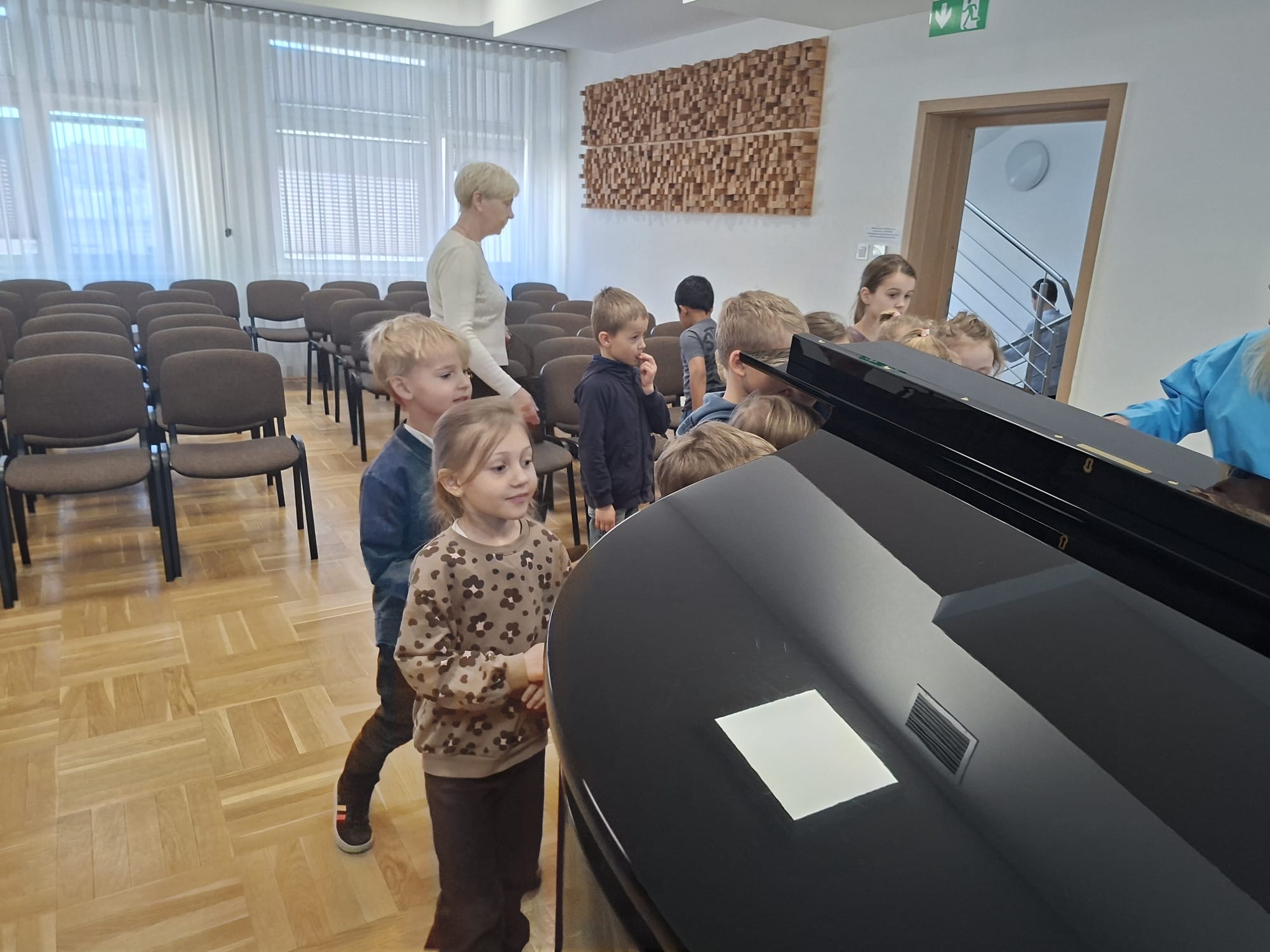 Dzieci z grupy Wynalazcy odwiedziły dziś Państwową Szkołę Muzyczną I i II stopnia im. Tadeusza Wrońskiego w Tomaszowie Mazowieckim. Podczas wizyty odkrywały tajemnice instrumentów muzycznych oraz miały okazję zajrzeć do sal, w których na co dzień uczą się młodzi muzycy.