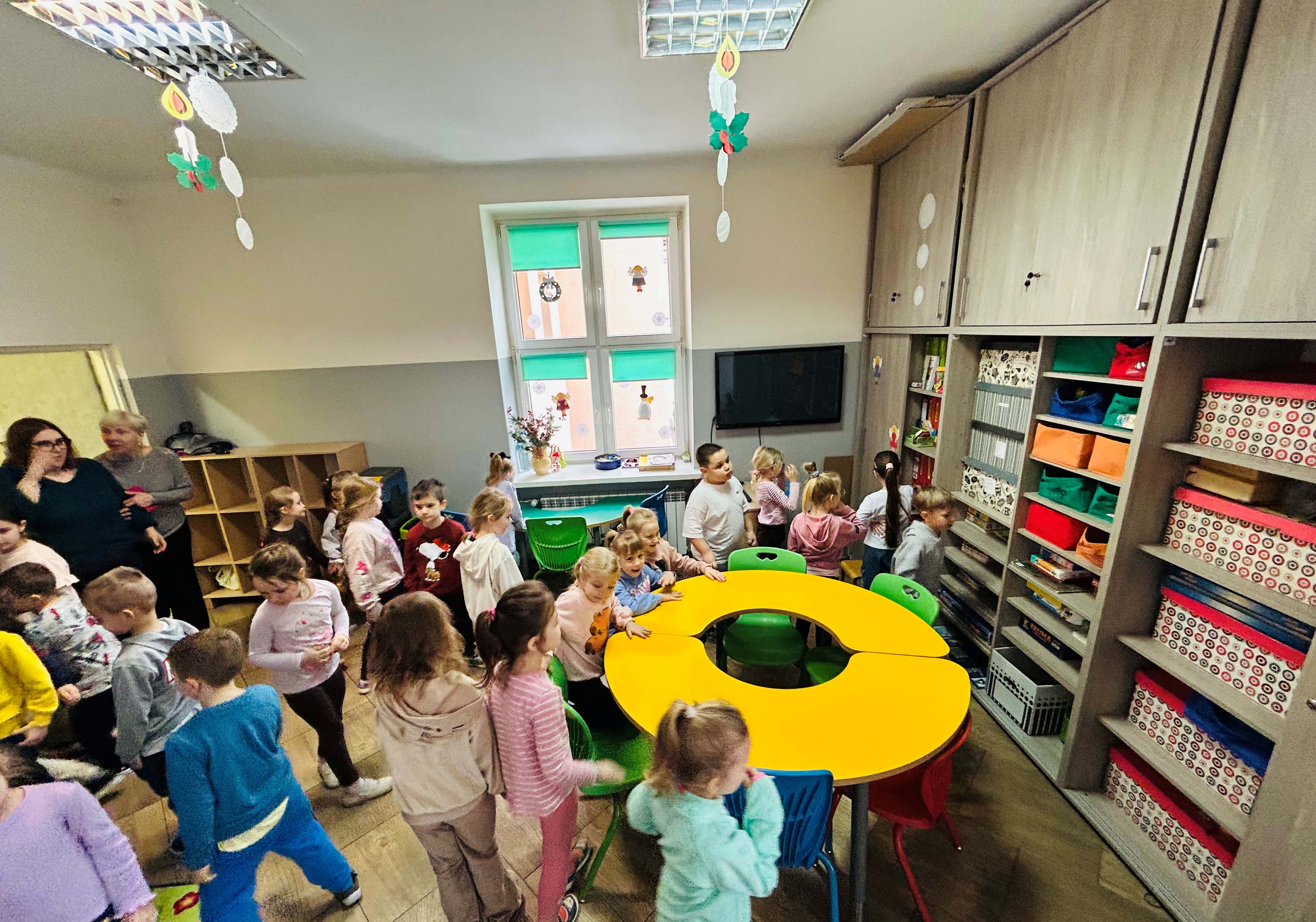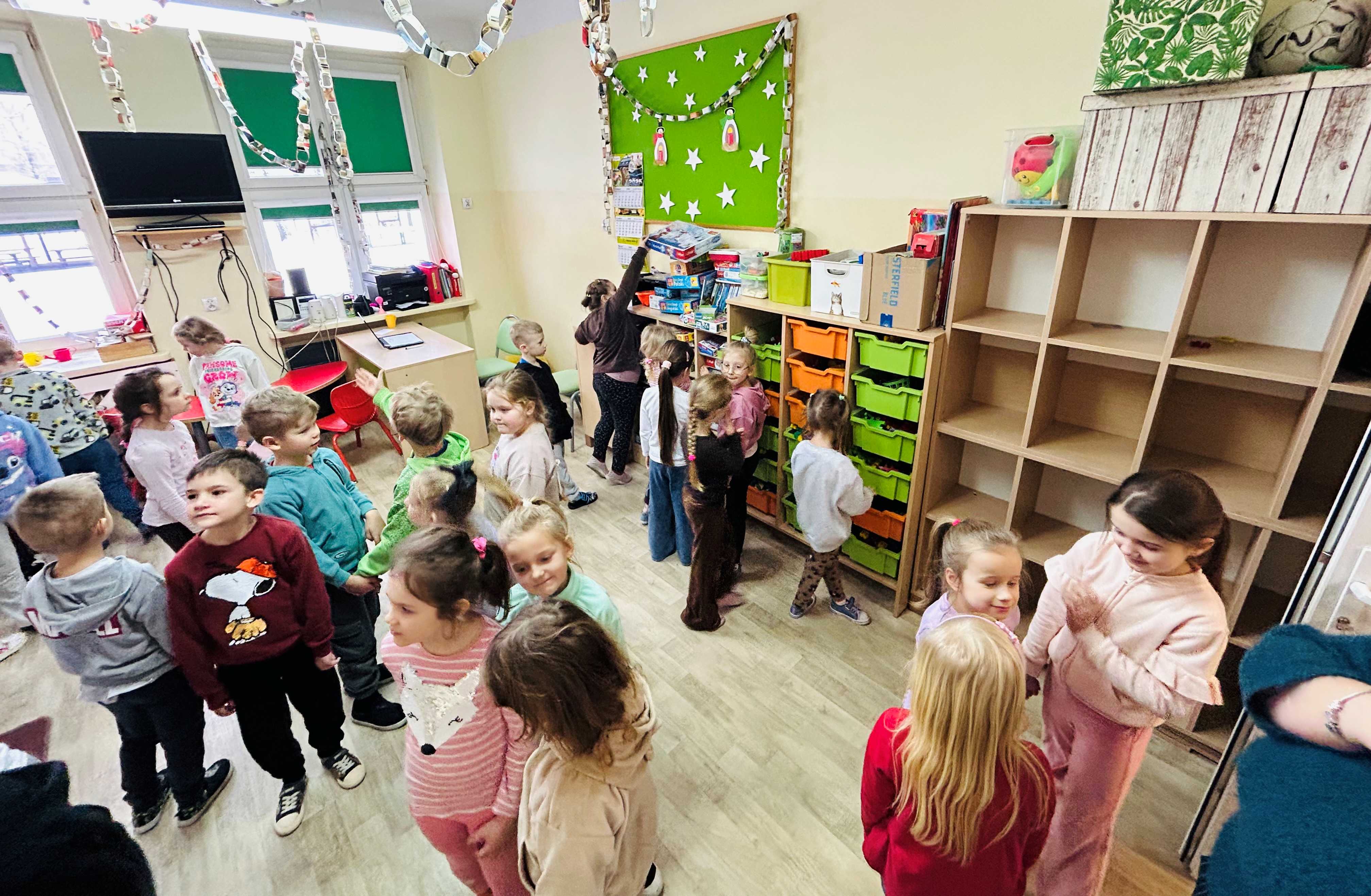 W dniu 28.01.2026 r. przedszkolaki z grupy „Wynalazców” wzięli udział w wizycie w Szkole Podstawowej Nr 12. Podczas wizyty dzieci wraz z kolegami i koleżankami z Tęczowej Akademii zwiedziły wybrane pomieszczenia szkoły, m.in. laboratoria przyszłości, salę korekcyjną, stołówkę szkolną, świetlicę, gabinet pielęgniarki oraz salę gimnastyczną. Spotkanie przebiegło w miłej i przyjaznej atmosferze, a dzieci wykazywały duże zainteresowanie i aktywność. Odwiedziny przyczyniły się do budowania pozytywnego nastawienia przedszkolaków do szkoły oraz ułatwiły im adaptację do nowego etapu edukacyjnego.