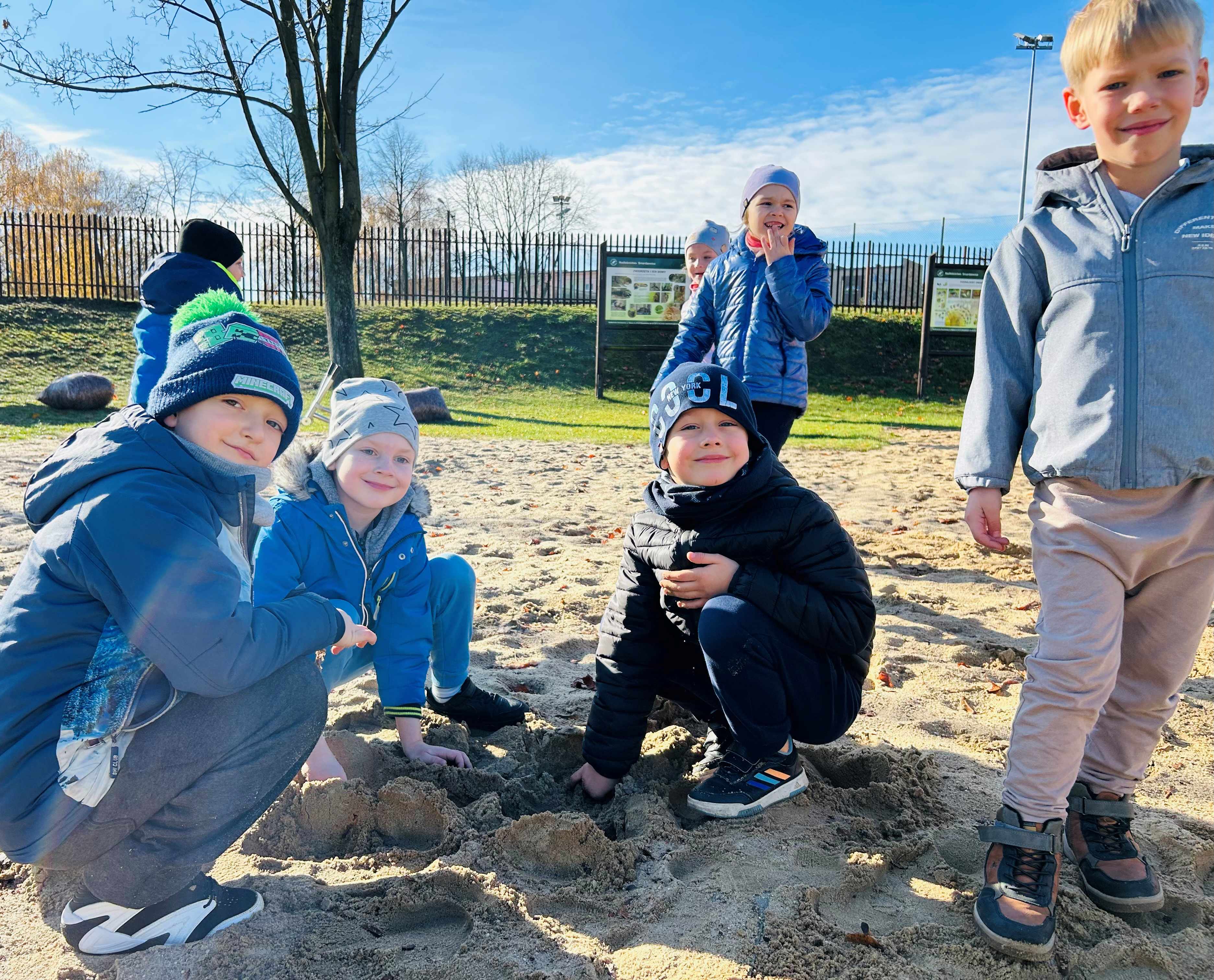 Dziś korzystając z pięknej jesiennej pogody Wynalazcy bawili się na przedszkolnym placu zabaw. Dzieci wykorzystując różne elementy zabawowe rozwijały swoją sprawność fizyczną  i umiejętności społeczne.