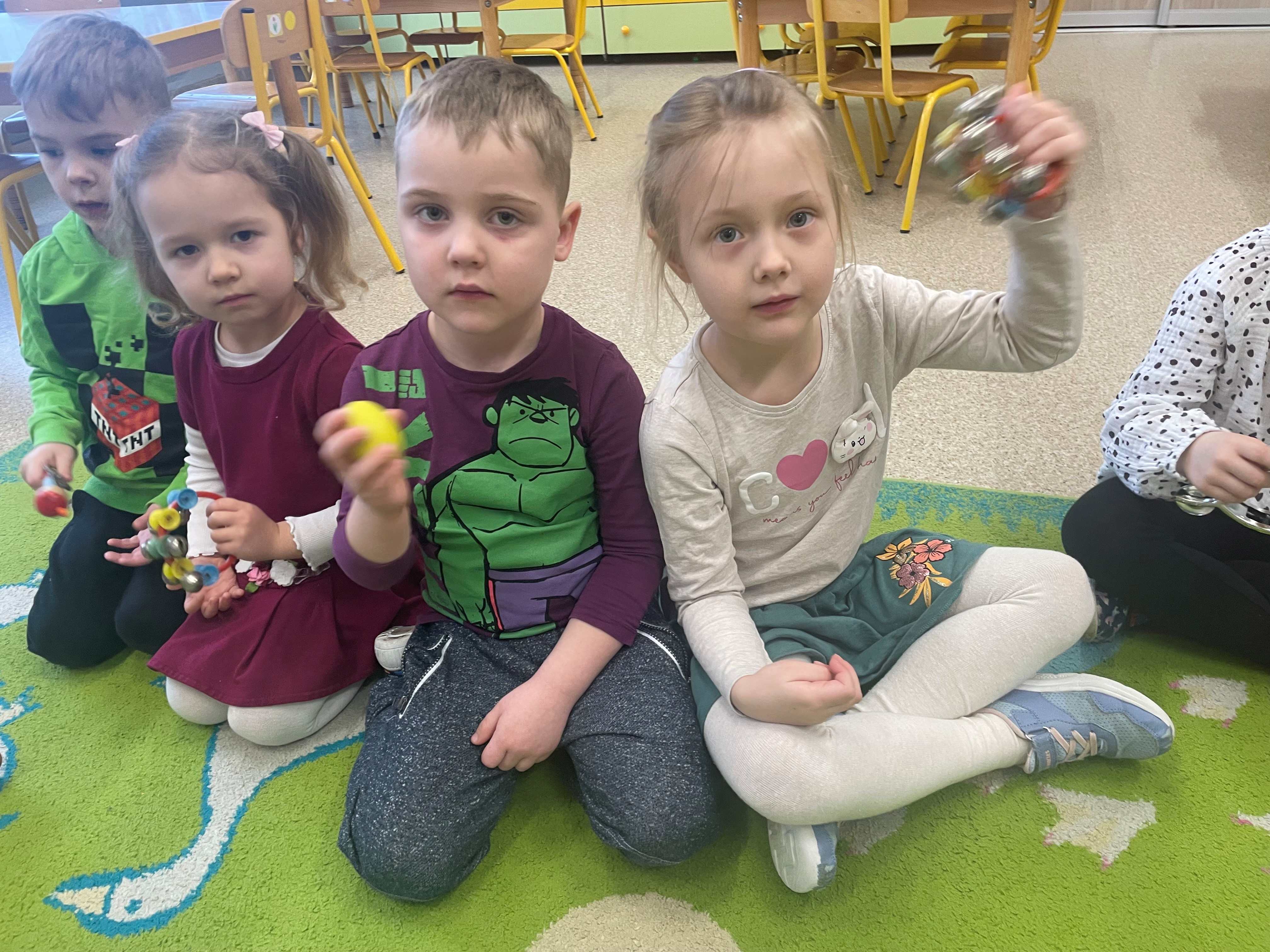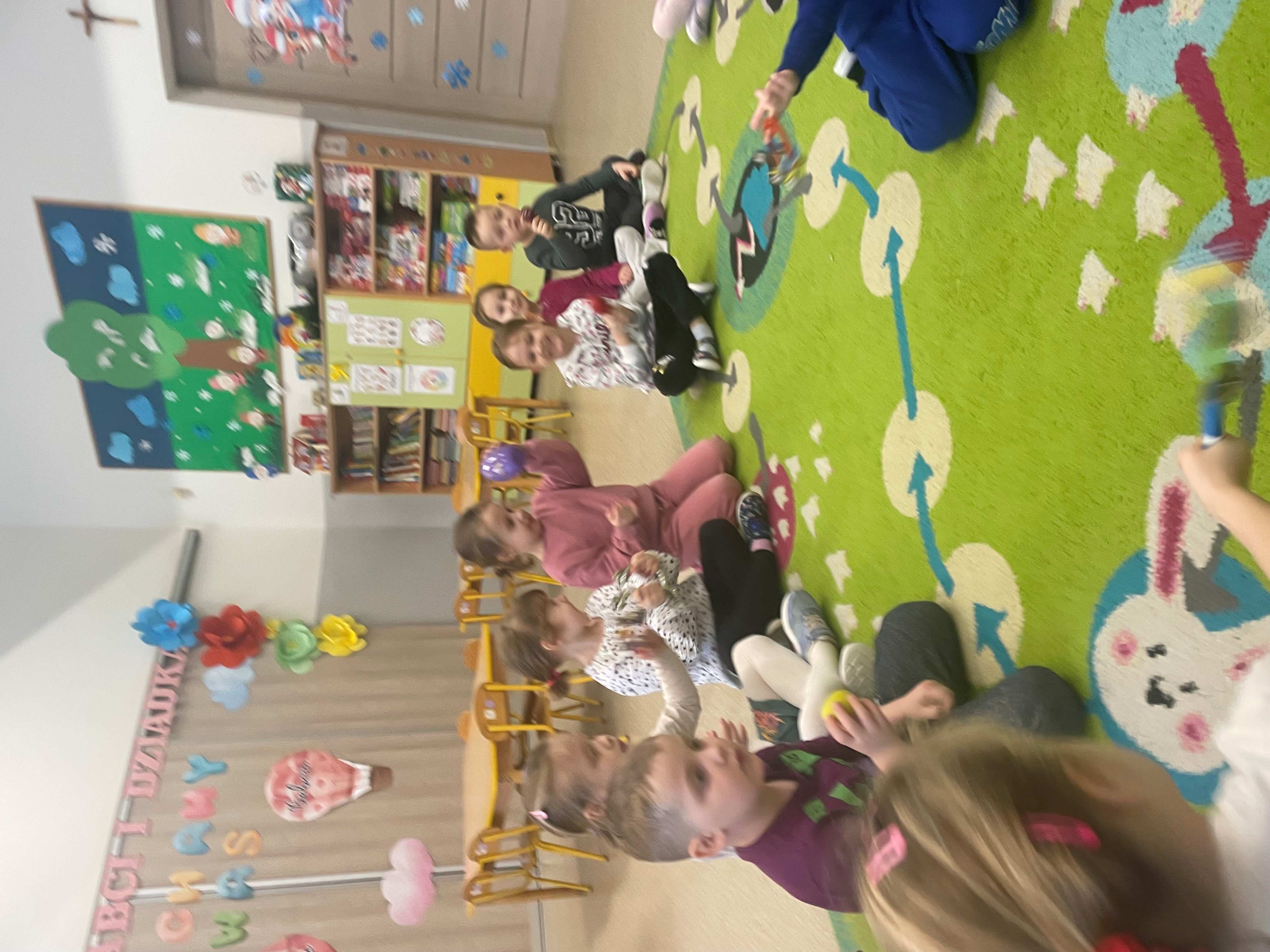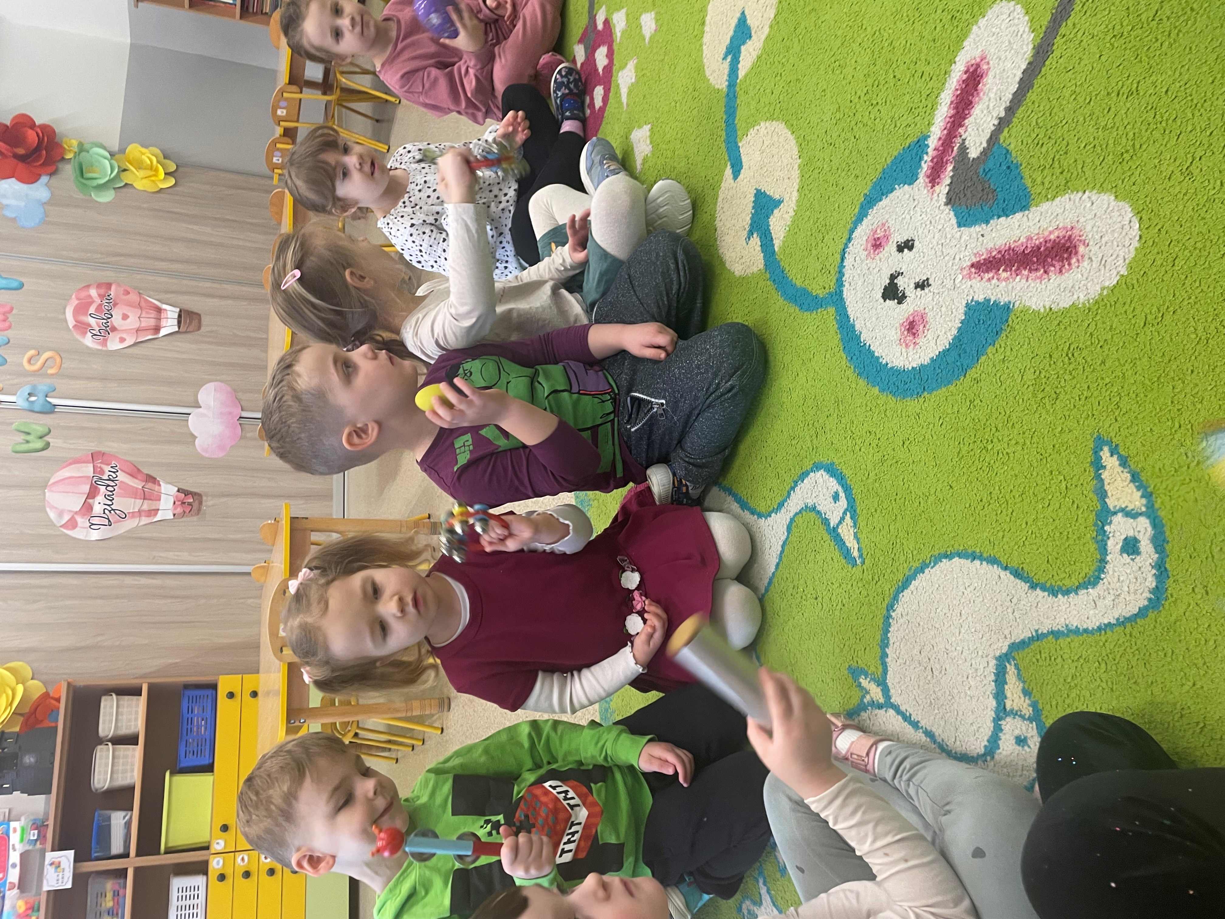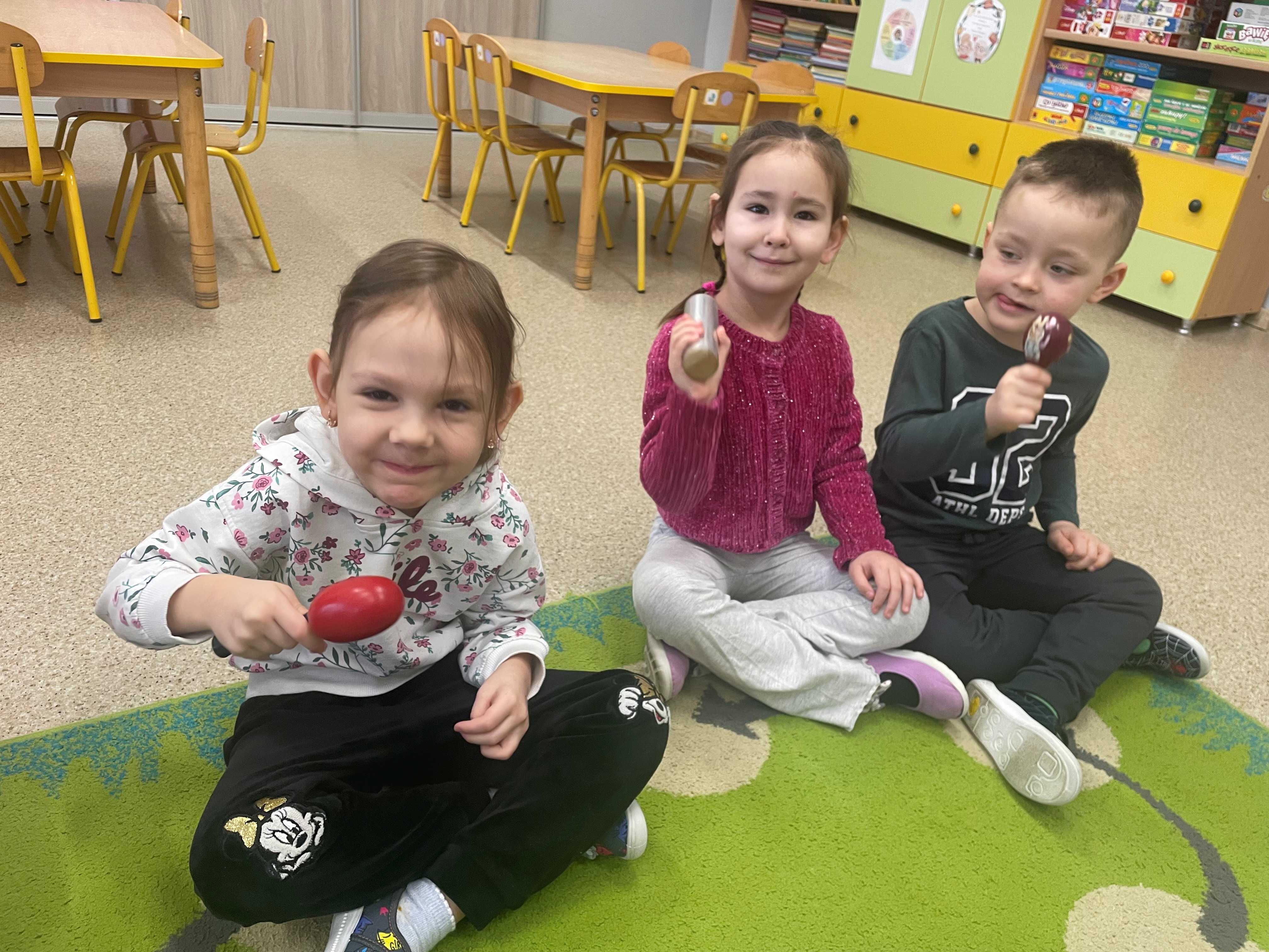 Dzisiaj dzieci uczestniczyły w zajęciach muzycznych, podczas których korzystały z instrumentów znajdujących się na wyposażeniu przedszkola. Przedszkolaki rozpoznawały różne instrumenty, poznawały ich brzmienie oraz uczyły się grać ciszej i głośniej w zależności od płynącej muzyki. Podczas zajęć realizowany był program „Muzyczna podróż przedszkolaka”. Zajęcia sprawiły dzieciom wiele radości i były doskonałą okazją do rozwijania wrażliwości muzycznej oraz poczucia rytmu