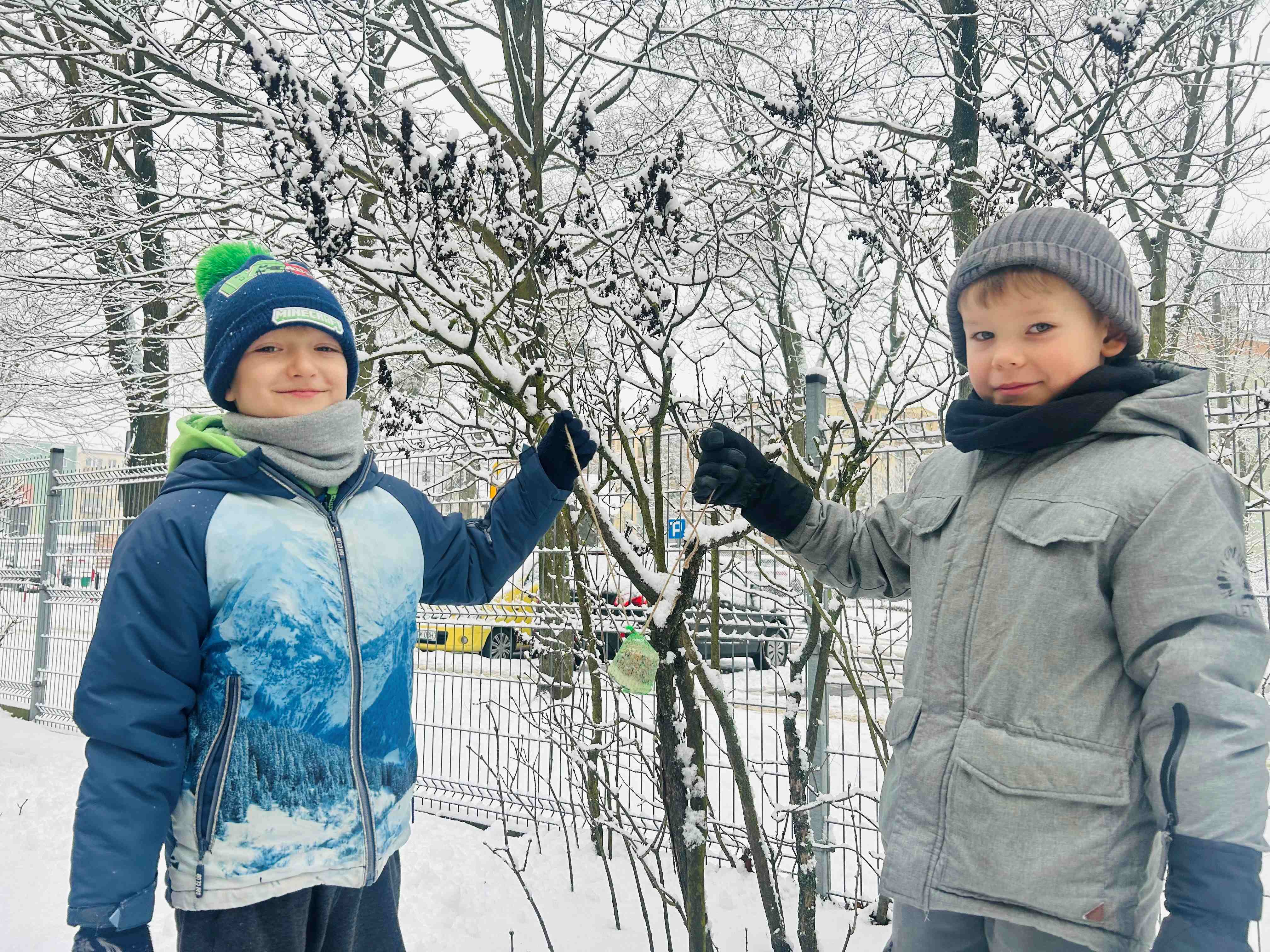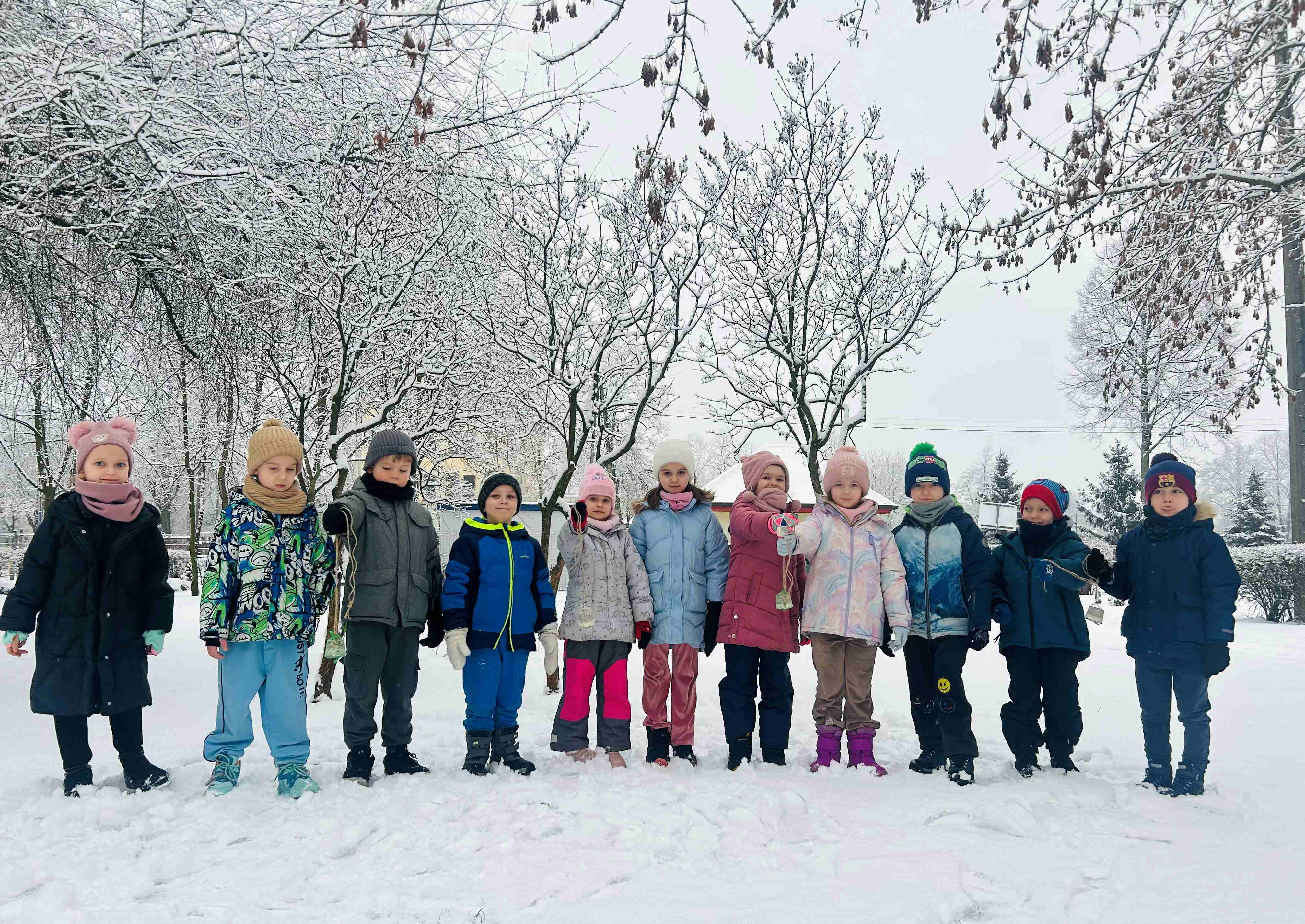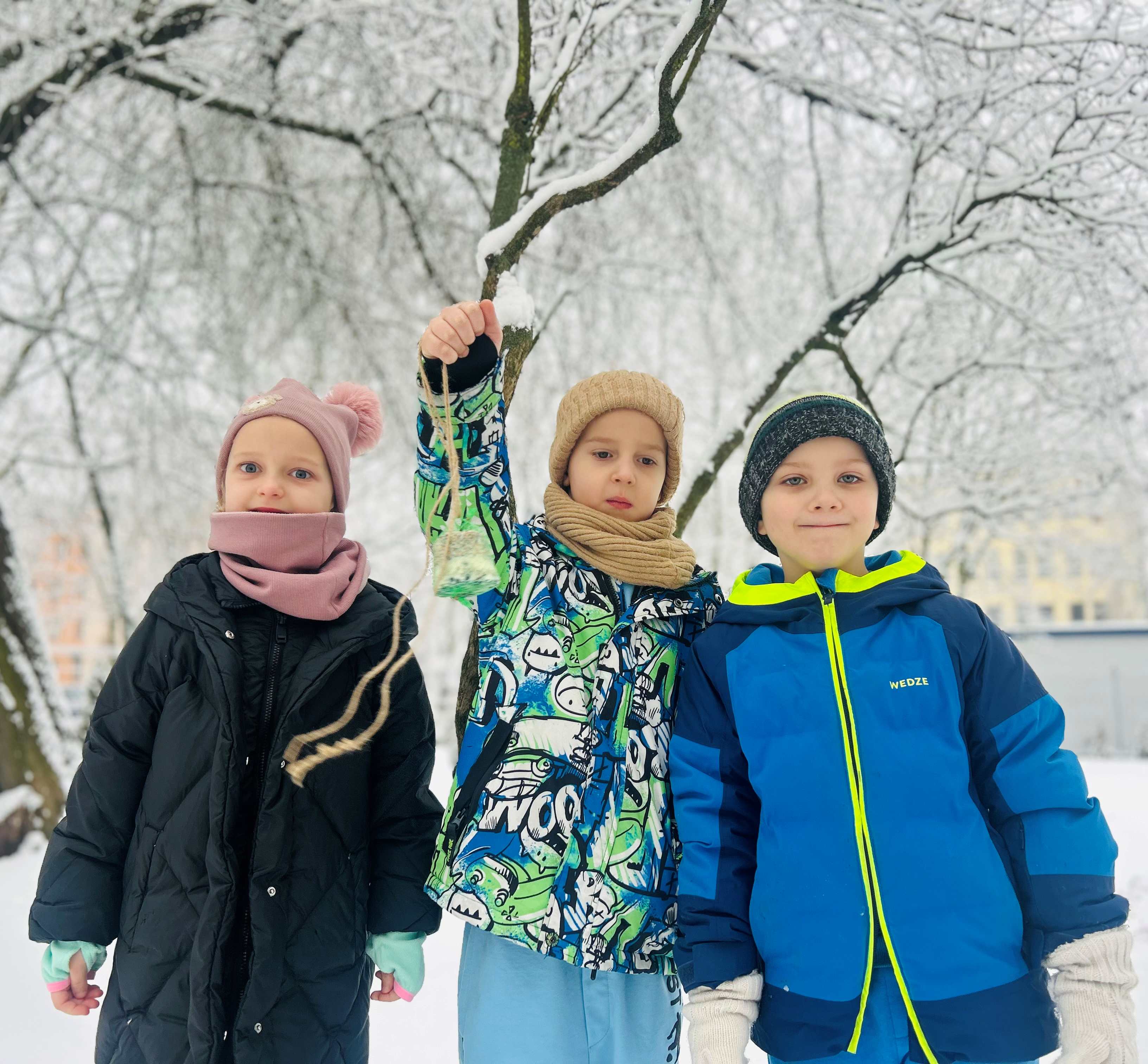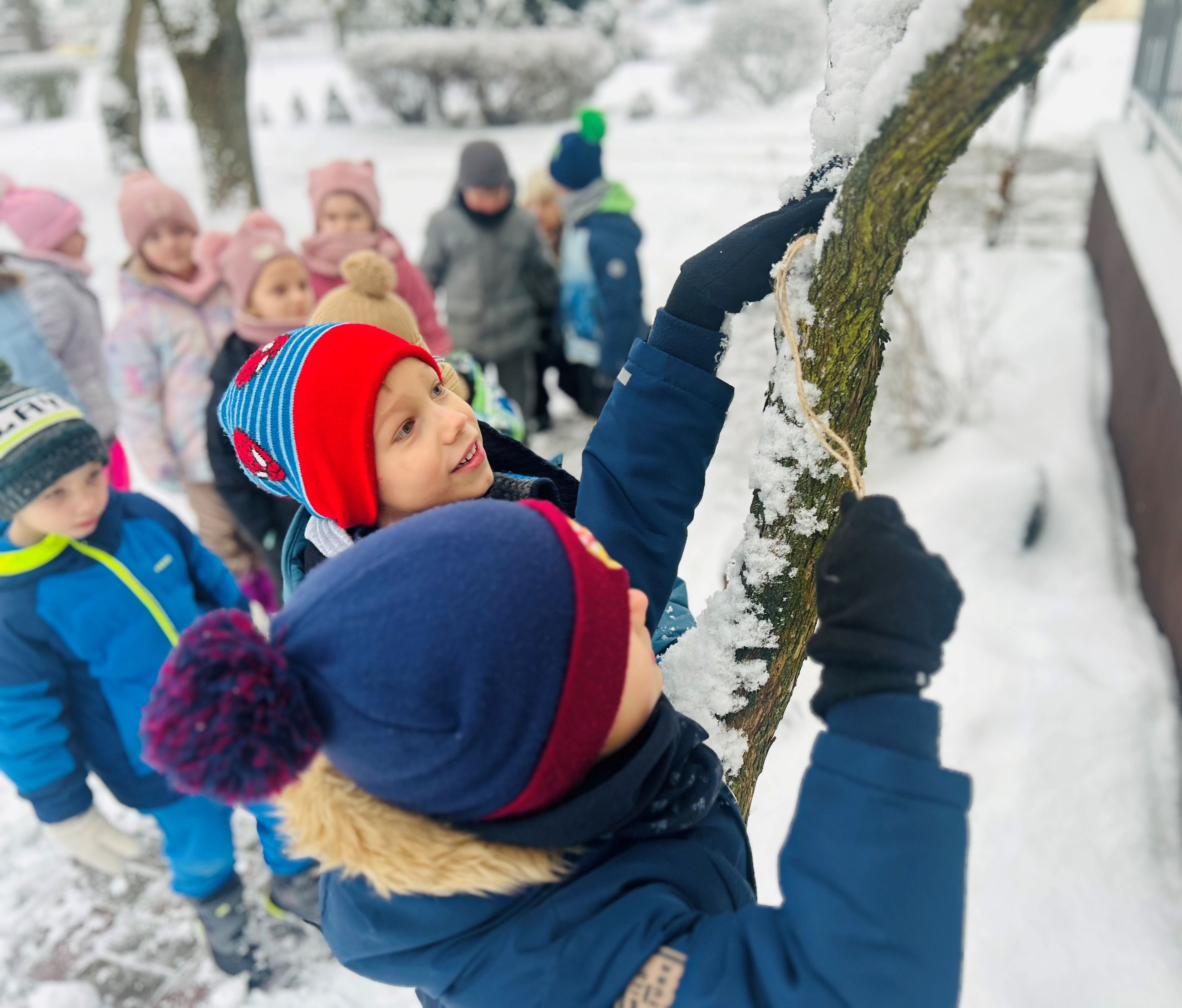 Wynalazcy w ramach działań proekologicznych wzięli udział w akcji dokarmiania ptaków. Podczas zajęć dzieci dowiedziały się, dlaczego zimą ptakom trudniej jest znaleźć pożywienie oraz jaką karmę można im bezpiecznie podawać. Następnie wspólnie zawiesiliśmy pokarm dla ptaków w ogrodzie przedszkolnym. To była doskonała okazja do rozwijania wrażliwości na potrzeby zwierząt, kształtowania postaw odpowiedzialności oraz nauki poprzez
