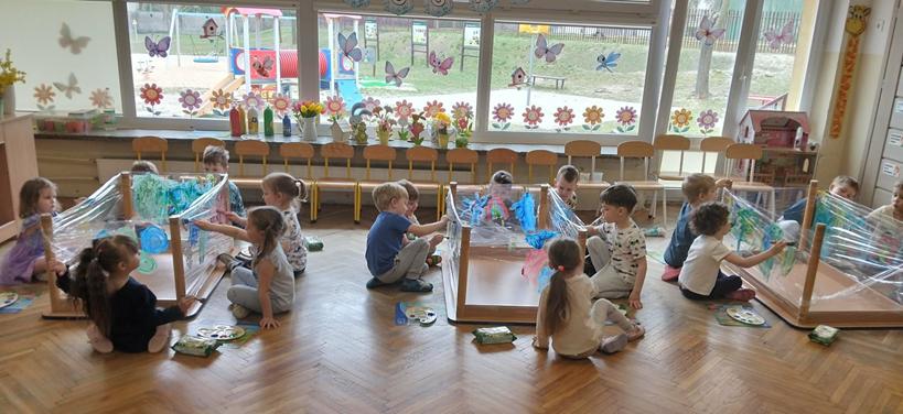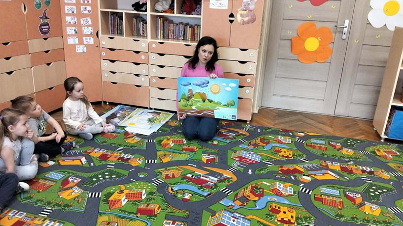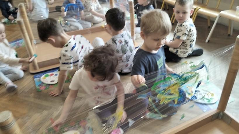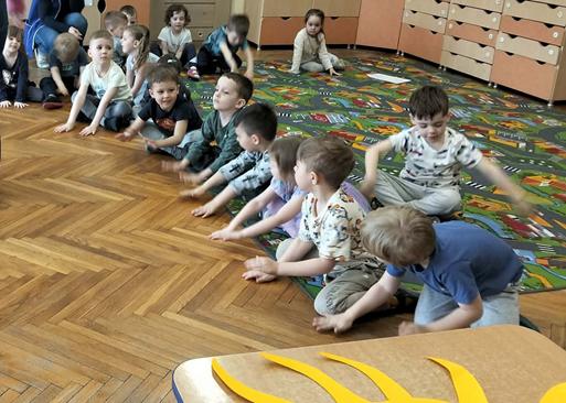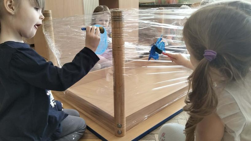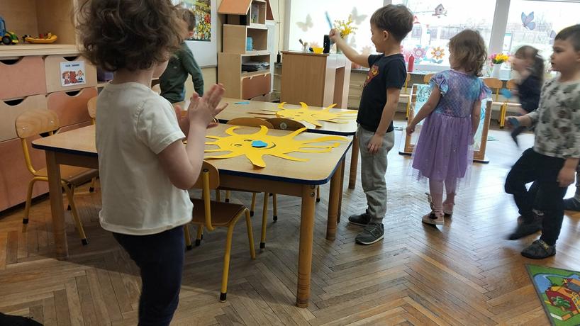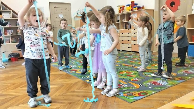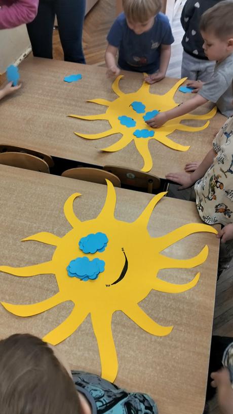 14 marca dzieci z grupy Odkrywcy brały udział w zajęciach „Zjawiska przyrody – zabawa z pogodą”. Podczas zajęć dzieci poznawały różne zjawiska pogodowe – słońce, deszcz i wiatr. Rozmawiały o tym, jaka jest dziś pogoda i wspólnie malowały ją na folii stretch. Nie zabrakło także zabaw ruchowych, w których dzieci naśladowały krople deszczu, promienie słońca i podmuchy wiatru. Była to świetna okazja do nauki poprzez ruch, aktywność plastyczna i wspólną zabawę.
